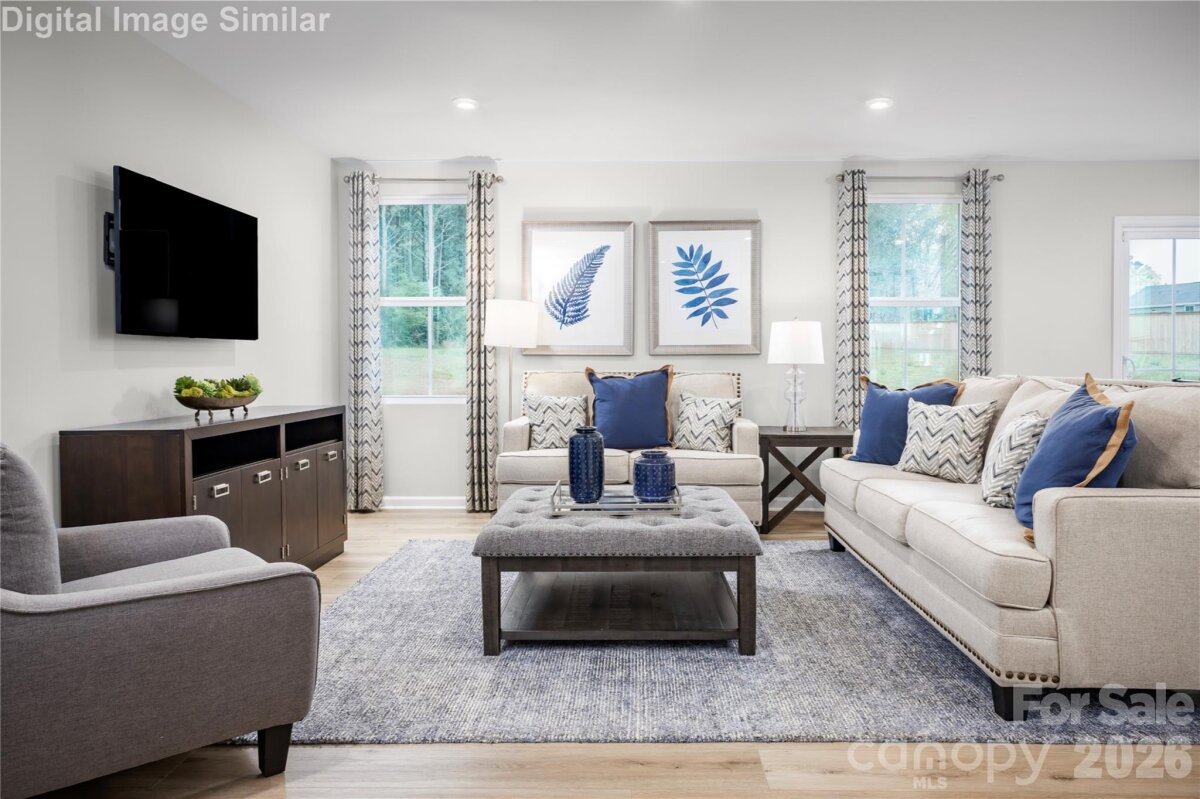 This thoughtfully designed ranch-style home offers everything you need on a single level. Step inside through the welcoming foyer to find two cozy bedrooms tucked away for privacy. A convenient laundry center, complete with an included washer and dryer, sits just down the hall. The heart of the home is an open-concept layout that seamlessly connects the great room, kitchen, and dining area—perfect for entertaining or everyday living. The kitchen features a stylish eat-at island for casual meals, stainless steel appliances and granite countertops. Just off the great room, the spacious owner's suite boasts an ensuite bath with framed shower door and a walk-in closet for ample storage. This home is To-Be-Built Primary residence or investment opportunity.