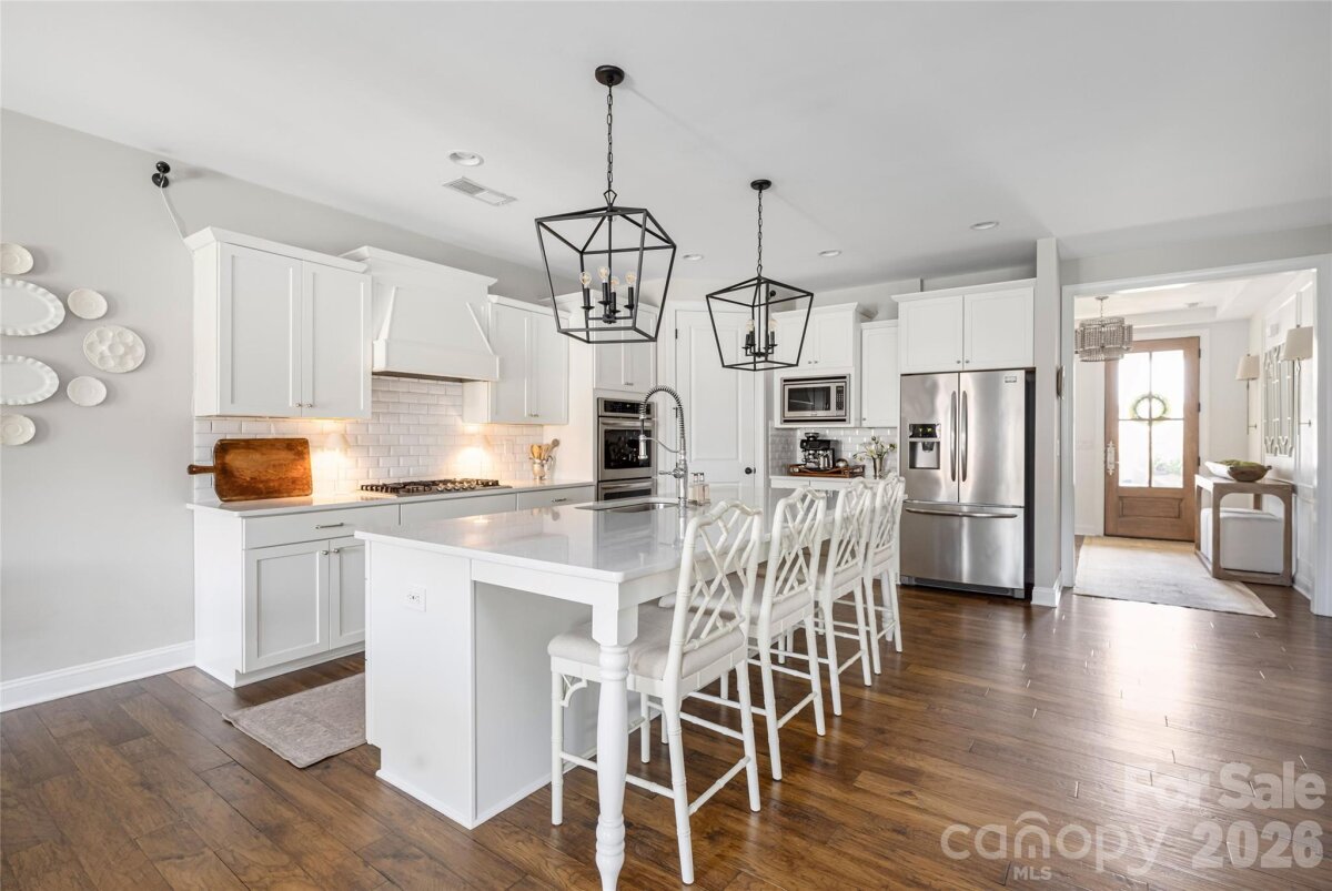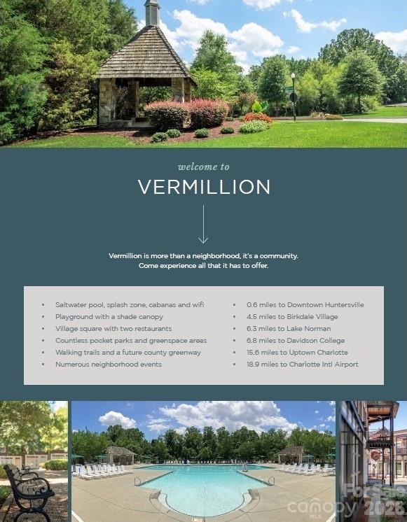 Welcome to 11012 Vanguard Parkway — a home with exceptional design that perfectly blends comfort, style, and functionality. From the moment you step inside, elevated upgrades and design details are found throughout, adding a touch of sophistication. You'll be captivated by the bright and airy atmosphere. The thoughtfully crafted open floor plan ensures impeccable flow from room to room, making it ideal for both entertaining guests and everyday living. The gourmet kitchen is a chef’s delight, boasting sleek countertops, modern cabinetry, stainless steel appliances, and a large center island that seamlessly connects to the dining area and family room. Whether you’re hosting lively dinner parties or enjoying quiet family meals, this inviting space provides the perfect backdrop for making lasting memories. The spacious owner’s suite serves as a private retreat, featuring ample space for a king-sized bed, a sitting area and a luxurious en-suite bath with a Roman shower and dual walk-in closets. A home office with French doors and abundant natural light, powder room with an updated counter, drop-zone, and a laundry room with updated tile flooring complete the main level. Upstairs, you’ll find three additional bedrooms that offer flexibility for family and guests, all anchored by a generous-sized loft. The largest of those bedrooms features an en-suite bath! The other two bedrooms are served by a full bath with updated tile flooring. Carpeting was replaced and the staircase runner added in August 2025. Step outside to the covered porch for your morning coffee, an evening beverage of choice, or simply relax in the fresh air, rain or shine. The backyard offers plenty of room for gardening, play, or future outdoor projects thanks to the patio, retaining wall, extensive landscaping and fence that were added! Vermillion is more than a neighborhood, it’s a vibrant community. Experience two sparkling pools, a flourishing community garden, playground, walking trails, greenspaces, a welcoming restaurant and a future county greenway directly connecting you to Downtown Huntersville. Here, every amenity has been curated for comfort, connection, and quality of living.