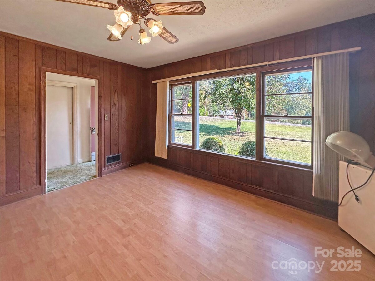 One Level Living Main Floor Offers: Kitchen/Breakfast Room, Living Room, Den w/built-ins, Primary Suite, 2nd Primary suite, 3rd bedroom, 1/2 bath Laundry Room: located in garage Basement: partial with interior access Exterior: deck w/storage underneath Parking: Double Garage and paved driveway Beautiful wood flooring can be seen in closet. It is unknown what rooms could have additional wood flooring.