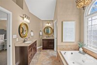 Nestled in the sought-after Thornhill community, this beautifully updated home offers the perfect blend of classic charm and modern livability—just minutes from shopping and dining at Stonecroft and the Bowl at Ballantyne. The heart of the home is the renovated kitchen, featuring crisp white shaker cabinetry, a gas range and oven, separate wall oven and microwave, and a generous peninsula with bar seating—ideal for casual meals and entertaining. A charming bay window with a built-in window seat fills the breakfast area with natural light, while a custom coffee or wine bar with exceptional storage adds both style and function. The kitchen flows seamlessly into a spacious family room, creating an open and inviting gathering space. Throughout the home, you’ll find beautiful architectural details including extensive moldings, picture molding, and hardwood floors that elevate every room. Step outside to the large screened porch overlooking the recently renovated Thornhill pond—an idyllic backdrop for morning coffee or evening relaxation. The fire pit area also enjoys peaceful pond views, perfect for gathering with friends and family. The incredible finished basement expands the living space with a large playroom, full bath, and an oversized sixth bedroom—ideal for a home gym, media room, or guest suite. Upstairs, the home offers five generously sized bedrooms, including a spacious primary retreat with a luxurious bath featuring dual vanities, a soaking tub, walk-in shower, and a large walk-in closet. Renovated hall and powder baths complete the thoughtful updates throughout.This is a rare opportunity to enjoy refined living in one of the area’s most beloved neighborhoods—where comfort, style, and location come together effortlessly. Additional features: Nest thermostats, Rachio smart controller for irrigation, new steel garage door (2025) Paver patio and firepit installed in 2021 overlooking pond.