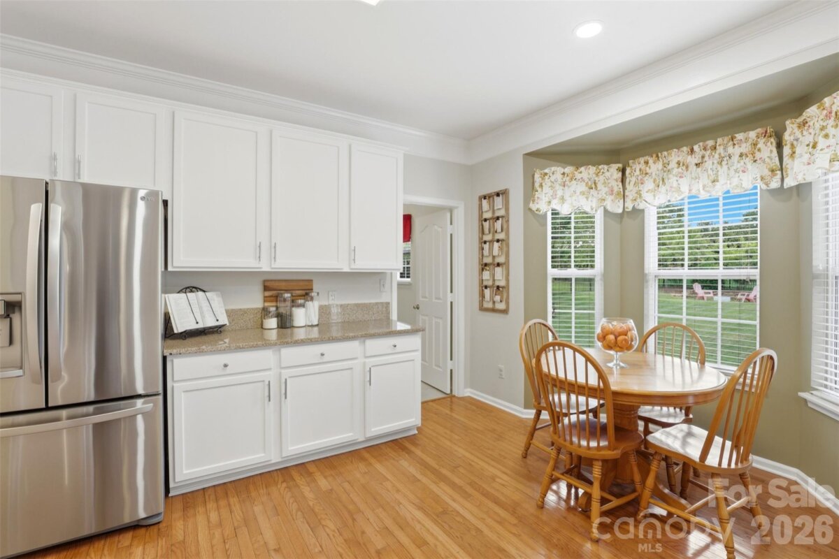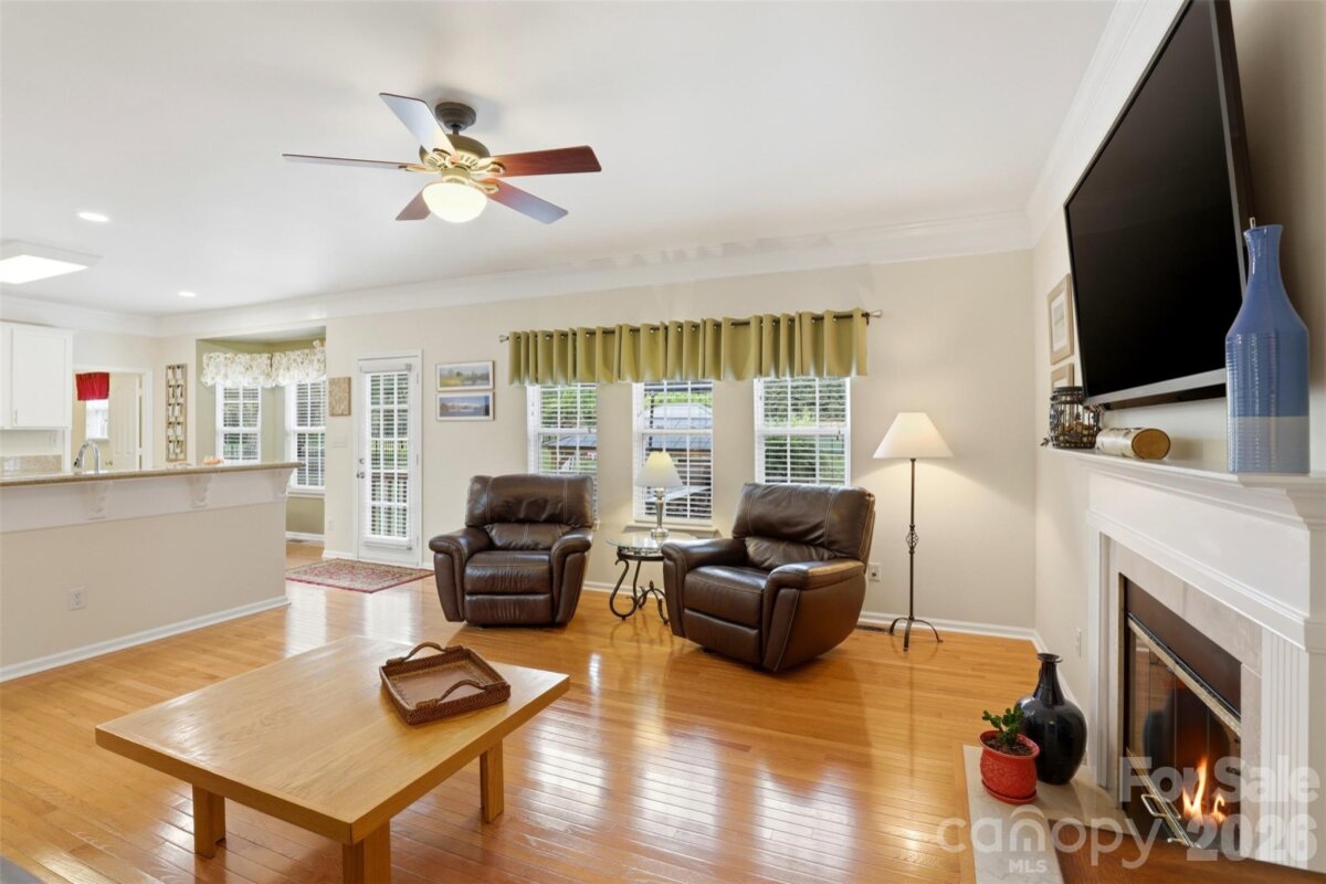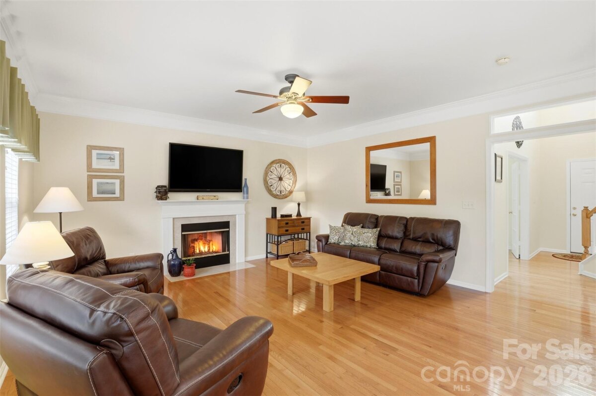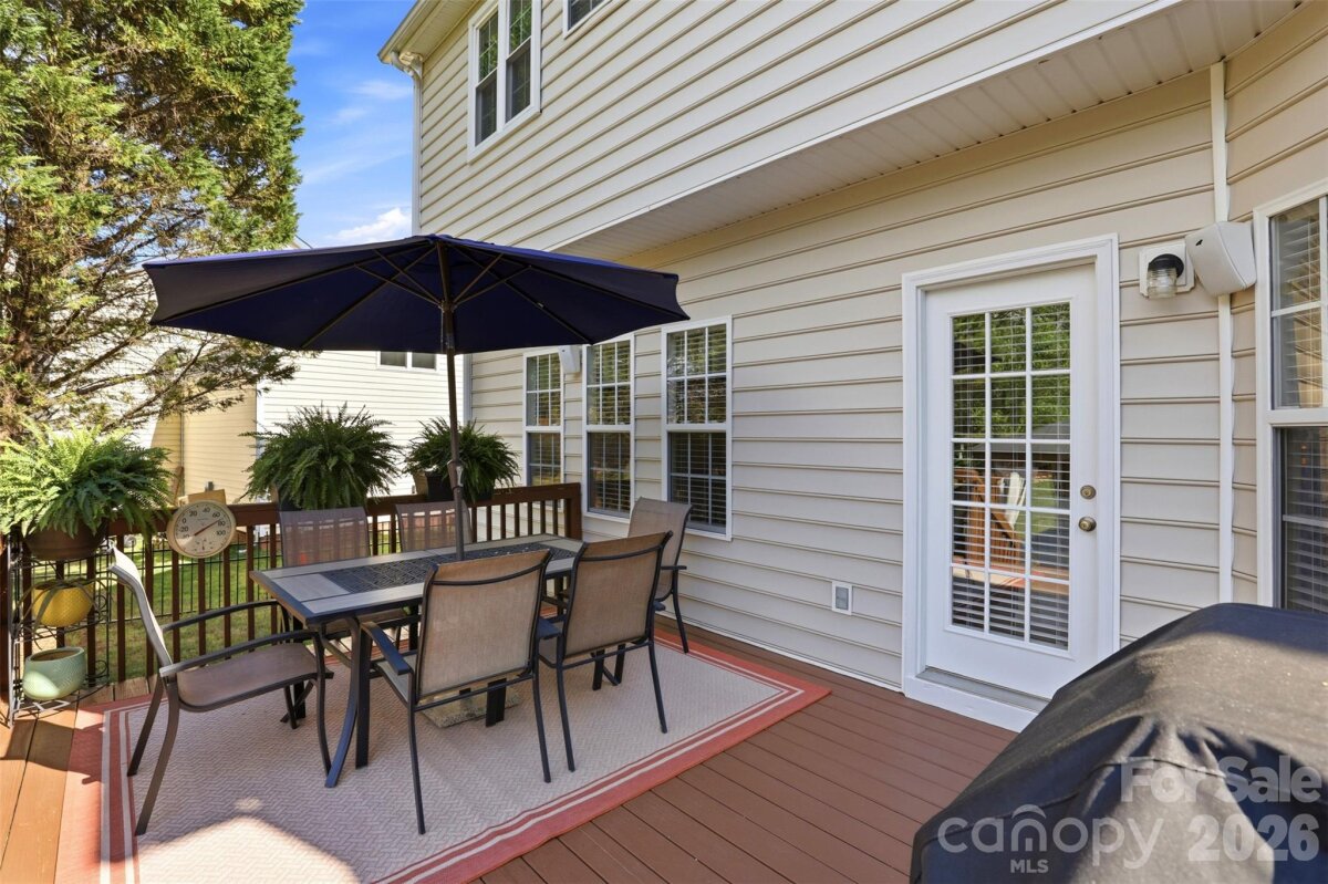 Welcome to this beautifully maintained four-bedroom home, where comfort, thoughtful updates, and an exceptional golf course setting come together in one of Mint Hill’s most sought-after communities. Perfectly positioned on a generous lot along the tee box of the 8th hole of Olde Sycamore Golf Plantation, this home offers a rare blend of privacy, scenic views, and effortless everyday living. Inside, updated flooring creates a crisp, cohesive aesthetic throughout, highlighted by rich wood floors in the living room and refreshed finishes on the stairs, hallway, and primary suite. The main living area is both warm and inviting, centered around a gas fireplace that serves as a natural focal point for relaxing evenings and comfortable gatherings. The kitchen is thoughtfully appointed with a Bosch dishwasher, a new cooktop, and a functional layout that flows seamlessly into the surrounding living spaces. The spacious primary suite offers a peaceful retreat, complemented by updated shower hardware. Secondary bedrooms are generously sized and share a well-appointed full bath. Pride of ownership is evident throughout, with features such as a vapor barrier installed in 2014 and a furnace equipped with an LED sanitizing light that has been routinely serviced—providing added peace of mind. The home also features built-in garage storage solutions. Outdoor living is where this property truly shines. A freshly painted deck overlooks a serene, tree-lined golf course backdrop, creating a private and tranquil setting. The 13' x 15' gazebo extends the living space outdoors, offering a shaded retreat ideal for dining and entertaining, while a fire pit enhances the home’s inviting, resort-like atmosphere. The landscaped and irrigated yard is both beautiful and productive, featuring mature peach and plum trees, along with established Concord and green grapevines—perfect for a true garden-to-table lifestyle. Residents enjoy access to an impressive array of community amenities, including a pool, clubhouse, tennis and pickleball courts, golf course, and driving range—supporting an active and connected lifestyle. Move-in ready and thoughtfully enhanced throughout, this home offers an exceptional balance of comfort, character, and elevated outdoor living in a premier location.