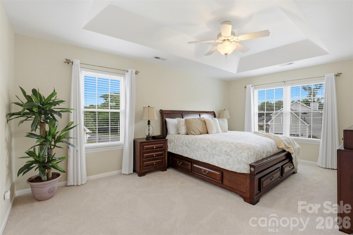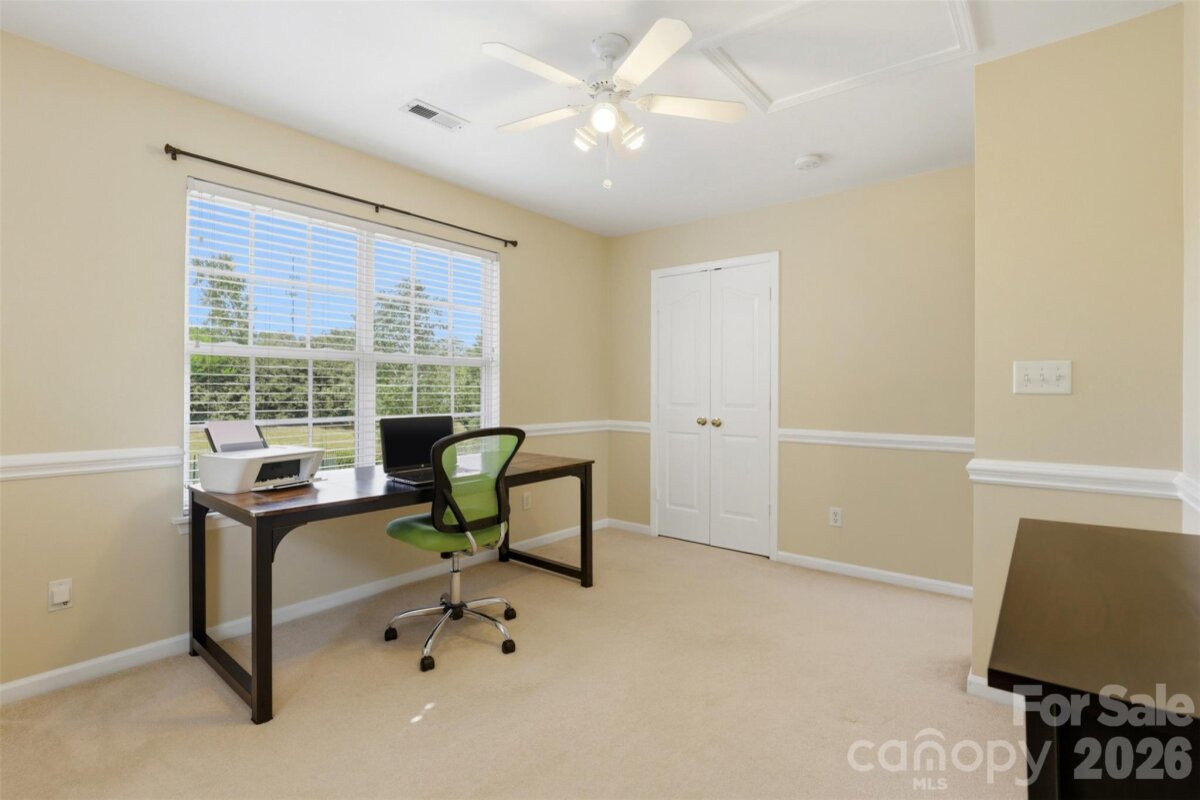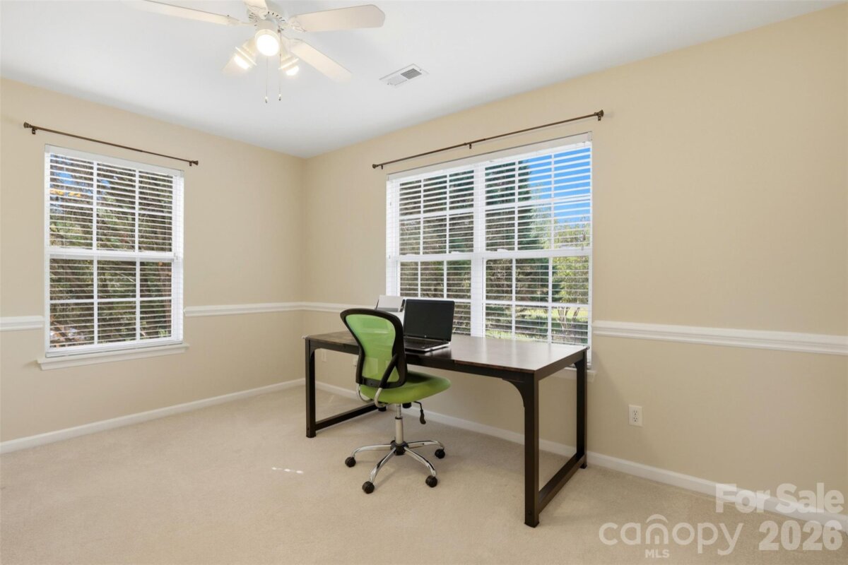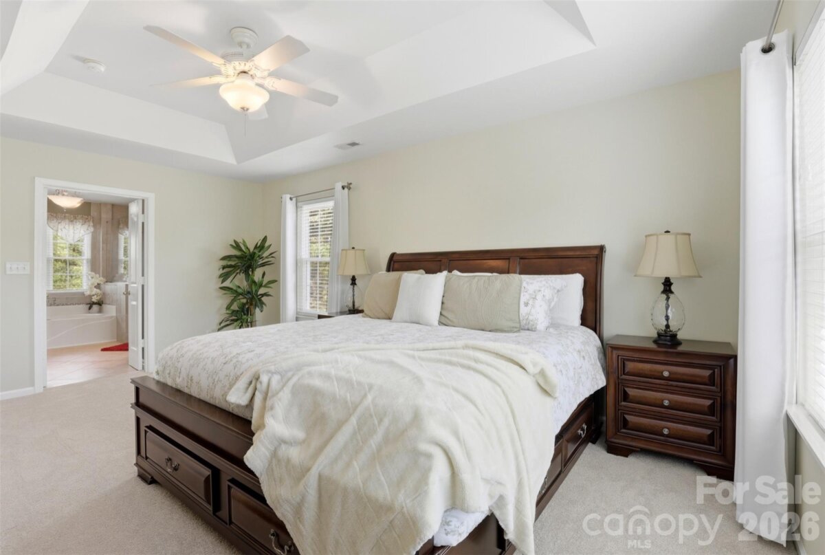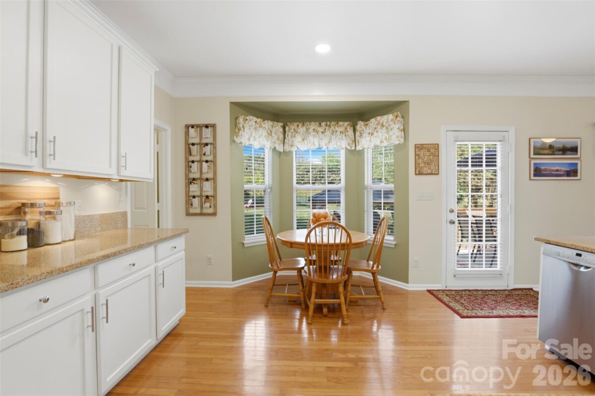 Welcome to this beautifully maintained four-bedroom home, where comfort, thoughtful updates, and an exceptional golf course setting come together in one of Mint Hill’s most sought-after communities. Perfectly positioned on a generous lot along the tee box of the 8th hole of Olde Sycamore Golf Plantation, this home offers a rare blend of privacy, scenic views, and effortless everyday living. Inside, updated flooring creates a crisp, cohesive aesthetic throughout, highlighted by rich wood floors in the living room and refreshed finishes on the stairs, hallway, and primary suite. The main living area is both warm and inviting, centered around a gas fireplace that serves as a natural focal point for relaxing evenings and comfortable gatherings. The kitchen is thoughtfully appointed with a Bosch dishwasher, a new cooktop, and a functional layout that flows seamlessly into the surrounding living spaces. The spacious primary suite offers a peaceful retreat, complemented by updated shower hardware. Secondary bedrooms are generously sized and share a well-appointed full bath. Pride of ownership is evident throughout, with features such as a vapor barrier installed in 2014 and a furnace equipped with an LED sanitizing light that has been routinely serviced—providing added peace of mind. The home also features built-in garage storage solutions. Outdoor living is where this property truly shines. A freshly painted deck overlooks a serene, tree-lined golf course backdrop, creating a private and tranquil setting. The 13' x 15' gazebo extends the living space outdoors, offering a shaded retreat ideal for dining and entertaining, while a fire pit enhances the home’s inviting, resort-like atmosphere. The landscaped and irrigated yard is both beautiful and productive, featuring mature peach and plum trees, along with established Concord and green grapevines—perfect for a true garden-to-table lifestyle. Residents enjoy access to an impressive array of community amenities, including a pool, clubhouse, tennis and pickleball courts, golf course, and driving range—supporting an active and connected lifestyle. Move-in ready and thoughtfully enhanced throughout, this home offers an exceptional balance of comfort, character, and elevated outdoor living in a premier location.