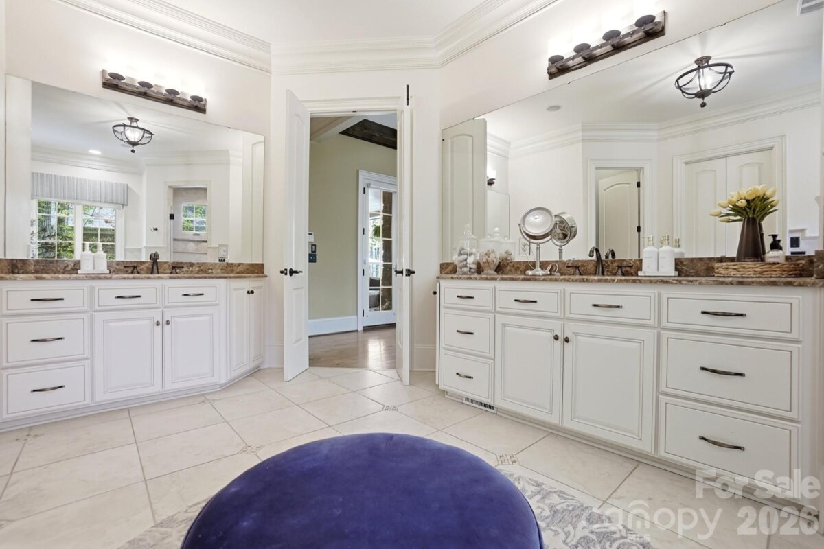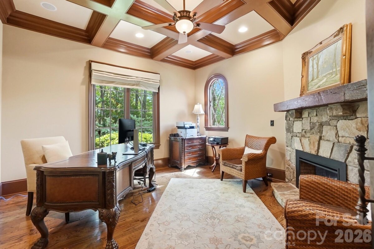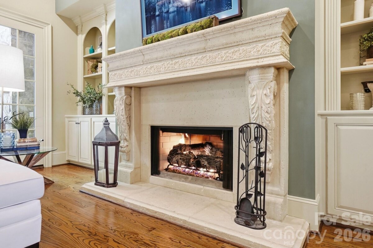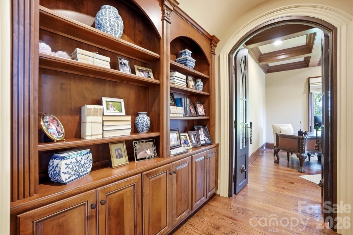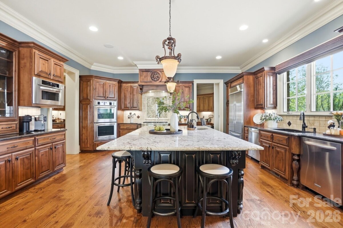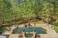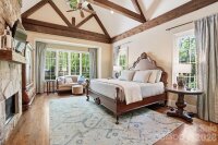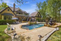 This extraordinary 5BR/5.5BTH custom-built Tudor estate is a masterclass in timeless elegance and modern luxury, showcasing exquisite stone, brick, and stucco craftsmanship paired with impeccable architectural detail throughout. A stately stone paver driveway leads to a grand Porte Cochère and a three-car garage with solid wood doors, setting the tone for the sophistication that awaits inside. Step through the flagstone entry and mahogany front door into a home defined by rich hardwood floors, soaring ceilings, and refined millwork, including 9½-inch baseboards and extensive three-piece crown molding across the first and second floors. A dramatic circular staircase with wrought iron spindles creates a striking focal point, while elegant archways lead into a formal dining room highlighted by a deep tray ceiling, crown molding, and in-ceiling speakers - perfect for entertaining. The thoughtfully designed butler’s pantry features granite countertops, glass-front cabinetry, a copper sink, wine glass storage, and a 55-bottle wine rack. A built-in bookcase leads to a private office, complete with coffered detailing, soundproofed doors, and a stacked stone gas fireplace—an ideal executive retreat. NEW ROOF March 2026! The grand great room impresses with its coffered ceiling, heavy trimwork, custom built-ins, and a stunning wood-burning fireplace with a bespoke mantel. The chef’s kitchen is equally remarkable, outfitted with premium Thermador appliances, a six-burner cooktop, pot filler, oversized island with seating, and seamless access to the covered rear porch through French doors. The main-level owner’s suite is a private sanctuary, featuring a wood-beamed cathedral ceiling, custom shades, built-ins, surround sound pre-wiring, and a cozy stacked stone fireplace. A bay window overlooks the serene backyard oasis, while direct access to the covered porch enhances indoor-outdoor living. The spa-inspired bathroom offers heated tile floors, dual granite vanities, a luxurious walk-in shower with rainhead, a clawfoot tub, and an expansive custom walk-in closet. Upstairs, generously sized secondary bedrooms each feature private baths, designer finishes, and ample storage, including walk-in closets and access to additional attic space. A versatile bonus room elevates the home’s entertainment potential with cathedral ceilings, a stacked stone fireplace, built-ins, wet bar with wine cooler, and access to a private covered porch. A moody theater room with tiered theater-style seating is the ideal place for an immersive movie night experience. Outdoors, the resort-style setting is nothing short of spectacular. A heated Pebble Tec gunite pool with shimmering seashell finishes, tanning ledge, cascading fountain, and integrated spa creates a tranquil retreat. Surrounded by travertine decking, lush landscaping, and ambient lighting, the space is designed for both relaxation and entertaining. A fully equipped outdoor kitchen, fireplace, and covered porch complete the experience. 2nd living quarters has entrance from garage or off rear porch and would make great au-pair, nanny, in-law quarters or teen suite. Additional highlights include full irrigation with drip lines and beautifully curated garden spaces with a raised herb garden and charming arbor walkway. With five fireplaces, exceptional craftsmanship, and luxurious amenities at every turn, this residence offers an unparalleled living experience for the most discerning buyer.