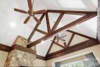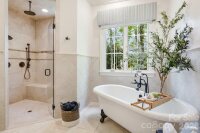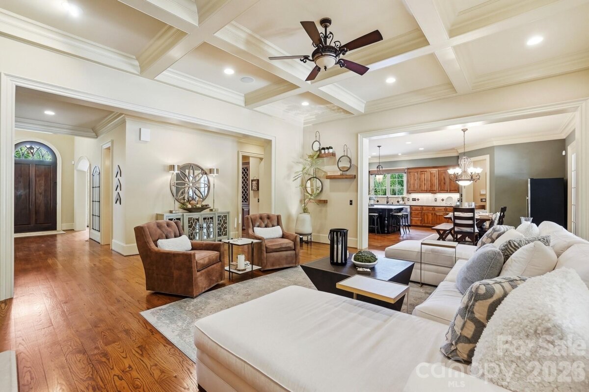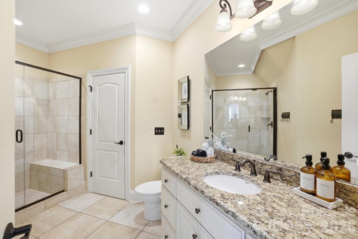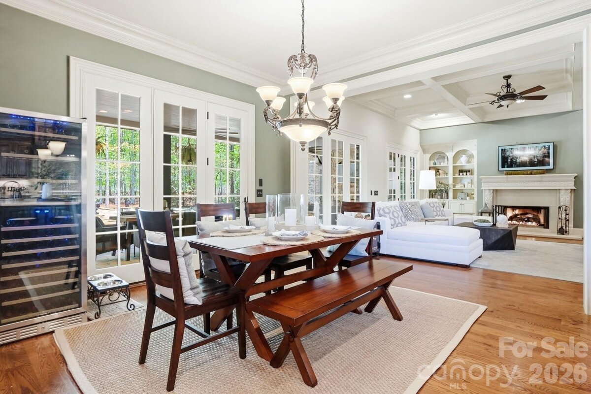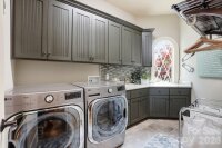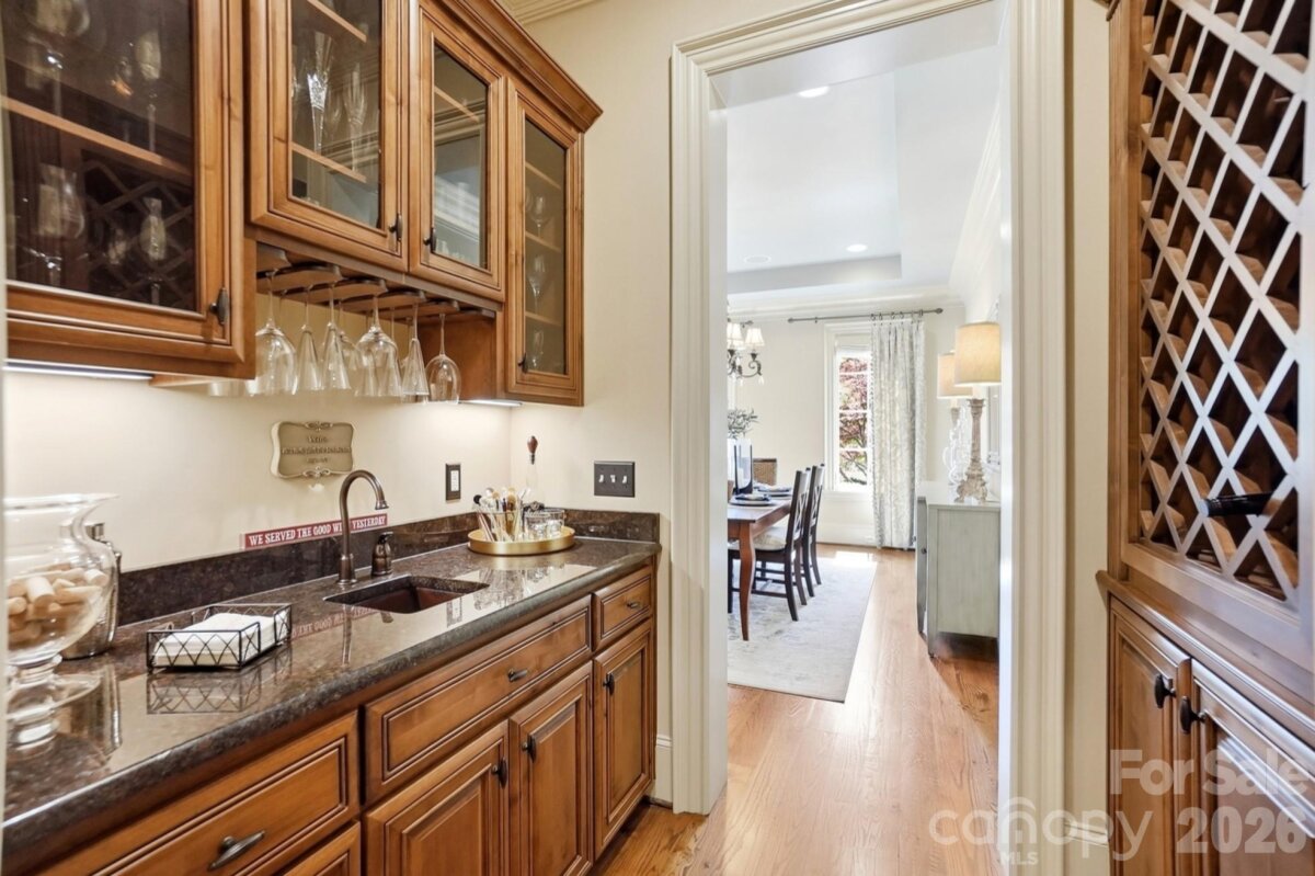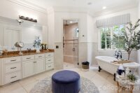 This extraordinary 5BR/5.5BTH custom-built Tudor estate is a masterclass in timeless elegance and modern luxury, showcasing exquisite stone, brick, and stucco craftsmanship paired with impeccable architectural detail throughout. A stately stone paver driveway leads to a grand Porte Cochère and a three-car garage with solid wood doors, setting the tone for the sophistication that awaits inside. Step through the flagstone entry and mahogany front door into a home defined by rich hardwood floors, soaring ceilings, and refined millwork, including 9½-inch baseboards and extensive three-piece crown molding across the first and second floors. A dramatic circular staircase with wrought iron spindles creates a striking focal point, while elegant archways lead into a formal dining room highlighted by a deep tray ceiling, crown molding, and in-ceiling speakers - perfect for entertaining. The thoughtfully designed butler’s pantry features granite countertops, glass-front cabinetry, a copper sink, wine glass storage, and a 55-bottle wine rack. A built-in bookcase leads to a private office, complete with coffered detailing, soundproofed doors, and a stacked stone gas fireplace—an ideal executive retreat. NEW ROOF March 2026! The grand great room impresses with its coffered ceiling, heavy trimwork, custom built-ins, and a stunning wood-burning fireplace with a bespoke mantel. The chef’s kitchen is equally remarkable, outfitted with premium Thermador appliances, a six-burner cooktop, pot filler, oversized island with seating, and seamless access to the covered rear porch through French doors. The main-level owner’s suite is a private sanctuary, featuring a wood-beamed cathedral ceiling, custom shades, built-ins, surround sound pre-wiring, and a cozy stacked stone fireplace. A bay window overlooks the serene backyard oasis, while direct access to the covered porch enhances indoor-outdoor living. The spa-inspired bathroom offers heated tile floors, dual granite vanities, a luxurious walk-in shower with rainhead, a clawfoot tub, and an expansive custom walk-in closet. Upstairs, generously sized secondary bedrooms each feature private baths, designer finishes, and ample storage, including walk-in closets and access to additional attic space. A versatile bonus room elevates the home’s entertainment potential with cathedral ceilings, a stacked stone fireplace, built-ins, wet bar with wine cooler, and access to a private covered porch. A moody theater room with tiered theater-style seating is the ideal place for an immersive movie night experience. Outdoors, the resort-style setting is nothing short of spectacular. A heated Pebble Tec gunite pool with shimmering seashell finishes, tanning ledge, cascading fountain, and integrated spa creates a tranquil retreat. Surrounded by travertine decking, lush landscaping, and ambient lighting, the space is designed for both relaxation and entertaining. A fully equipped outdoor kitchen, fireplace, and covered porch complete the experience. 2nd living quarters has entrance from garage or off rear porch and would make great au-pair, nanny, in-law quarters or teen suite. Additional highlights include full irrigation with drip lines and beautifully curated garden spaces with a raised herb garden and charming arbor walkway. With five fireplaces, exceptional craftsmanship, and luxurious amenities at every turn, this residence offers an unparalleled living experience for the most discerning buyer.