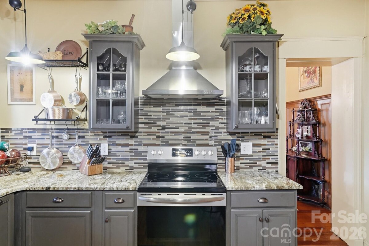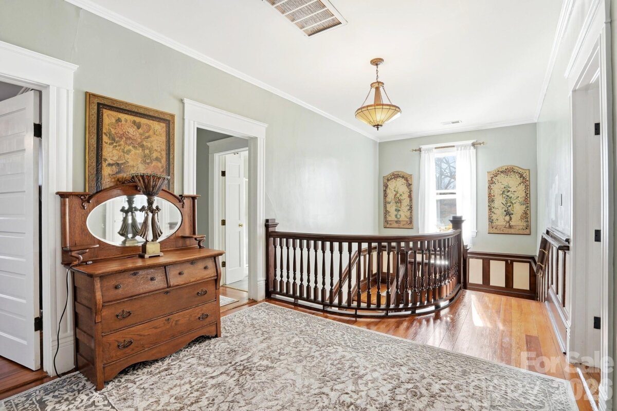 Beautifully Remodeled Historic Home on a Large Corner Lot This stunning historic home is perfectly positioned on a large corner lot, thoughtfully set back with mature trees creating a picturesque and private backdrop. Timeless full-brick architecture welcomes you, highlighted by a classic wrap-around covered front porch—ideal for relaxing and entertaining. Step inside the grand entrance, spacious enough to serve as a sitting room, and immediately appreciate the beautiful wood floors, custom crown molding, and chair rails throughout. At the front of the home are two generously sized rooms, perfect for a living room, playroom, or home office. One room features a private side entrance to the driveway, making it ideal for a professional office with separate client access. Each room showcases wood floors, fireplaces, and an abundance of upgraded details. The updated chef’s kitchen is designed to impress, featuring a large island, abundant cabinetry, and wood flooring. A true showstopper, the enormous pantry offers a full wall of custom built-ins. The kitchen flows seamlessly into the elegant dining room, complete with a fireplace for added charm. The main level also offers a bedroom with access to a full bathroom—ideal as a main-floor primary suite, guest room, or additional office. A nearby flex space could easily be converted into a spacious walk-in closet or expanded business space. Upstairs, you’ll find four large bedrooms, two full bathrooms, and an additional bonus room perfect for hobbies, an office, playroom, or oversized closet. Two bedrooms feature custom built-ins, and all second-floor rooms boast beautiful wood floors. The backyard is a true private oasis, beginning with a covered back porch and walkway that connects multiple outdoor and functional spaces. A covered carport transitions into a covered backyard patio with a barn door leading to extra storage or a potential bar or entertainment area. The covered walkway also leads to nearly 500 sq ft of space, offering endless possibilities such as a game room, office, studio, or additional entertaining area. Surrounded by mature trees for privacy, the backyard also includes a detached one-car garage for storage or future conversion. Parking is abundant with a circular driveway and additional parking spaces. Additional features include a 100-year roof, extensive storage options, and unmatched flexibility for residential living, entertaining, or home-based business use.