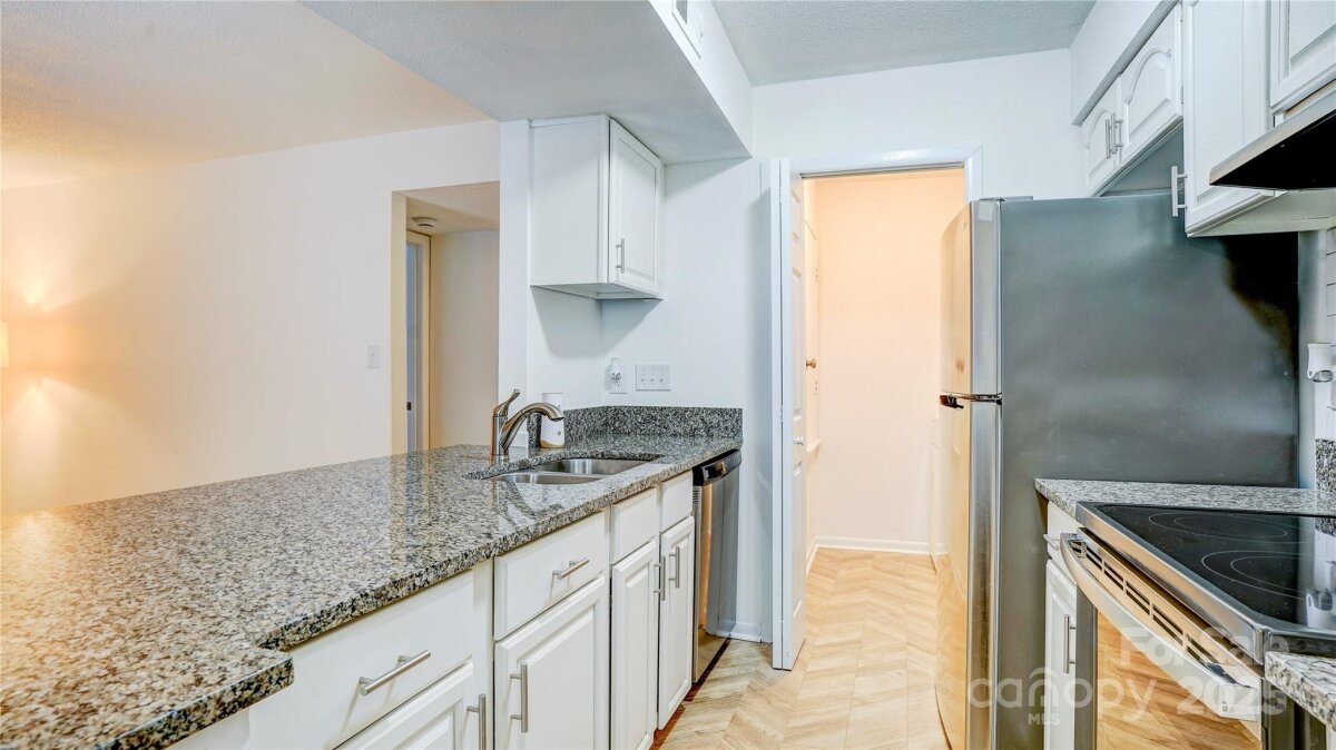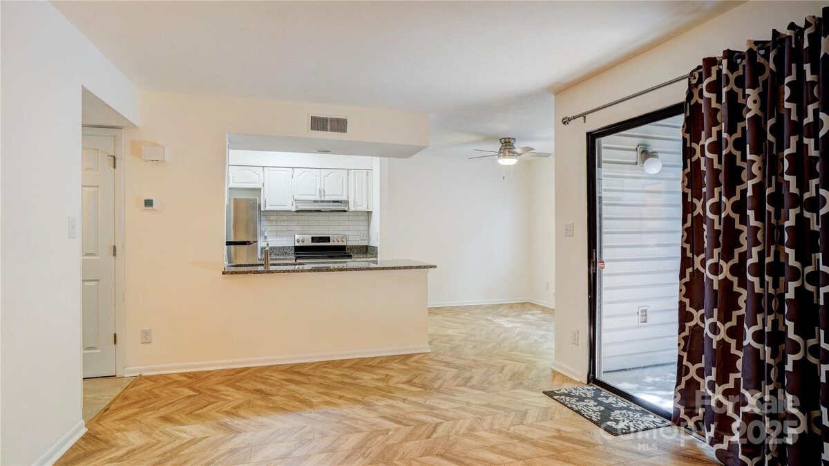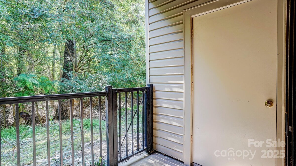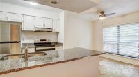 Enjoy the perfect blend of comfort and convenience in this updated ground-level unit, ideally positioned between the sought-after neighborhoods of SouthPark and Ballantyne. The bright, eat-in kitchen boasts brand-new appliances, granite countertops, a luxe backsplash, and gleaming cabinets accented with modern hardware. A counter-height bar—perfect for several barstools—opens to the cozy living room, where a fireplace creates a warm focal point. From here, step out to the covered back patio and take in serene wooded views that offer both peace and privacy. Recent upgrades beyond the kitchen remodel include brand-new blinds and flooring throughout, plus added shelving in the laundry room for extra storage. The spacious bedroom features a versatile nook—ideal for a desk or reading space—and a massive walk-in closet thoughtfully redesigned to maximize organization. Listing agent is the owner/seller. Willing to convey washer, dryer and refrigerator with acceptable offer. Condo is the best value in South Charlotte! HOA fees are very reasonable for the area. Reach out to schedule your tour today!
