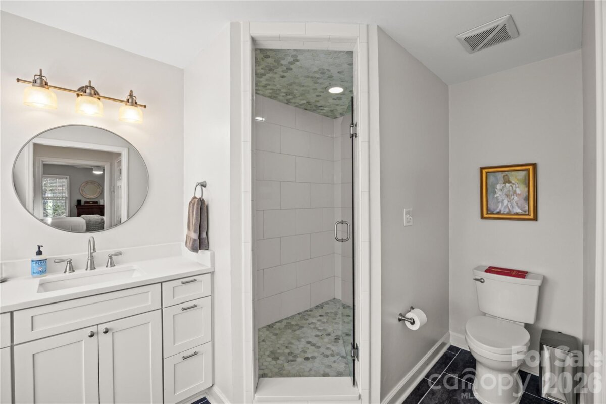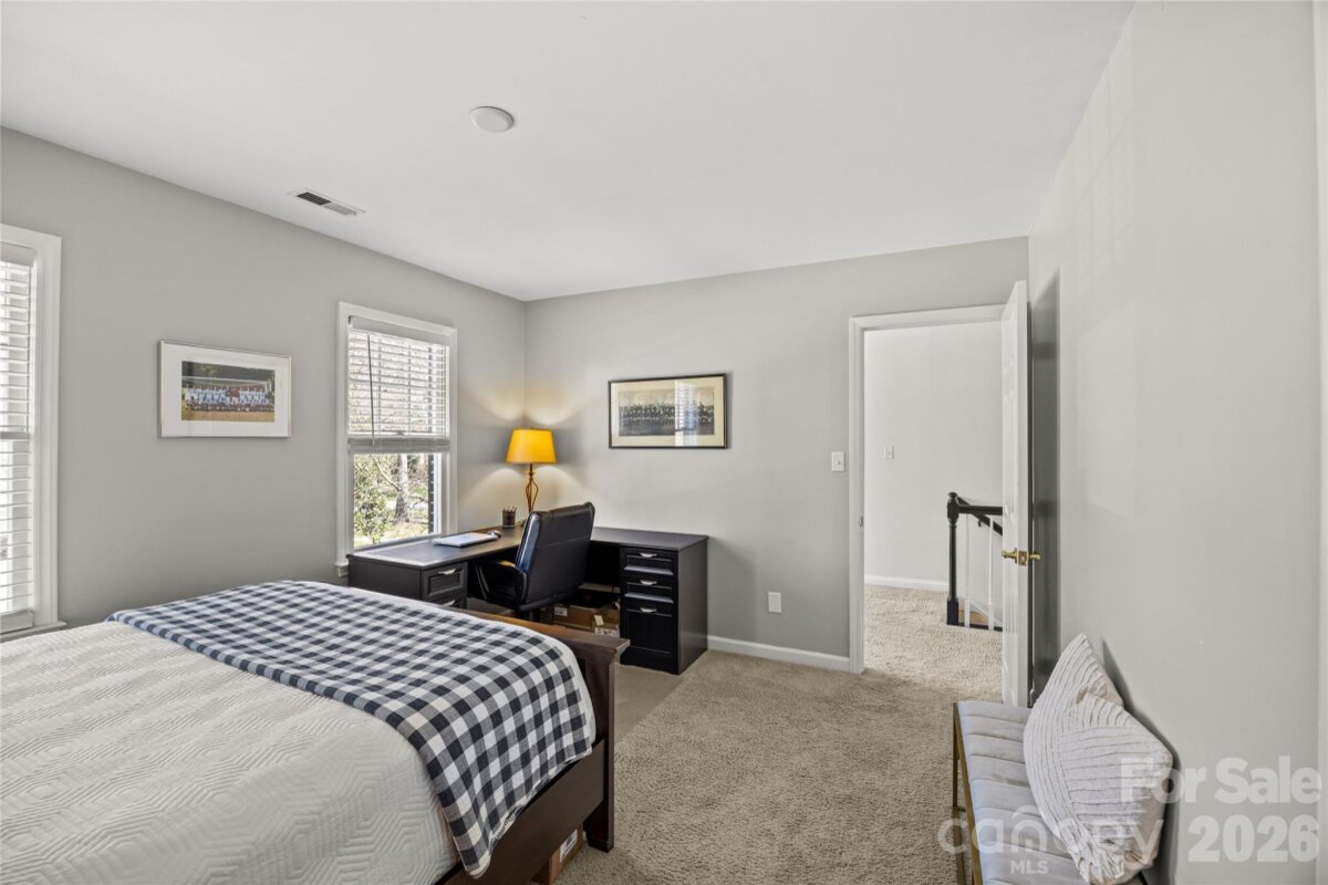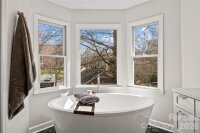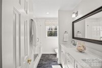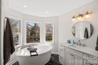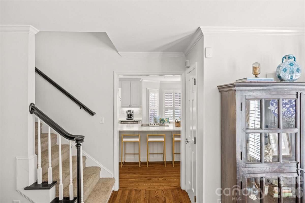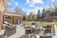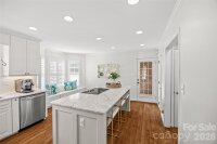 Beautifully renovated two-story brick traditional in highly sought-after Cotswold, offering classic charm, thoughtful updates, and an ideal location just minutes from Cotswold Shopping Center and Uptown Charlotte. This inviting home features 9-foot ceilings down with 8 ft up, heavy moldings, and a wonderful open floor plan perfect for both everyday living and entertaining. Elegant formal living and dining rooms provide welcoming gathering spaces, while the updated kitchen offers white cabinetry, marble countertops, stainless steel appliances, a large center island, and a sunny bay window with built-in window seating. The kitchen opens seamlessly to the warm and inviting family room with a painted brick fireplace and atrium doors leading to a spacious deck overlooking the private backyard. Upstairs, double doors lead to the light-filled primary suite with a beautifully renovated bath featuring oversized tile flooring, a large walk-in shower, oversized free standing soaking tub and separate vanities. Two additional bedrooms share a renovated hall bath with large tile flooring, a new vanity, and updated lighting. A conveniently located upstairs laundry room adds everyday convenience. The spacious deck and private backyard provide a wonderful setting for relaxing or entertaining while enjoying the peaceful surroundings of this established and desirable neighborhood.