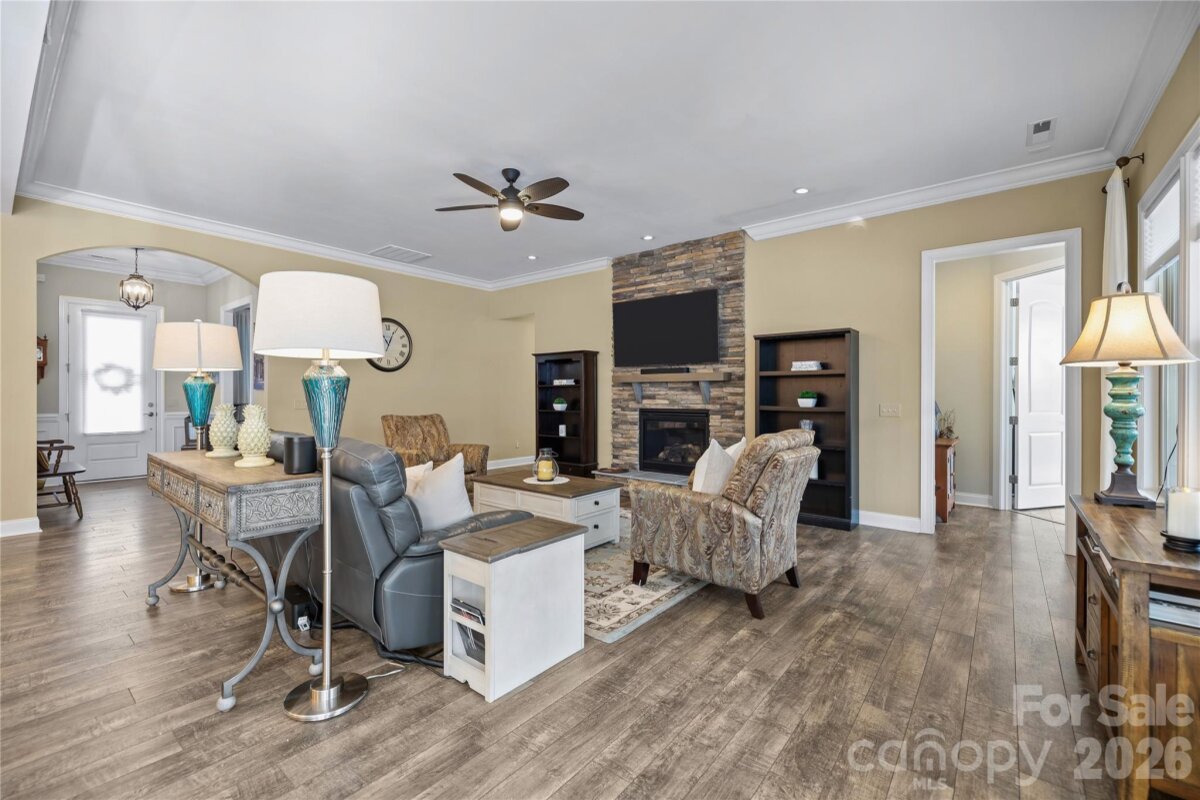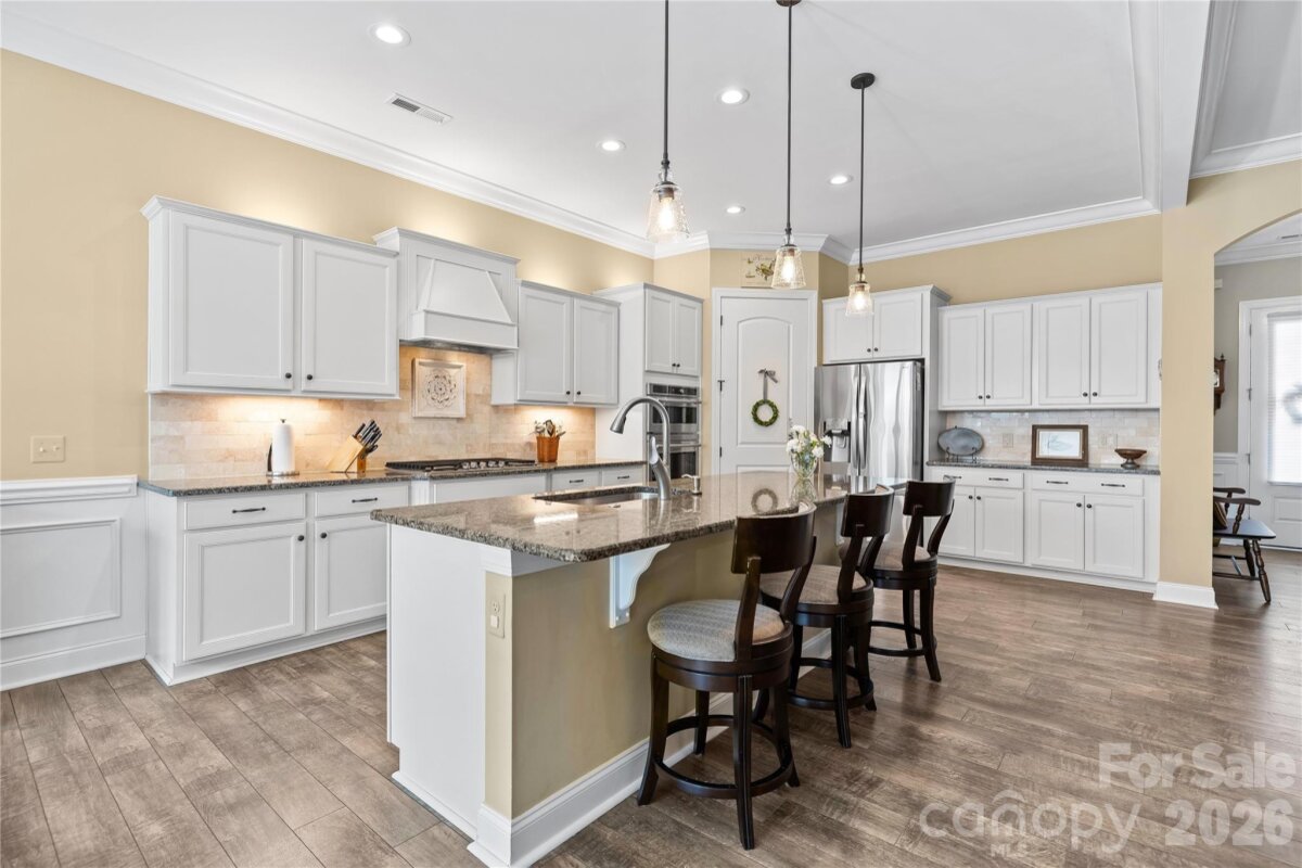 Welcome to 1106 Castle Road in the heart of Indian Land, SC — a beautifully maintained home offering thoughtful upgrades, flexible living space, and exceptional indoor-outdoor living. Designed for both comfort and entertaining, the open floor plan centers around a stunning great room featuring a stacked stone mantel gas log fireplace — a true focal point that adds warmth and character. Natural light fills the main living areas, creating an inviting and comfortable atmosphere. The kitchen is well-appointed with an oversized granite bar-stool island perfect for gatherings, stylish tile backsplash, gas cooktop with vented hood, walk-in pantry, and abundant cabinet storage. It flows seamlessly into the dining and living spaces, making everyday living effortless. The spacious primary suite serves as a private retreat, highlighted by a custom-designed walk-in closet with high-end built-ins for optimal organization. Just off the primary bedroom is a versatile flex space ideal for a home office, nursery, sitting area, fitness room, or easily converted into a third bedroom if desired. Bedroom 2 offers exceptional privacy and convenience with its own connecting full bath, making it ideal for guests. Additional functionality continues in the well-designed laundry room featuring a drop zone, utility sink, and cabinet storage — perfect for staying organized. Outdoor living is where this home truly shines. Step onto the screened porch, ideal for year-round enjoyment, which leads to a beautifully crafted paver patio complete with a hot tub feature — perfect for relaxing evenings or entertaining guests. The fully fenced backyard provides privacy and a secure space for pets or play. The garage is equipped with overhead storage racks for added organization and includes two 50-gallon electric water heaters, offering peace of mind and efficiency. Located in desirable Indian Land with convenient access to shopping, dining, and nearby Charlotte, this property combines flexible design, quality finishes, and outstanding indoor-outdoor living. Schedule your private showing today and experience everything 1106 Castle Road has to offer.
