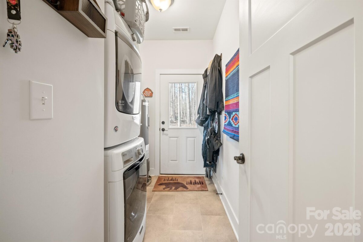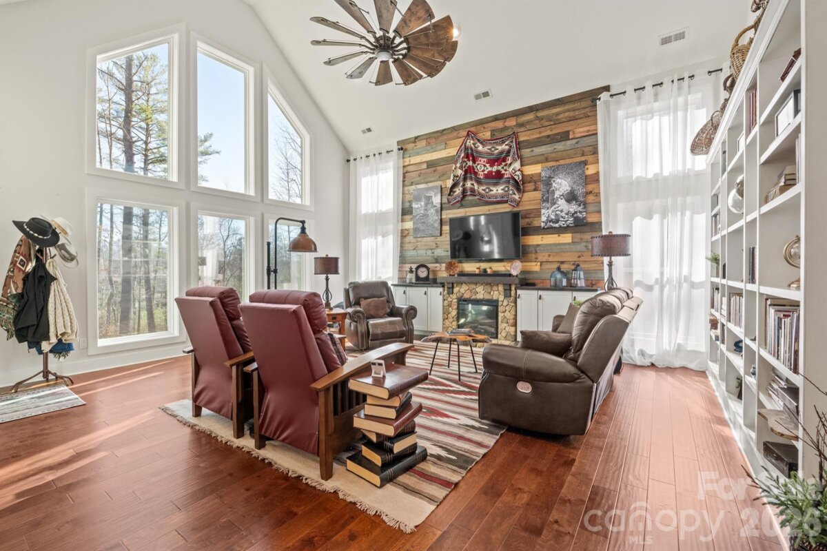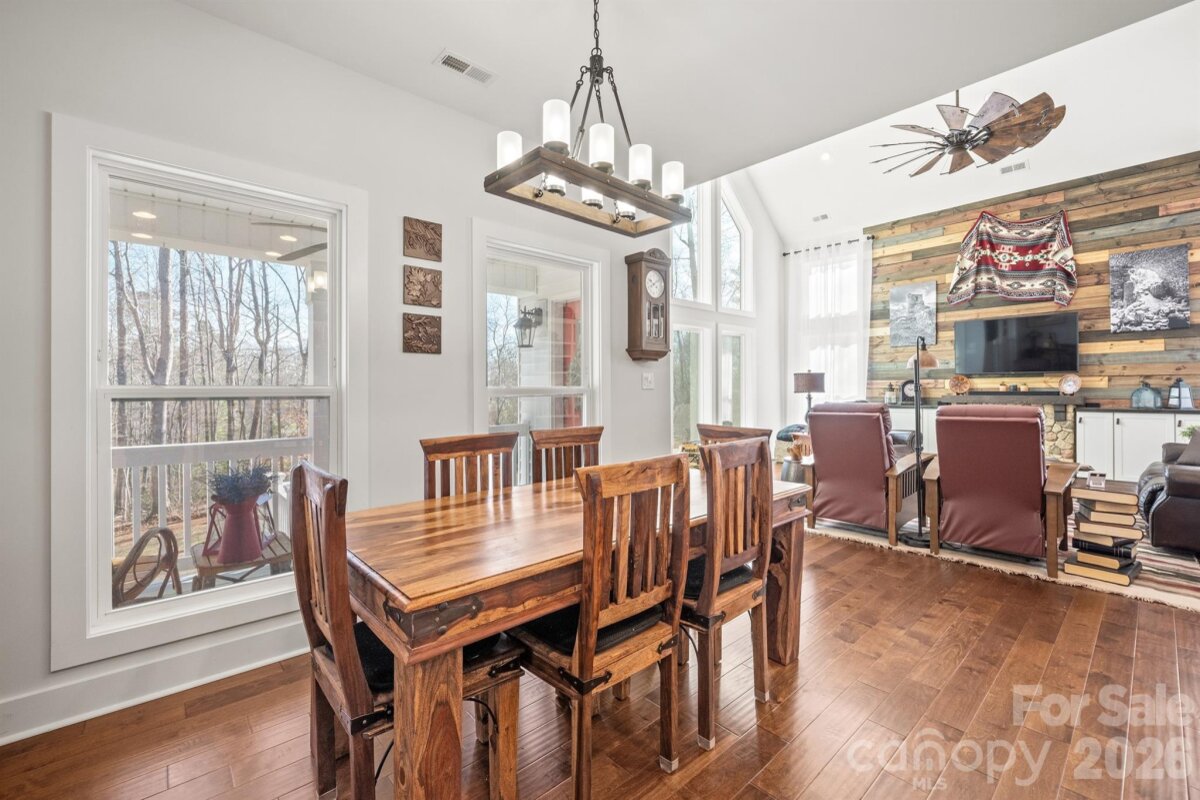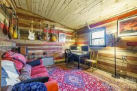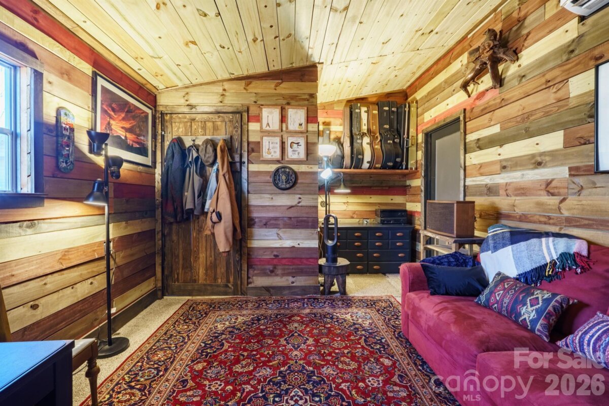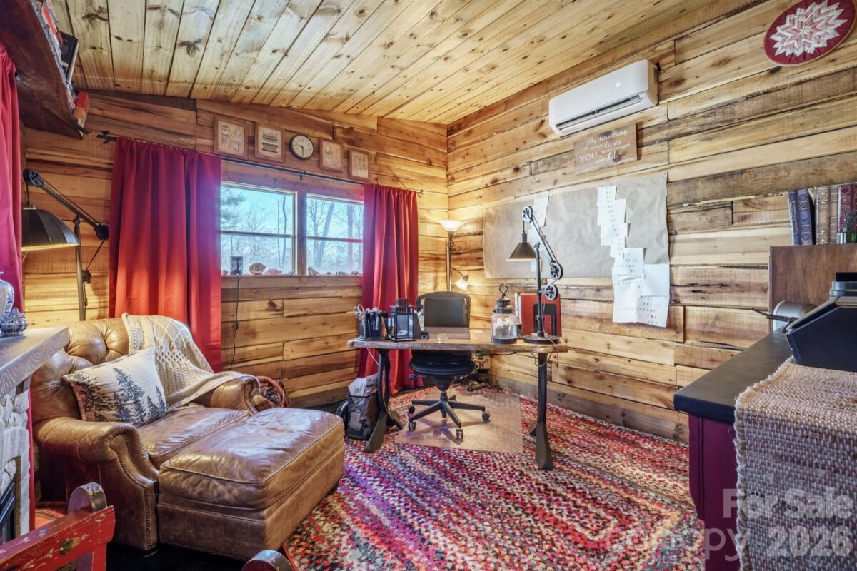 Private 5-acre retreat in the desirable Mountain View area. Wind up the drive to this beautifully crafted 2021 home where peaceful surroundings and thoughtful design come together. Relax on the covered front or side porch and take in the natural setting. Inside, a dramatic cathedral-ceiling great room features a wall of windows overlooking the property, built-ins, and rock electric fireplace with cabinetry. The open kitchen is designed for both everyday living and entertaining with high-end appliances, granite countertops, tile backsplash, pot rack, movable island, spacious eat-in area, and a walk-in pantry. The primary suite offers a private bath and walk-in closet, while the second bedroom also includes a walk-in closet and access to a large hall bath. A laundry area with a stackable washer/dryer, a built-in drying rack, and an exterior back door to the backyard and firepit area. The detached garage adds exceptional versatility. Two finished rooms with mini-splits (348 HSF)—currently used as a music room and home office—feature beautiful wood sourced from the property itself. A tall 10' x 10' garage door provides plenty of space for vehicles or recreational equipment, and the workshop area includes a wood stove. Bring your tractor or four-wheeler and explore the acreage. A property like this offers the privacy, space, and lifestyle many dream about. No city taxes, No restrictions. Just open playful enjoyable property that is turnkey and ready for a new owner.