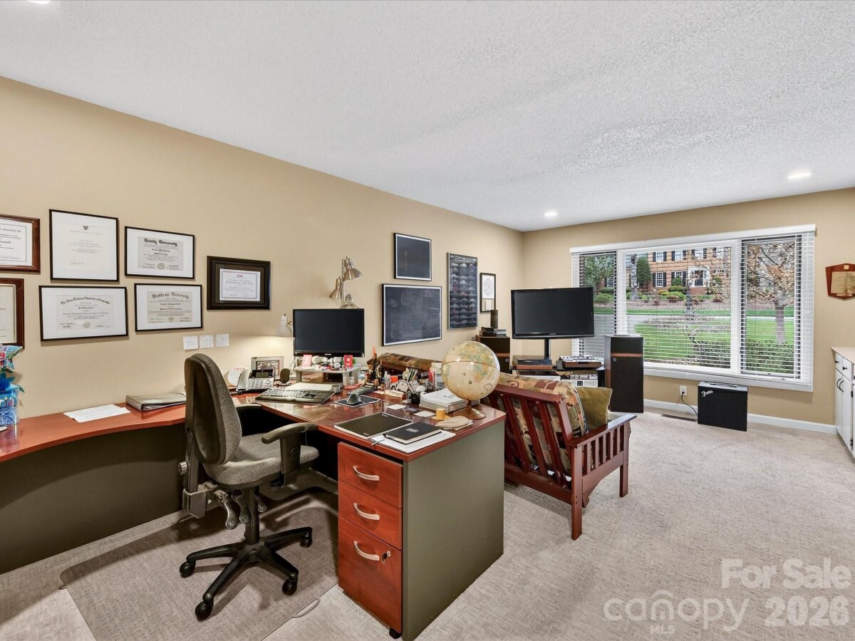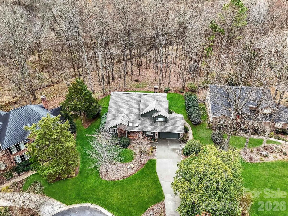 This beautiful custom Arthur Rutenberg built home blends timeless architectural design with a thoughtfully crafted floor plan for comfortable everyday living. Ideally situated on a premium wooded, over ½-acre cul-de-sac lot in the desirable Huntington neighborhood. The kitchen features abundant cabinetry with granite counters, tiled backsplash, stainless appliances, walk-in pantry and opens to great room anchored by stone fireplace with wall of windows that bathe the space in natural light while offering stunning views of the private backyard. Main floor office/bonus room & soaring 2-story living room & dining area. Spacious primary bedroom with ensuite bath features dual vanities, expansive walk in shower, Jacuzzi tub and large walk-in closet. All secondary bedroom are generously sized. Step outside to enjoy all this property has to offer on the large deck overlooking the sprawling, private, backyard surrounded by mature trees and landscaping. Perfect for entertaining, relaxing and bird/nature watching. Located in top-rated Providence High school district and just minutes from excellent shopping and dining in the Arboretum and Southpark. Huntington offers outstanding neighborhood amenities including a Cabana, Outdoor Pool, Tennis/Pickleball court and picturesque Walking Trails.