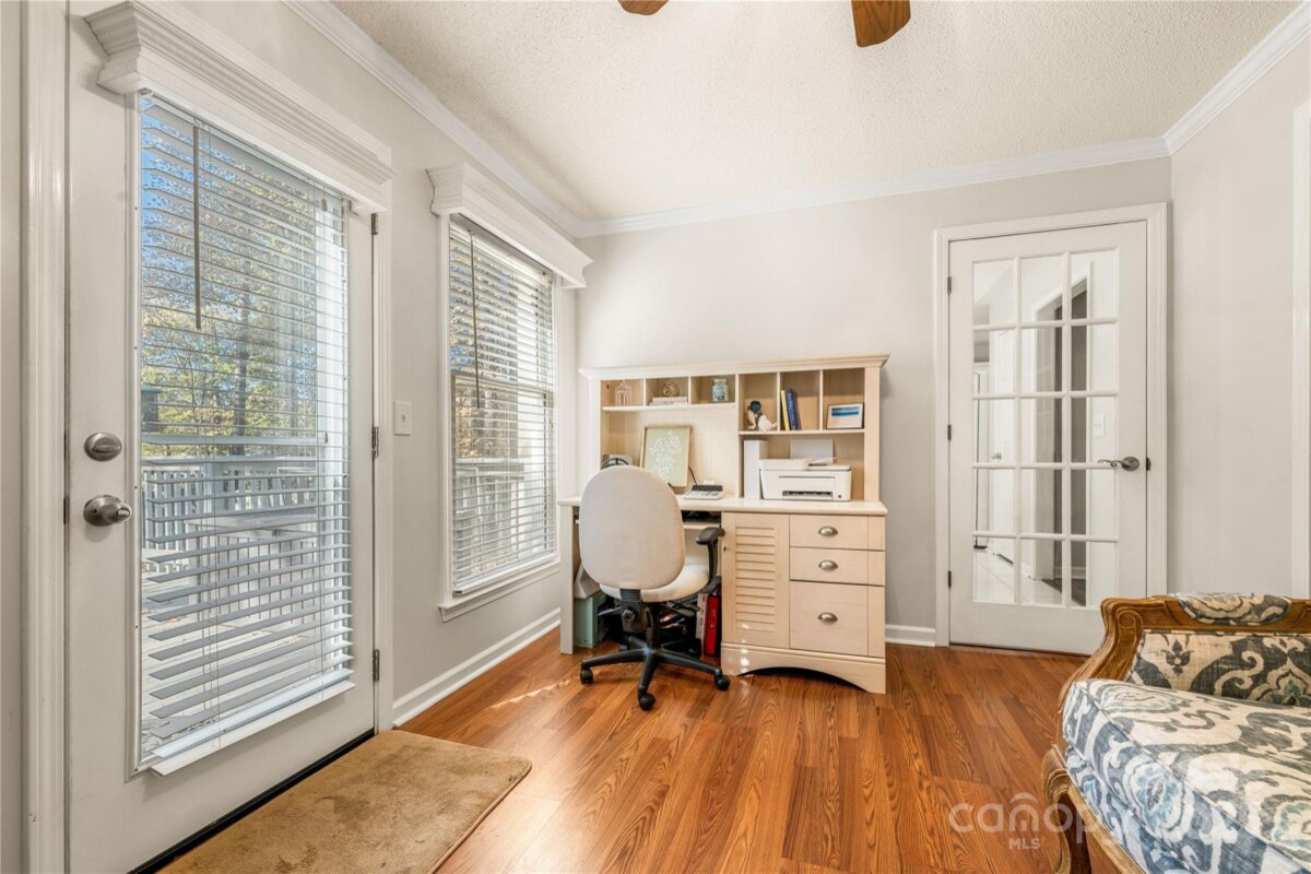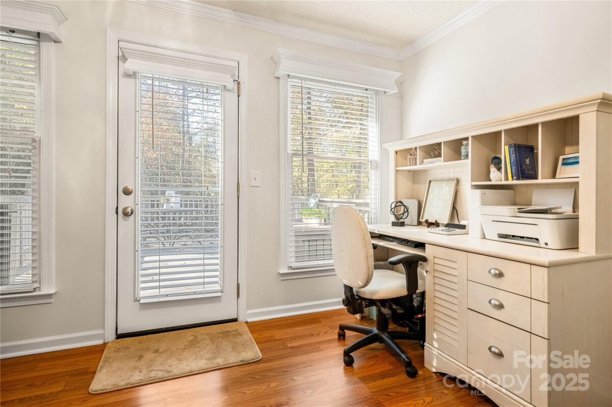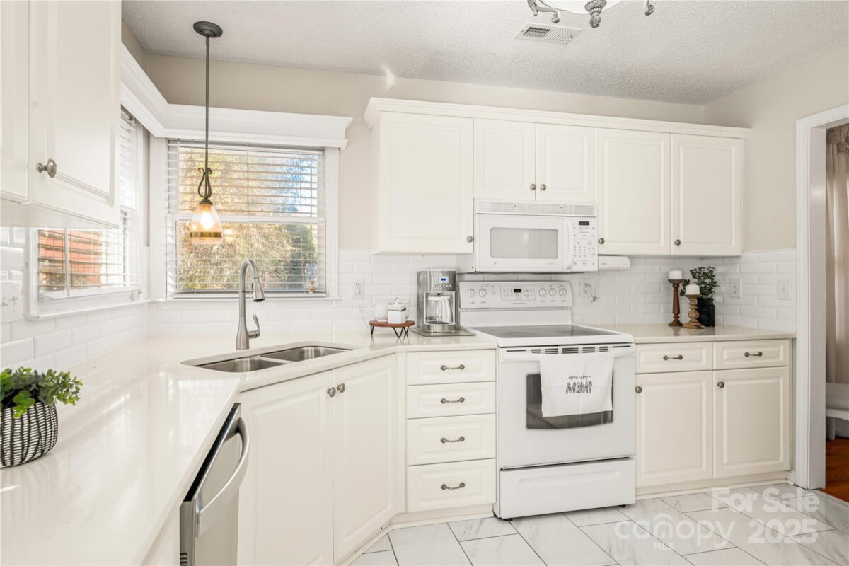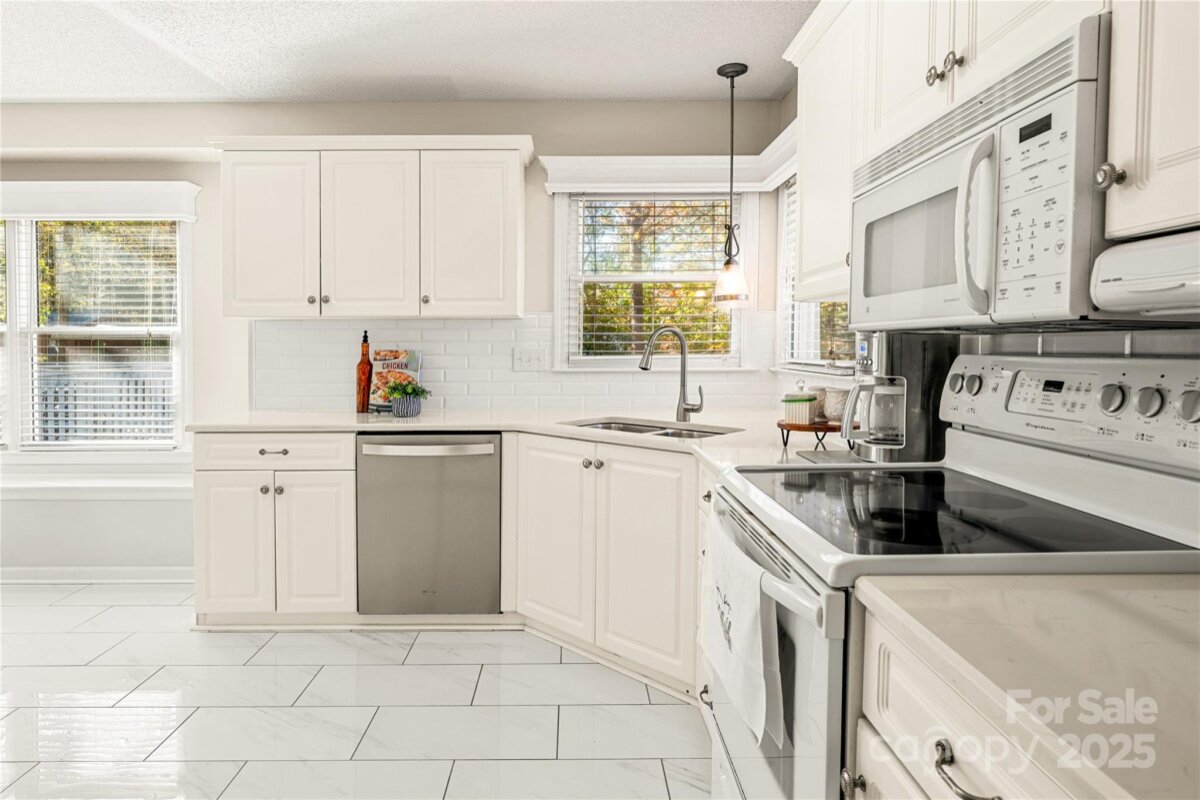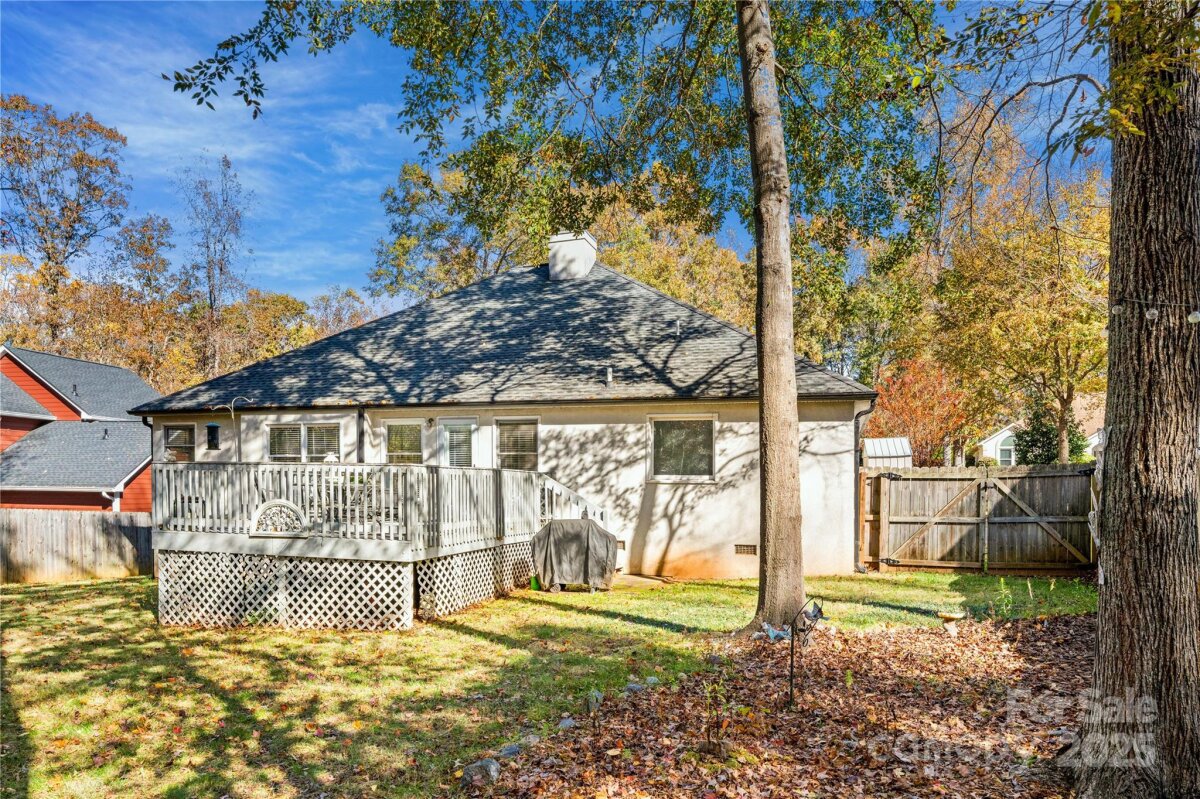 Welcome to this cozy ranch nestled in a peaceful, wooded Fort Mill setting. With no HOA, you’ll enjoy freedom and privacy in a backyard that backs to serene woods—perfect for unwinding or entertaining. Inside, the open-concept living room makes a statement with a fireplace and plenty of natural light. The updated kitchen impresses with crisp white cabinetry, porcelain tile, quartz countertops, ample lighting, and some new appliances, blending function and flair. The spacious primary suite features a large bath with separate soaking tub and walk-in shower, double sinks and spacious vanities, plus an organized walk-in closet. The home features a split floor plan with secondary bedrooms and a full bath on one side of the home. A large dining room could also function as a flex space. Step into the stunning all-seasons sunroom overlooking the backyard—your year-round retreat for morning coffee or evening relaxation. Need a place to park an RV, trailer or boat ? There's an extended drive and parking pad in place. A very spacious back yard is great for entertaining. Deck and firepit are inviting! Workshop will convey, which is equipped with power and a ramp! This home and property have plenty of storage options, with a large floored-in attic space, walk-in closet, large laundry area with cabinetry and storage in outbuildings. Located on a peaceful, wooded lot, updated with neutral colors and a prime Fort Mill location close to top-rated schools, shops, and dining—this home defines comfort and convenience. No HOA. Schedule your showing now in this affordable gem of a neighborhood.
