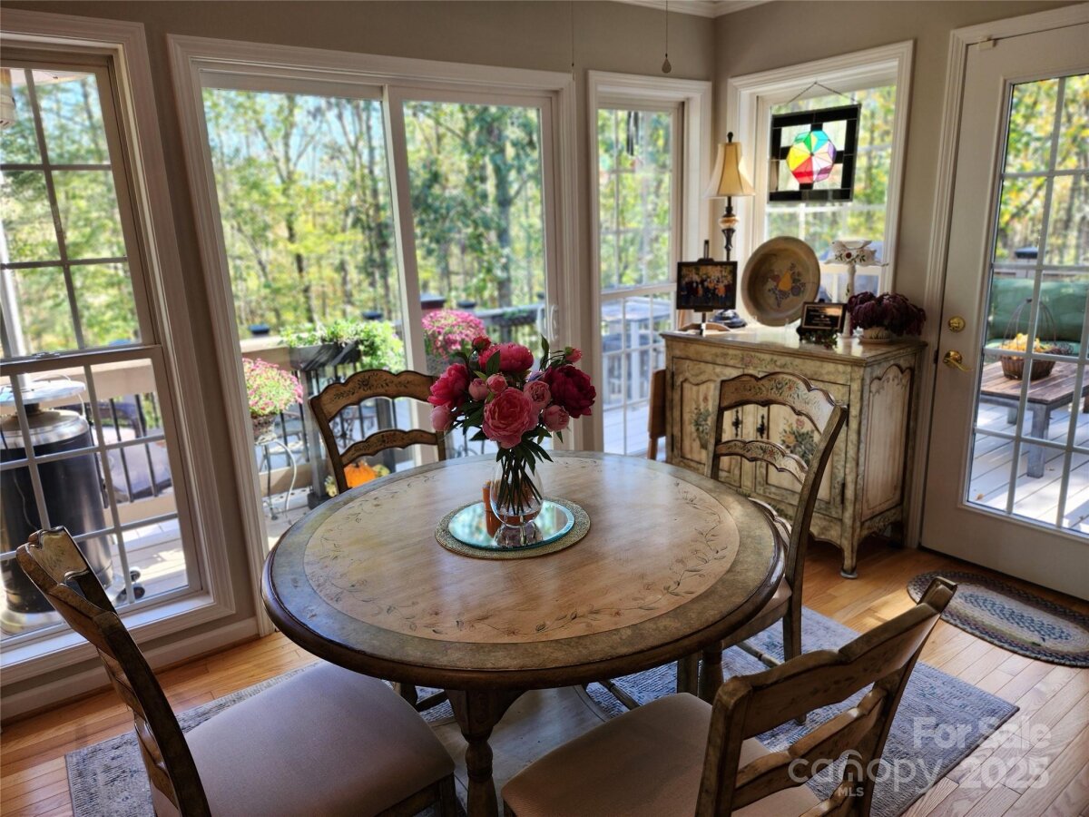 Welcome to this stunning 3-bedroom, 2-bathroom retreat nestled in the heart of Millers Creek. Designed with comfort and entertainment in mind, this home features a sparkling, heated pool for summer fun, a spacious covered patio great for gatherings, an outdoor fireplace to cozy up on cool evenings, a great room that seamlessly blends dining and relaxation, complete with a formal dining table, a sunny breakfast nook and a kitchen island with a microwave drawer and bar stools to provide even more seating. And do not miss the multi-level deck off the Great Room! Whether you are hosting a lively get-together or enjoying a quiet evening under the stars, this home offers the perfect setting. Come experience the charm and warmth of Millers Creek living!