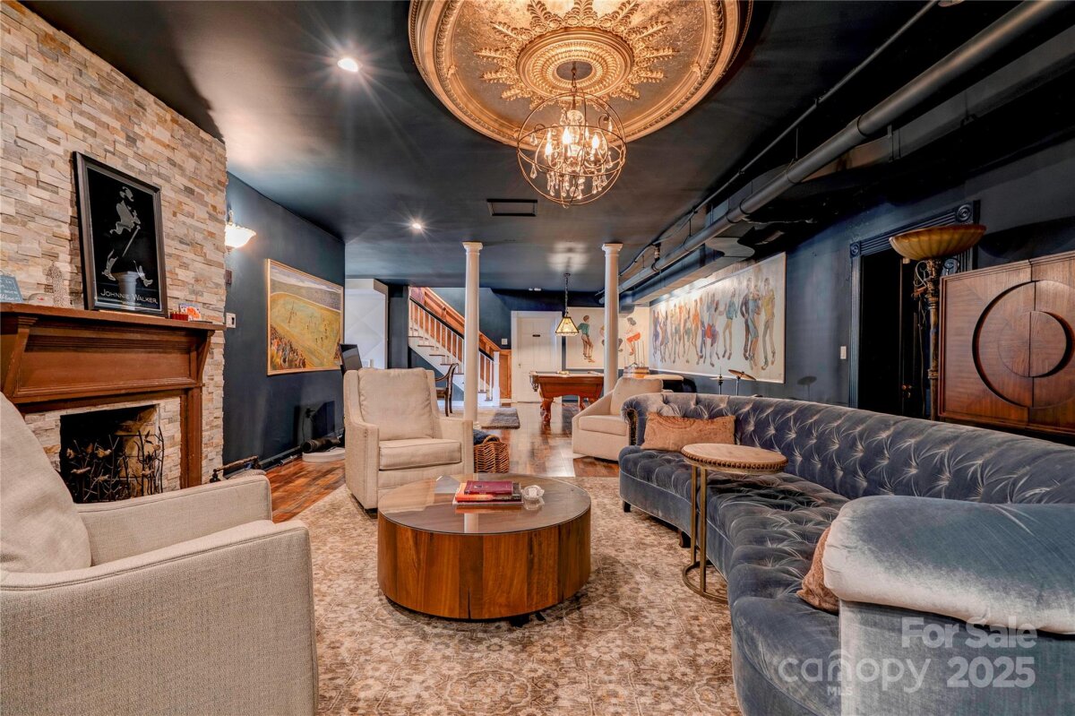 Kings Mountain Jewel! Rare opportunity to own a historic gem on the National Register of Historic Places. The Paul M. Neisler House offers 7,268 heated sq ft of timeless elegance and modern functionality on approx. 1.39 acres. This full-brick 2-story home with basement features a grand foyer, preserved original murals, elevator, multiple fireplaces, and hardwood floors. Chef’s kitchen, custom built-ins, and spacious formal/informal living areas are ideal for entertaining. 5 BR, 3 full BA, 2 half BA, including a primary suite with walk-in closet, laundry, and dressing area. Basement includes rec room, office, storage, and speakeasy-style wine lounge. Enjoy beautifully landscaped grounds, brick walkways, covered porches, patios, irrigation system, oversized 3-car garage, and dog wash station. Impeccably maintained with exceptional attention to detail throughout. Prime Kings Mountain location! https://view.paradym.com/idx/110-N-Gaston-Street-Kings-Mountain-NC-28086/4930697