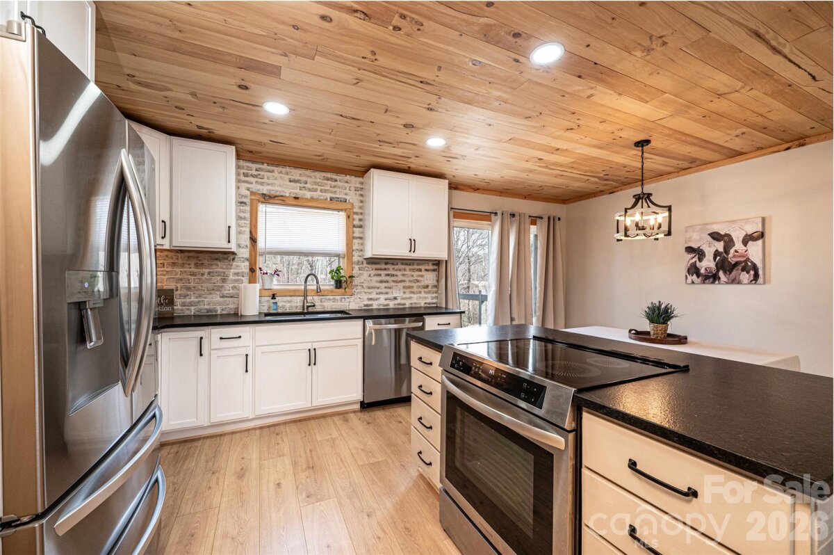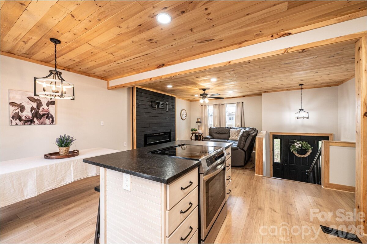 Tastefully remodeled 4-bedroom, 3-bath home in a lovely Rutherford College! The beautiful kitchen features a large island with induction oven and cooktop, plus custom cabinetry. Enjoy the open living room with a gorgeous electric fireplace and adjoining dining area—perfect for everyday living and entertaining. The primary bedroom and ensuite offer built-in cabinetry and a relaxing soaking tub. The lower level provides excellent flexibility and could function as a separate living area, complete with a spacious den, large fourth bedroom, and hall bath. Updates have been completed since 2023, including new windows, flooring, fixtures, heat pump, water heater, ceiling shiplap, vinyl and deck.