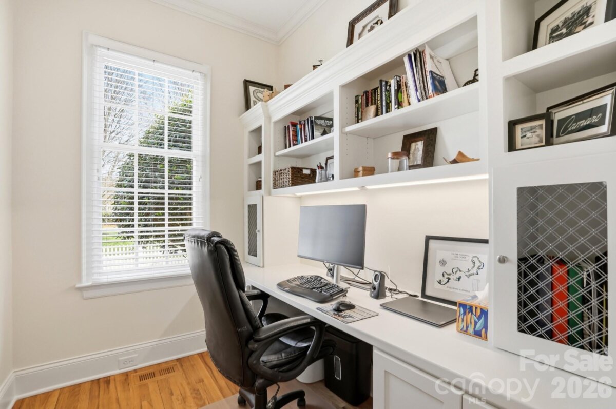 Tucked along charming Yale Loop in Sconset Village, a gated community, within The Point at Lake Norman, this beautifully designed home captures the essence of elevated Lake Norman living—where timeless architecture, thoughtful design, and an exceptional community come together. A welcoming white picket entrance full of gorgeous perennials and an elegant two-story foyer set the tone the moment you arrive, offering a glimpse of the warmth and sophistication carried throughout the home. Rich hardwood floors lead into an inviting great room anchored by custom built-ins, wood beam ceiling and a cozy fireplace—an ideal setting for relaxed evenings or gathering with friends after a day on the lake or golf course. A butlers pantry with wine refrigerator is conveniently located off the great room and also connects to the spacious office located at the front of the home and off of the foyer. At the center of the home, the open kitchen and gathering spaces were designed for both everyday comfort and effortless entertaining. A spacious island and refreshed cabinetry create a seamless flow between kitchen, dining, and living areas. Just nearby off the back of the kitchen is a private office (2nd office) that offers a quiet, refined workspace for those working from home. The main-level primary suite serves as a serene retreat, featuring a spa-inspired bath with beadboard ceiling, indulgent soaking tub, oversized walk-in shower, and an impressive, large custom closet designed to keep everything beautifully organized. Upstairs, bedrooms two and three share a well-appointed Jack-and-Jill bath, while TWO additional flexible spaces open the door to endless possibilities—whether a media room, playroom, guest retreat, or private fitness studio with an already mirrored wall. Outdoor living is another way this home truly shines. A spacious screened porch with infrared heating allows you to enjoy the outdoors well beyond the warmer months, while the expansive paver patio invites evenings by the gas fireplace or relaxing in the hot tub under the Carolina sky. The deck is constructed with premium long-life Ipe Brazilian Hardwood decking, and an outdoor grill is conveniently plumbed to natural gas for effortless entertaining. During cooler months, the backyard offers seasonal views of Lake Norman with no homes interrupting the sightline, adding a subtle but beautiful connection to the water. Located within Sconset Village, one of the most charming pockets of The Point, Yale Loop offers a quiet, storybook setting where neighbors gather, evening walks are common, and life moves at a relaxed, welcoming pace. As a resident of The Point, you are moments from the world-class amenities of Trump National Golf Club Charlotte, including championship golf, lakefront dining, tennis, spa services, resort pools, and vibrant social events that define the Lake Norman lifestyle. With major system upgrades already completed—including a 50-year roof ($100k+ in 2023), updated HVAC systems (2022–2023), tankless water heater, new gutters with guards, smart thermostats, and additional attic storage flooring—this home offers both peace of mind and effortless living. This is more than a home. It’s a lifestyle rooted in community, comfort, and the best of Lake Norman living.