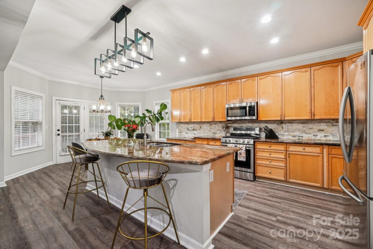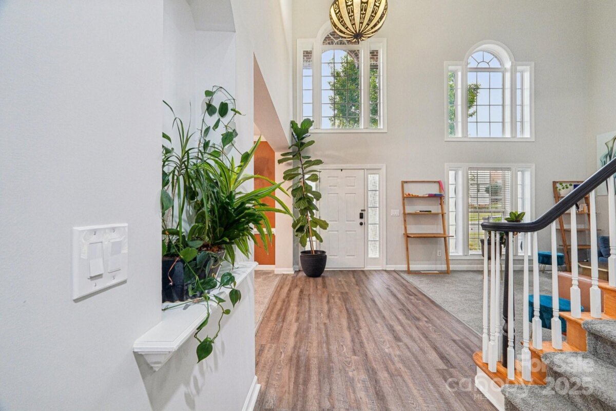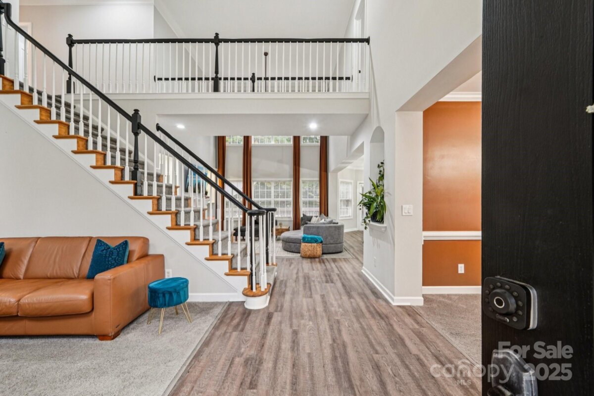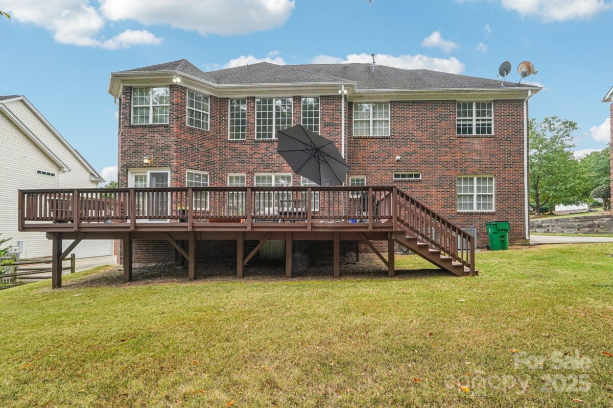Stunning Full Brick Luxury Home 5 spacious bedrooms and 3 full bathrooms. Welcome to this exceptional full brick residence offering of 3000 sq ft of elegant living space. This home is designed with an open floor plan and soaring ceilings that create a light-filled, inviting atmosphere. The main level showcases a formal living room, formal dining room, and a great room with custombuilt-in bookshelves and a cozy fireplace. Comparable to a chef's kitchen with a breakfast area opens seamlessly to the great room, perfect for entertaining. The main level also includes a guest bedroom with a full bathroom, ideal for visitors or multi-generational living. Upstairs, a catwalk overlooking the entire downstairs living areas, leads to the expansive primary suite with a spa-like en-suite bathroom and generous walk-in closet. Additional bedrooms are spacious and filled with natural light.Outdoor living shines with a huge deck overlooking a beautiful, level backyard complete with a vegetable garden-perfect for relaxation or gatherings. Additional highlights include: Double car garage, Recessede lighting throughout, Tones of windows for natural light and Beautifully landscaped, level lot. Prime location: Convenient access to Starbucks, Trader Joes, Harris Teeter, Walgreens and numerous restaurants. Easy access to I-485 and just minutes from Concord Mills Mall. This home truly combines luxury, comfort and convenience...a MUST SEE!