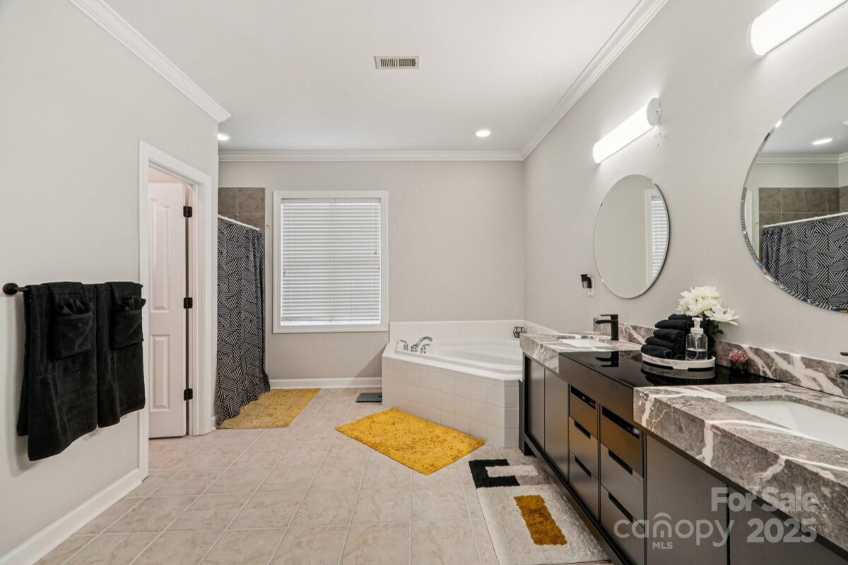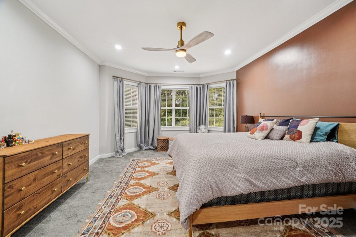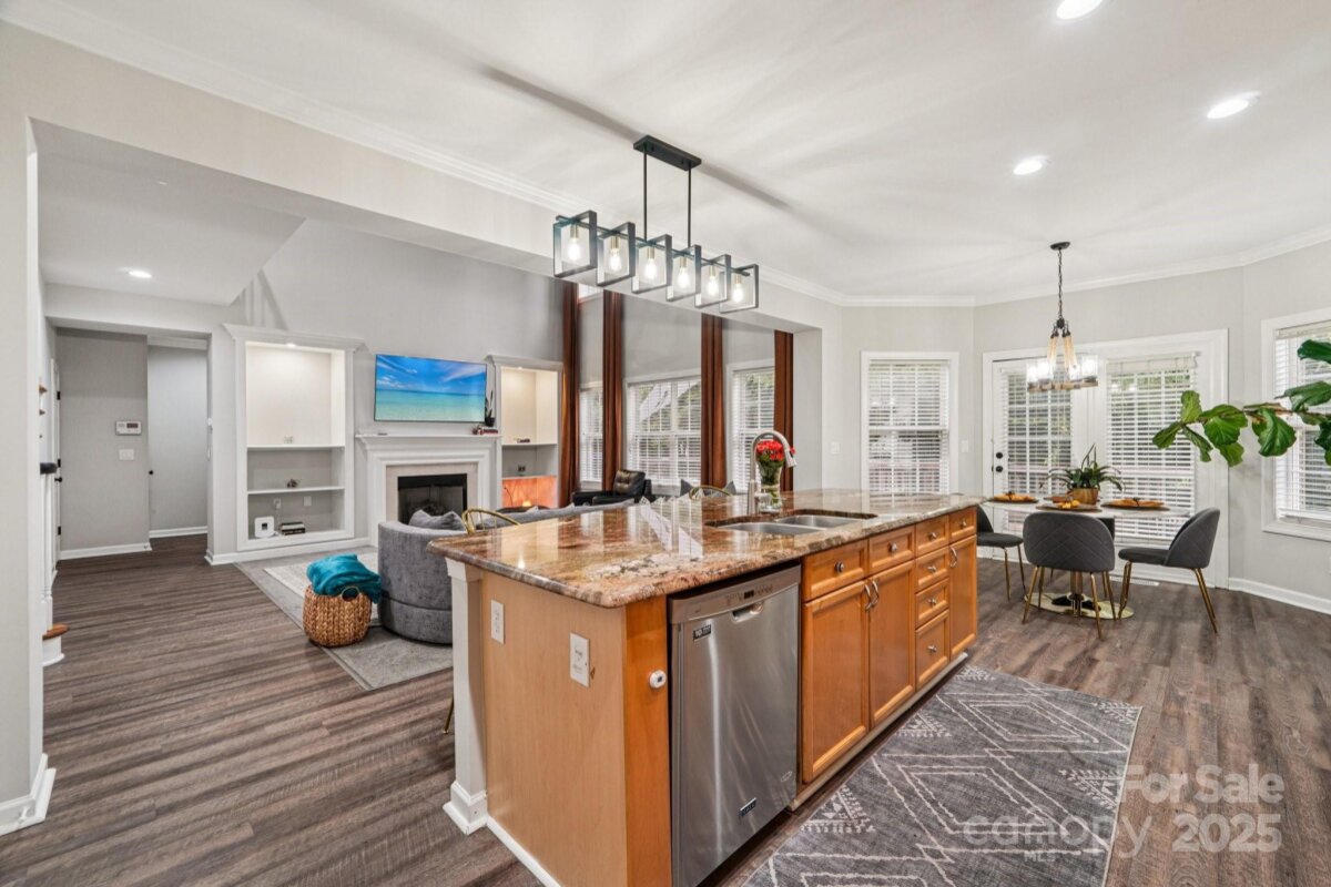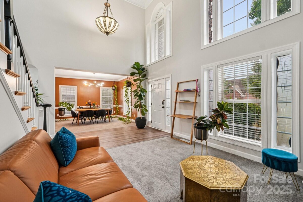 Stunning Full Brick Luxury Home 5 spacious bedrooms and 3 full bathrooms. Welcome to this exceptional full brick residence offering of 3000 sq ft of elegant living space. This home is designed with an open floor plan and soaring ceilings that create a light-filled, inviting atmosphere. The main level showcases a formal living room, formal dining room, and a great room with custombuilt-in bookshelves and a cozy fireplace. Comparable to a chef's kitchen with a breakfast area opens seamlessly to the great room, perfect for entertaining. The main level also includes a guest bedroom with a full bathroom, ideal for visitors or multi-generational living. Upstairs, a catwalk overlooking the entire downstairs living areas, leads to the expansive primary suite with a spa-like en-suite bathroom and generous walk-in closet. Additional bedrooms are spacious and filled with natural light.Outdoor living shines with a huge deck overlooking a beautiful, level backyard complete with a vegetable garden-perfect for relaxation or gatherings. Additional highlights include: Double car garage, Recessede lighting throughout, Tones of windows for natural light and Beautifully landscaped, level lot. Prime location: Convenient access to Starbucks, Trader Joes, Harris Teeter, Walgreens and numerous restaurants. Easy access to I-485 and just minutes from Concord Mills Mall. This home truly combines luxury, comfort and convenience...a MUST SEE!