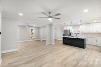 Discover this exquisitely renovated one-story ranch in the heart of charming Matthews! This 3-bedroom, 2-bath home offers over 1,550 square feet of thoughtfully updated living space, featuring a bright, open floor plan designed for modern living. The stunning kitchen is a true centerpiece, boasting brand-new cabinetry with soft-close doors and drawers, a center island with seating for barstools, a cooktop with downdraft and pendant lighting! Quartz countertops, stainless steel appliances, new refrigerator and a convenient wall oven/microwave combo—all seamlessly open to the family room, breakfast nook, and living area. Terrific master bath featuring a ceramic tile shower with a rain shower head, plus a brand-new vanity and sink for a fresh, modern feel. Every upgrade has been thoughtfully done: new luxury vinyl plank flooring throughout, recessed lighting, updated light and plumbing fixtures, new interior doors and hardware, and ceiling fans in every bedroom. The expansive new back deck is perfect for sipping your morning coffee and overlooking a fully fenced backyard—perfect for relaxing and entertaining! This property offers ample space to add a 2-car detached garage if desired! Move-in ready, beautifully upgraded, and full of charm—this Matthews gem is a must-see!