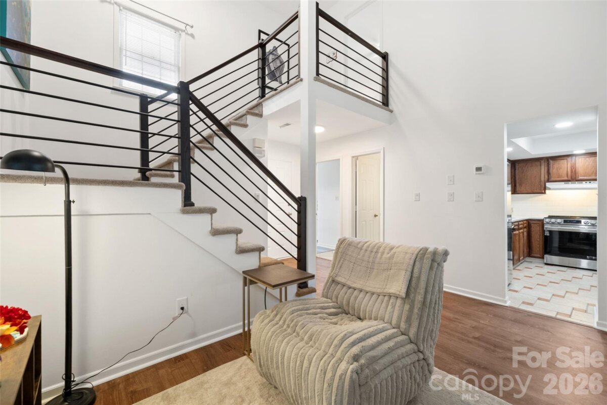 Low HOA fees! Come see this beautifully updated 2-bedroom, 2-bath townhome in a prime South Charlotte location. Ideally situated between Pineville-Matthews Road and Carmel Road, this home is just minutes from The Bowl at Ballantyne, Stonecrest, The Arboretum, and an excellent selection of dining, shopping, and everyday conveniences. The townhome offers an open floor plan with generous living space and a comfortable, welcoming feel. Enjoy morning coffee on the charming front porch, then unwind in the evening on the spacious back porch—a peaceful outdoor retreat surrounded by mature trees and natural privacy. Seller is relocating out of state. The home was intended as a longer-term residence, but a change in circumstances prompted an earlier move. Since purchasing the home in June, the seller has made numerous thoughtful upgrades and improvements, including a full exterior pressure wash of the home and sidewalks, refreshed landscaping with removal of overgrown plantings for a cleaner, low-maintenance design, and a fully updated kitchen featuring new quartz countertops, a pleasant designer backsplash, and high-end Samsung appliances. The entire interior has been freshly painted, ceiling fans have been added to every room, and the kitchen lighting has been upgraded. Additional improvements include electrical updates throughout completed by a licensed electrician (including outlet upgrades), professionally cleaned carpets on the stairs and upstairs bedroom, new bedroom windows installed approximately 2–3 months ago, and a refreshed backyard for improved usability. This move-in-ready townhome offers comfort, style, and location—an excellent opportunity that should be seen ASAP.