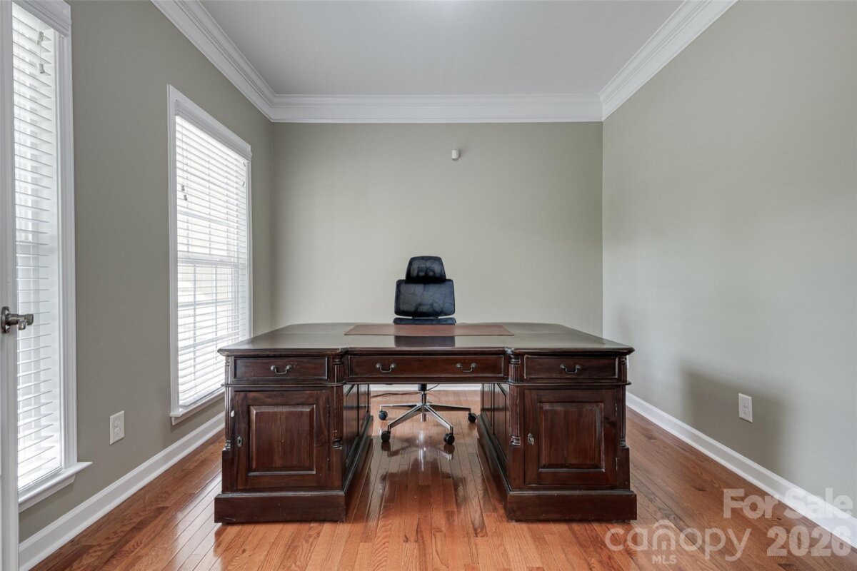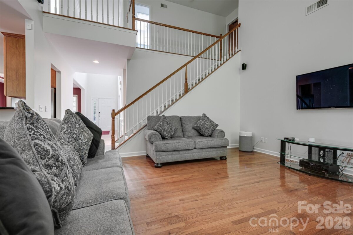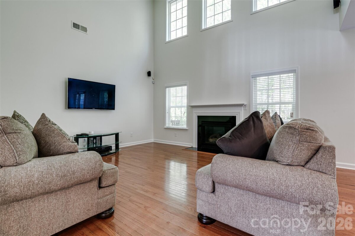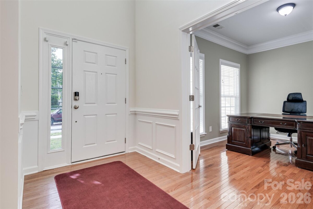 Meticulously maintained 4-bedroom, 2.5-bath home offering nearly 3,000 sq ft of thoughtfully designed living space, including a second-floor media/bonus room. The main level features a private office with glass doors, a spacious dining room, and an open-concept kitchen with granite countertops, ample storage, and a bright breakfast area overlooking the two-story great room. Enjoy abundant natural light and a cozy gas fireplace. The main-level primary suite offers a spacious retreat with brand-new flooring, a beautifully updated en-suite bath featuring dual vanities, a new walk-in shower, soaking tub, and a large walk-in closet. Upstairs includes a generous bonus room, three sizable secondary bedrooms, and a full bath. The speakers and projector in the media room convey. Outdoor living shines with a screened-in porch and deck—perfect for entertaining and grilling—overlooking a well-maintained backyard. Additional highlights include: freshly painted interior, brand new flooring, a newer roof, water heater replaced in 2024, and a two-car garage equipped with an electric vehicle charger. Community amenities include a pool, walking trails, playground, and convenient access to nearby shopping.