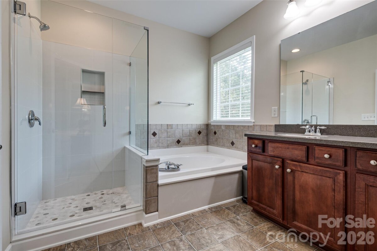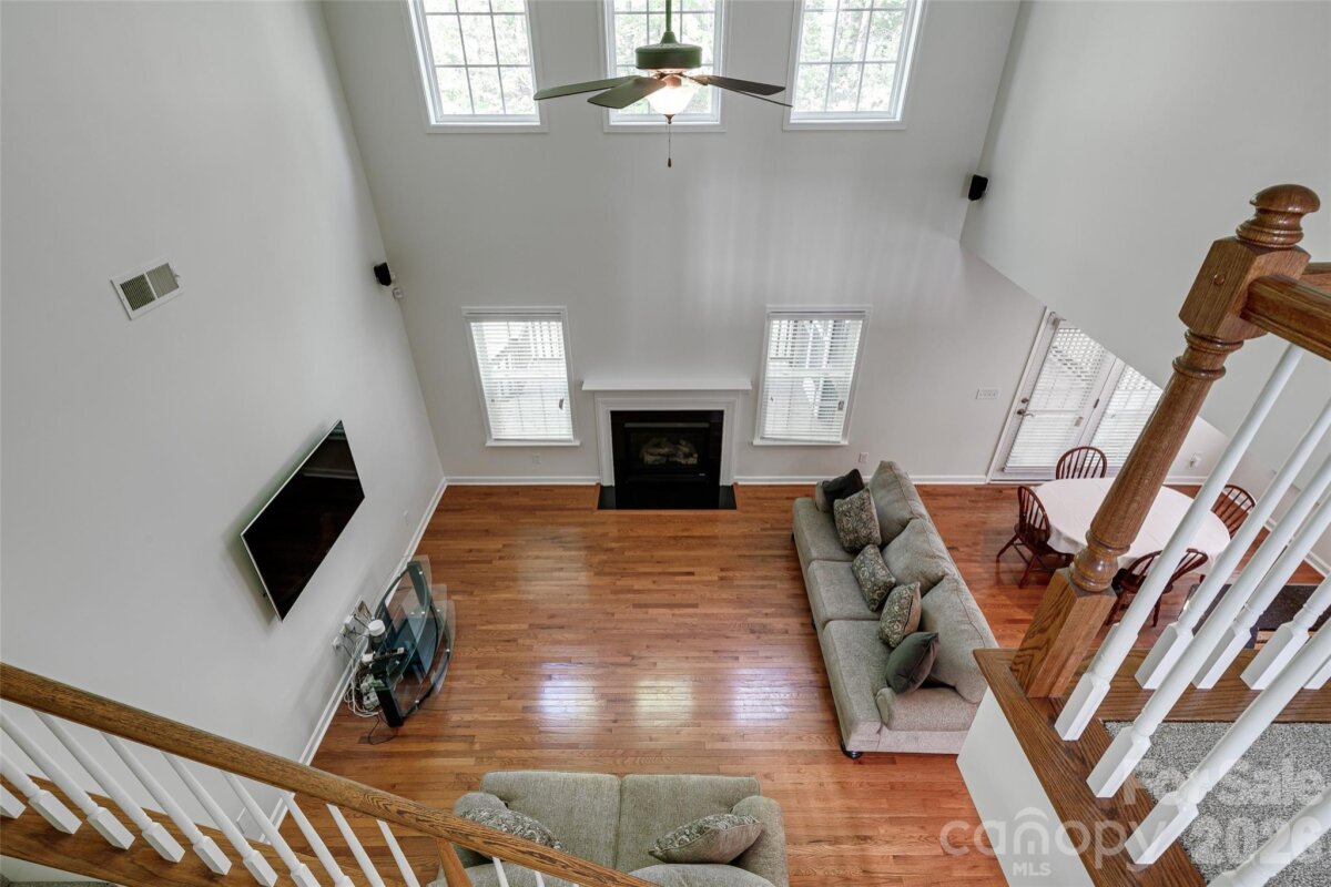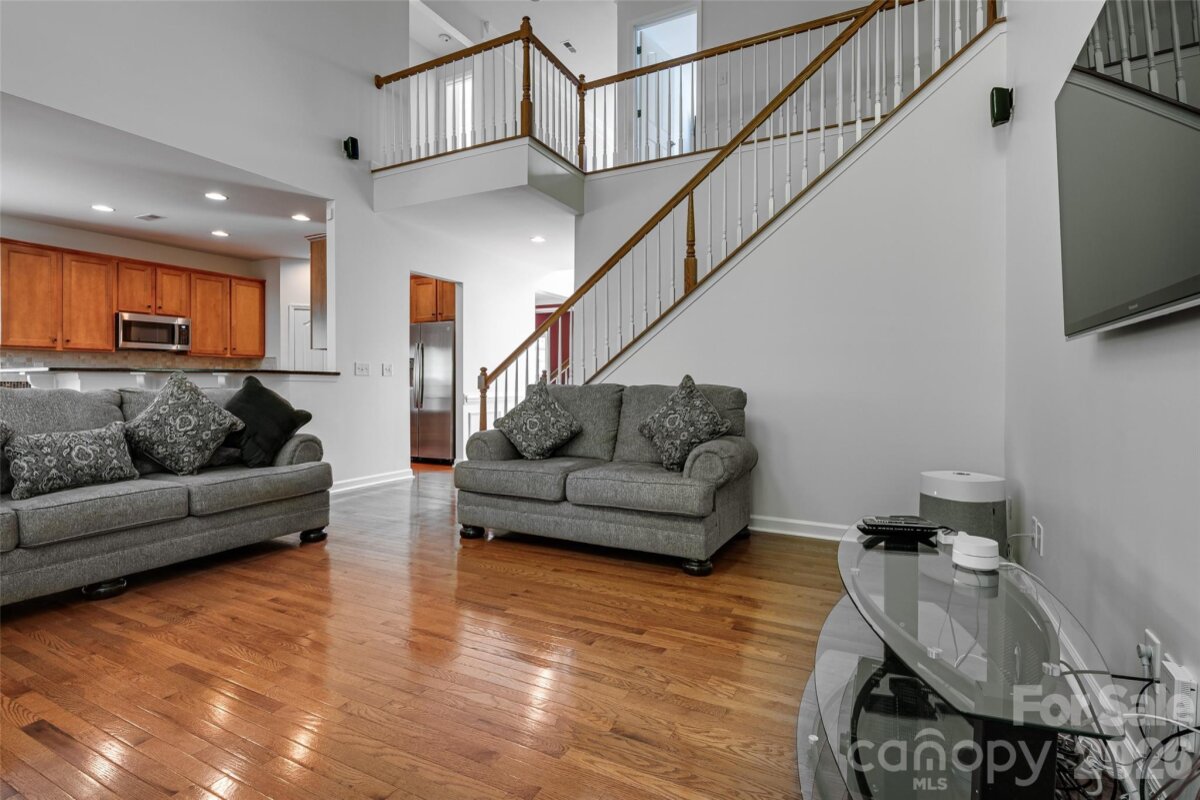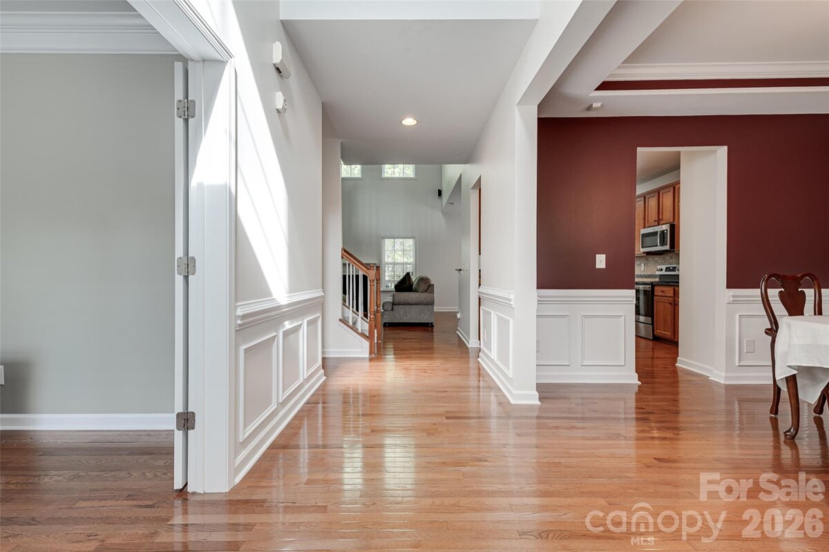 Meticulously maintained 4-bedroom, 2.5-bath home offering nearly 3,000 sq ft of thoughtfully designed living space, including a second-floor media/bonus room. The main level features a private office with glass doors, a spacious dining room, and an open-concept kitchen with granite countertops, ample storage, and a bright breakfast area overlooking the two-story great room. Enjoy abundant natural light and a cozy gas fireplace. The main-level primary suite offers a spacious retreat with brand-new flooring, a beautifully updated en-suite bath featuring dual vanities, a new walk-in shower, soaking tub, and a large walk-in closet. Upstairs includes a generous bonus room, three sizable secondary bedrooms, and a full bath. The speakers and projector in the media room convey. Outdoor living shines with a screened-in porch and deck—perfect for entertaining and grilling—overlooking a well-maintained backyard. Additional highlights include: freshly painted interior, brand new flooring, a newer roof, water heater replaced in 2024, and a two-car garage equipped with an electric vehicle charger. Community amenities include a pool, walking trails, playground, and convenient access to nearby shopping.