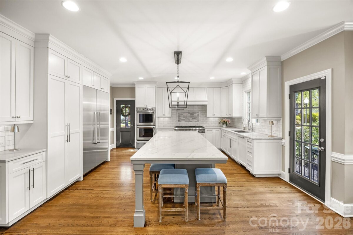 Discover the epitome of luxury in this exquisitely updated 5-bedroom home, with an office and bonus room, nestled in the prestigious Providence Country Club. Every detail has been meticulously curated to create a residence that exudes sophistication and comfort. At the heart of the home lies a chef’s paradise: an expansive gourmet kitchen appointed with state-of-the-art Thermador appliances, a full-height SubZero wine refrigerator, and both full-size refrigerator and freezer units. Perfect for entertaining, this culinary haven flows effortlessly into the warm and inviting great room, adorned with a cozy fireplace and elegantly updated lighting. A chic bar area, complete with a second full-size SubZero wine refrigerator, elevates your hosting experience. Step outside to your private sanctuary—a covered patio featuring an outdoor fireplace, ideal for intimate evenings or lively gatherings with loved ones. The main-floor primary suite serves as a tranquil retreat, showcasing rich wood floors, dual walk-in closets, and a beautifully reimagined en-suite bath. For those who work from home, the private office overlooking the front yard provides the perfect blend of productivity and serenity. Upstairs, four generously proportioned bedrooms, a bonus room, and two fully renovated bathrooms offer abundant space for family and guests alike. With its timeless elegance, modern upgrades, new roof (2025), and fresh carpeting in the bedrooms, this home is a masterpiece of style and functionality. Welcome to a lifestyle of unparalleled comfort and grace. Note- Seller cannot move out before June 22nd. Dyson in garage and security equipment do not convey.