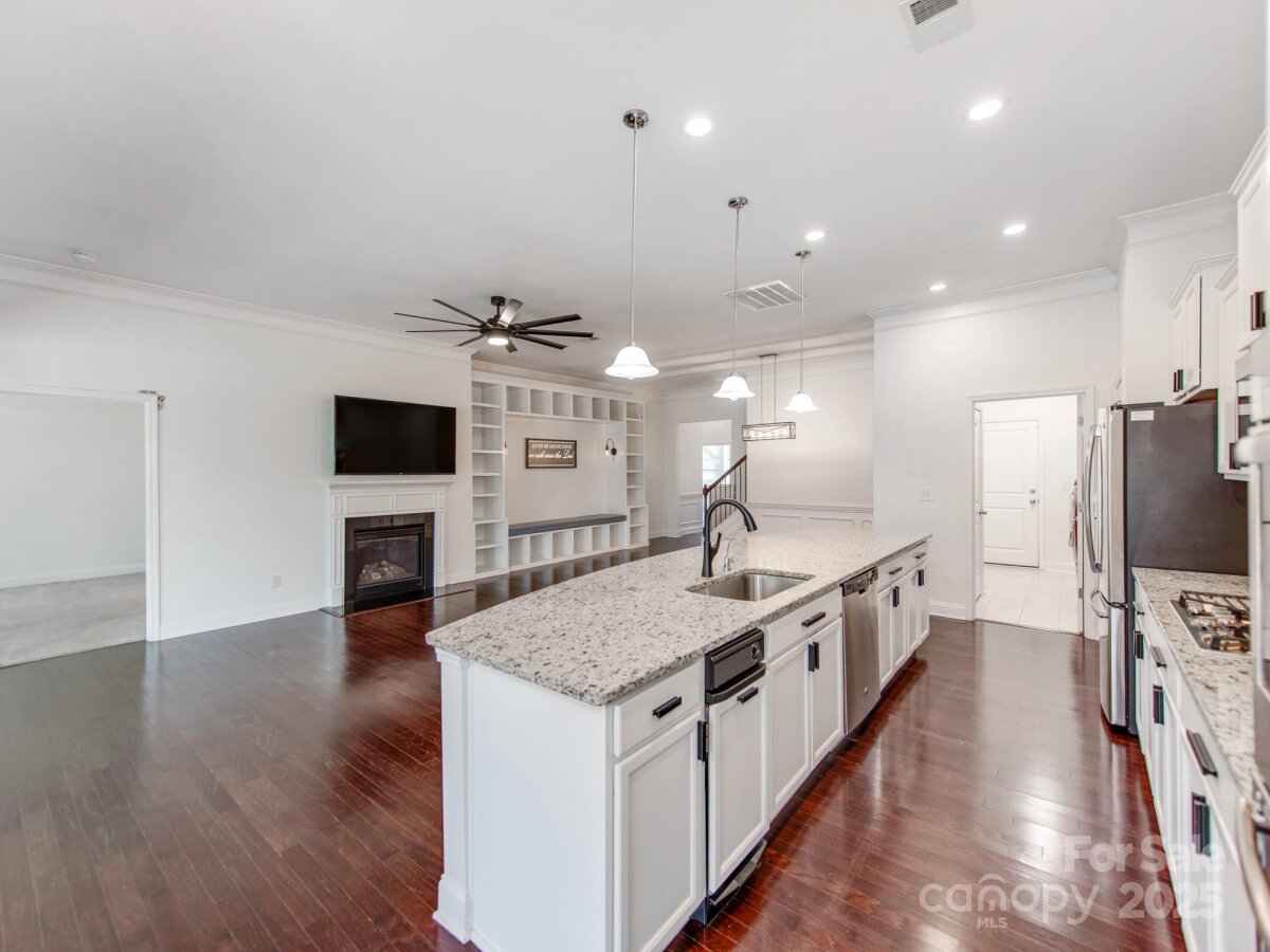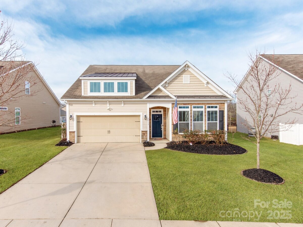 This beautiful 1.5 story home has 4bds 3 bths and is located in one of the most sought-after neighborhoods of Lake Wylie/ Clover and is also in the Newest state-of-the-art Clover School Districts! This home blends luxury and convenience with thoughtful design throughout including tall 10ft+ Ceilings, fenced in backyard with covered back porch and extended concrete patio overlooking private wooded setting, and too many upgrades throughout to count. Inside, the show-stopping 14-foot kitchen island anchors a true Chef’s Kitchen overlooking the large living room with many details including custom built-ins! The open-concept main level features soaring 10+ foot ceilings and generously sized rooms that create an airy, inviting atmosphere. The primary suite and 2 other bedrooms are conveniently located on the main floor for ease and comfort. The upstairs includes a spacious bedroom suite that can function as a second living quarters, guest suite, bonus room, or officet. Residents enjoy excellent accessibility to Charlotte, offering an easy commute and close proximity to top restaurants and everyday conveniences. Nearby Marinas and Lake amenities make weekend adventures effortless. The neighborhood offers an active, involved social community where you can be as connected—or as private—as you choose!