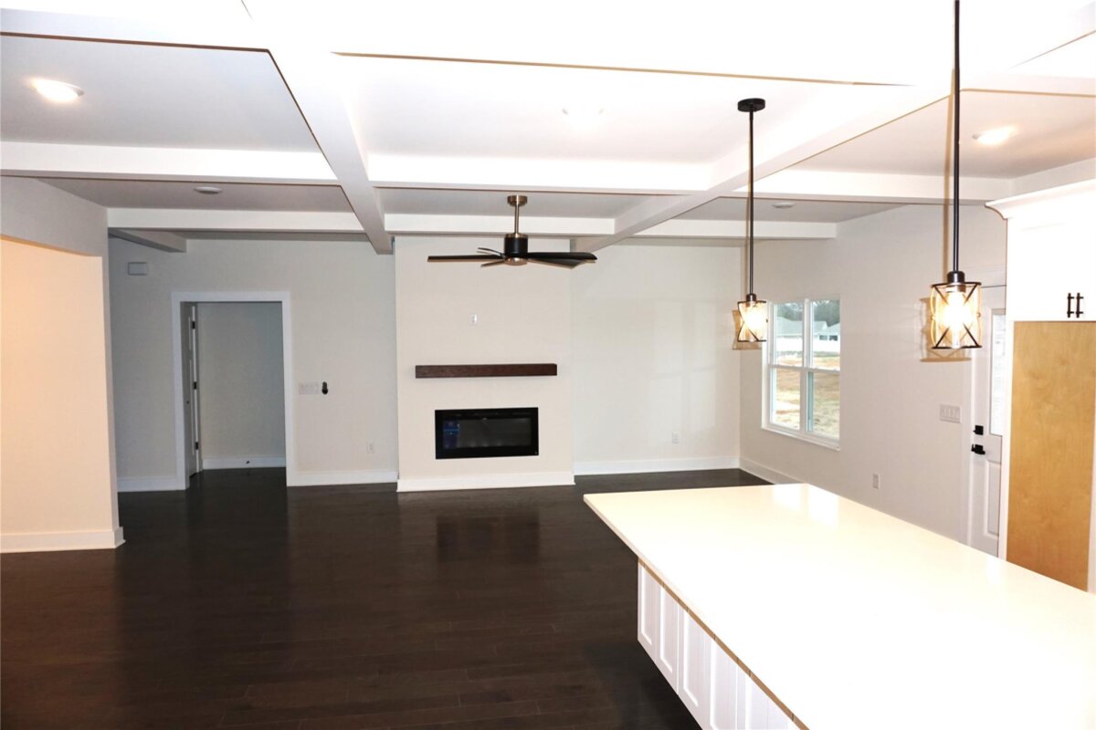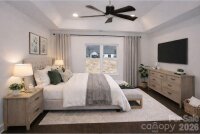 Experience refined living in this custom new construction home, perfectly positioned on a private half-acre homesite. Designed with sophistication and functionality in mind, this residence showcases quality craftsmanship, upscale finishes, and thoughtful architectural details throughout. Coffered ceilings define the main living area, creating an expansive yet inviting space ideal for both elegant entertaining and everyday comfort. The open-concept layout flows effortlessly into a beautifully appointed kitchen featuring soft-close cabinetry, quartz countertops, and rich real hardwood floors—blending timeless design with modern convenience. The upper-level bonus suite with a full bath offers exceptional flexibility, ideal as a private guest retreat, executive home office, media lounge, or multi-generational living space. Practical luxury continues with a main-level laundry room designed for everyday ease. Step outside to an impressive 400-square-foot patio, perfect for grilling, entertaining, and enjoying outdoor living year-round. With low HOA fees, a generous homesite, and the benefits of brand-new construction, this home delivers a rare combination of privacy, craftsmanship, and understated luxury.