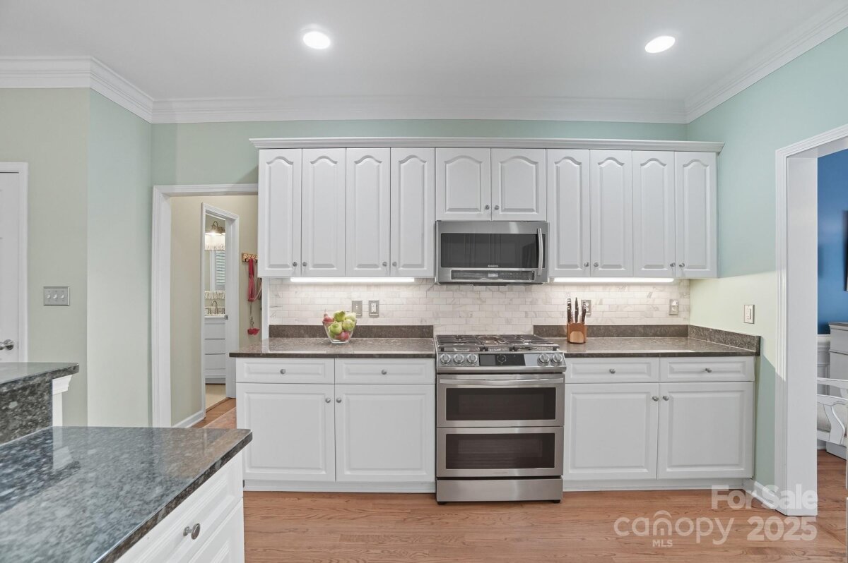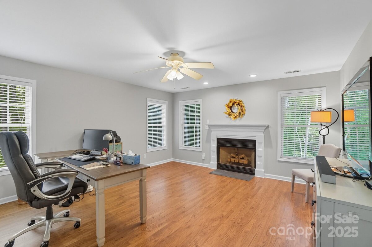 Discover this well-maintained and immaculate home in the coveted Water Trace neighborhood. Perfectly positioned on a peaceful cul-de-sac street and backing to serene woods, this property offers exceptional privacy with unbeatable conveniences. You'll enjoy the tranquil setting yet just minutes from premier shopping, dining, schools, fitness centers, and quick I-77 access for easy commuting. Abundant windows bathe the open-concept layout with natural light throughout. Upon entry, you're welcomed by an impressive formal dining room that sets the tone for gracious entertaining. The heart of the home showcases a chef-inspired kitchen with crisp white cabinetry, granite countertops, convenient breakfast bar, spacious pantry, stainless steel appliances, 5-burner gas range, and countless thoughtful details! A generously sized laundry/mudroom combination on the main level off the garage includes a utility sink for added convenience. This home boasts not one, but two beautiful gas log fireplaces—one on each level—creating warm, inviting spaces throughout. The upper level houses all four bedrooms, including one generously sized room that easily serves as a home office, family room, or flexible bonus space. Double doors unveil the impressive owner's suite boasting elegant tray ceilings and a private sitting area for ultimate relaxation. Outdoor living shines with a screened porch and expansive deck, both ideal for entertaining and grilling while overlooking a beautifully landscaped, tree-filled fenced backyard. The perfect trifecta: South Carolina's low tax rates, award-winning schools, and NO HOA fees make this home an unbeatable value and lifestyle opportunity!