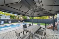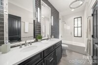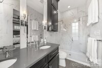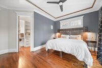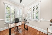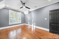 Southern charm, low maintenance, a heated pool, and a fully self-contained apartment — this 4-bedroom, 3.5-bath home in Belmont, Charlotte NC makes a statement from the moment you arrive and keeps delivering. With 2,618 square feet of custom design, a dedicated office, and a 2-car garage, it's walkable to Midwood dining and the Lynx light rail. The main level opens through a striking wrought iron front door onto beautiful oak hardwood floors. The kitchen delivers: premium GE Monogram appliances, gas range, custom brick backsplash, dry bar with beverage fridge, and a quartz island that seats 8–10. The living room with gas fireplace opens directly to the pool area. Main-level primary suite walks out to the pool with a king bed and custom headboard, built-in closet, dedicated makeup vanity, and a spa-caliber bath with custom mirrors and tile. Office, laundry, and powder room complete the ground floor. Outside: 12×25 heated pool finished in 2023, large pool deck, gas grill hookup, firepit hookup, and Ultra Aluminum privacy fencing needs no maintenance. Front irrigation and triple-wide driveway. Upstairs, 2 bedrooms share a full bath, each with oversized walk-in storage and city views. The 700 sq ft attached apartment has its own private entrance, full kitchen, bedroom, full bath, living area, and washer/dryer — ideal as a rental, in-law suite, multigenerational living space, or second primary suite. An interior door connects it to the main house and can be locked or open. Solid throughout: 3-zone HVAC with a dedicated apartment zone, tankless water heater, full CPI security system, wrought iron interior staircase, and extra-deep 2-car garage with sink. Washer/dryer new in 2024. Exterior fully painted in 2021. Move-in ready.