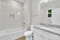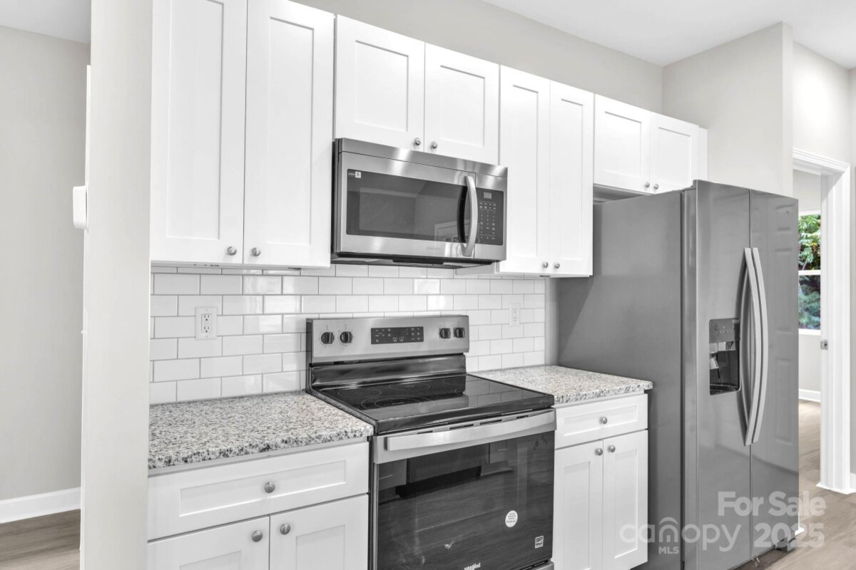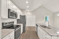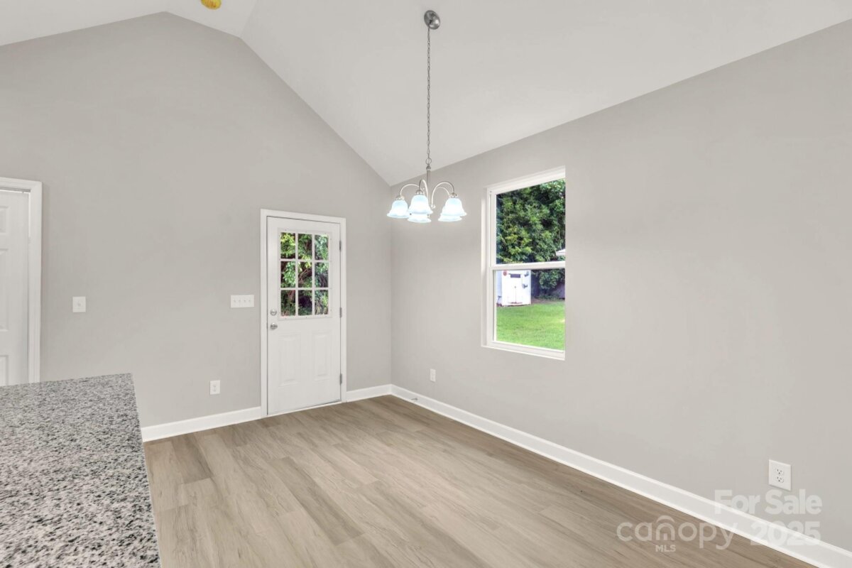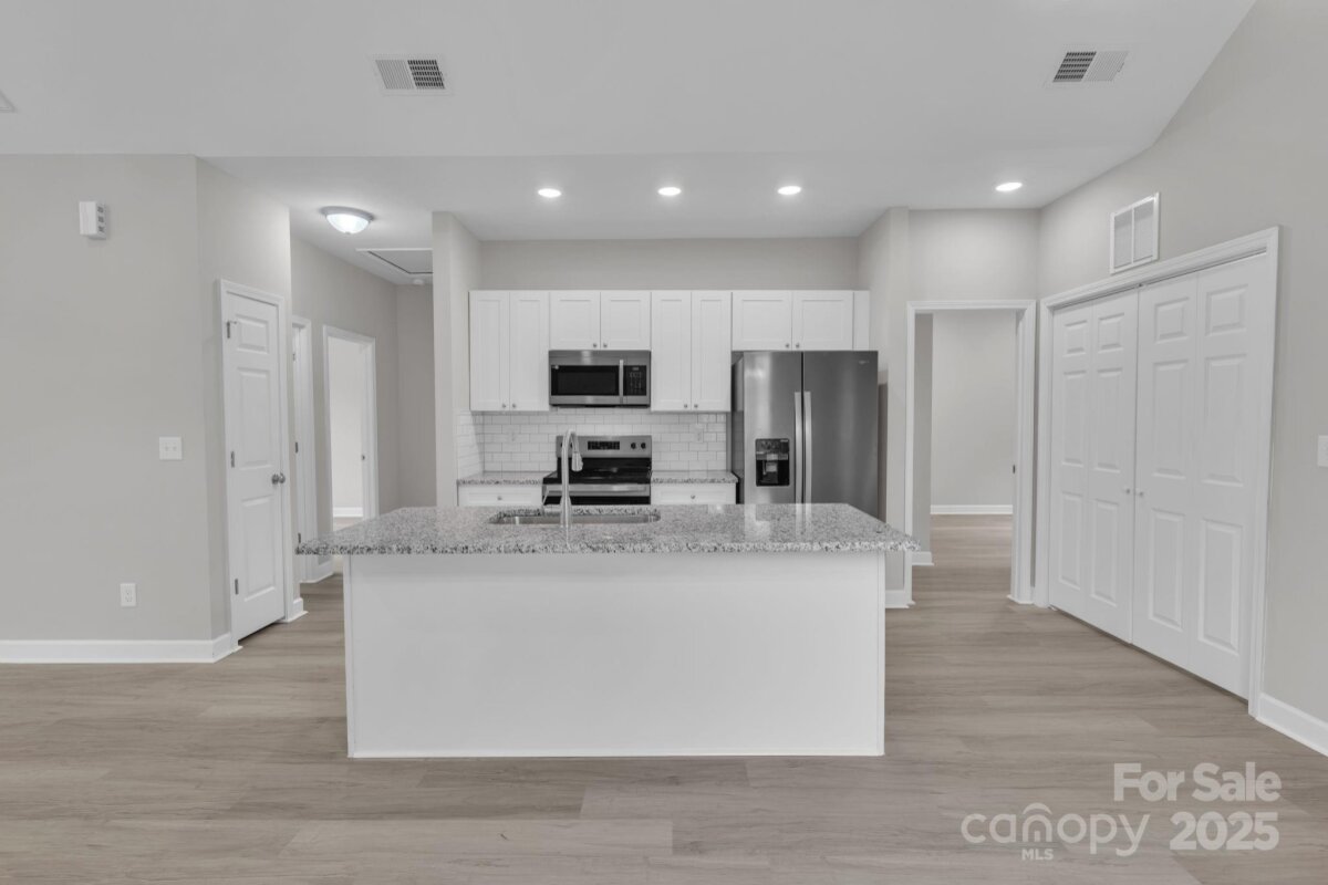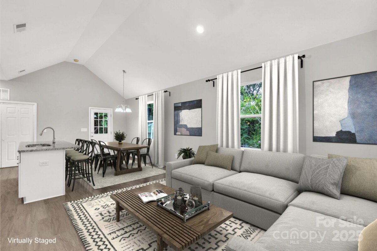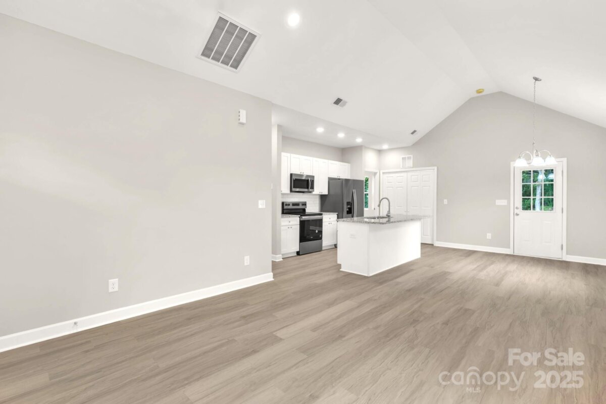 This picture perfect new construction ranch features an open flowing floorplan w/ tall cathedral ceilings, luxury vinyl plank flooring thruout & beautiful upgrades hard to find at this price including full fiber cement exterior siding! No HOA! The bright kitchen has an island w/ seating, granite ctrs, pantry, soft close cabinets & stainless appls including microwave, range, dishwasher & fridge. The living rm features a ceiling fan, cathedral ceiling & opens to the dining area & kitchen allowing ease in entertaining & furniture options! The dining area is large & could also double as a home office space. No expense was spared in the 2 full baths, both have granite ctrs & fully tiled showers along w/ LVP floors! Don't miss the primary bedroom w/ 2 separate closets, dble door closets in sec bedrms, utility room at rear porch, open backyard plus cozy front porch! Only 1 mile to I-77, 5 miles to I-40, near tons of dining options, cute shops in downtown Statesville & close to parks & rec! You qualify for zero/low down payment assistance or special financing programs!