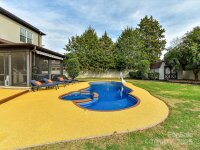 Stunning 3-bedroom, 3-bath home with an oversized two-car garage, pool and spa, and fenced backyard, located in a highly desirable lake-access neighborhood near Langtree. An impressive double-door entry opens to a bright, open floor plan with spacious living areas throughout. The gourmet kitchen features granite countertops, stainless steel appliances including refrigerator to remain, a large island, abundant cabinetry, walk-in pantry, tile backsplash, and dining area. A private main-level office with built-ins and access to a full bath adds flexibility. The expansive primary suite on the main level offers a tray ceiling, crown molding, large walk-in closet with custom shelving, and private bath. Upstairs includes additional bedrooms, a bonus room, and recreation room — both permitted additions. Outdoor living shines with an in-ground, saltwater heated pool and spa, screened porch, and fenced level yard with mature landscaping. Additional highlights include smart home technology and solar panels for energy efficiency. Conveniently located near marinas, shopping, dining, and interstate access, this home offers an ideal Lake Norman lifestyle.