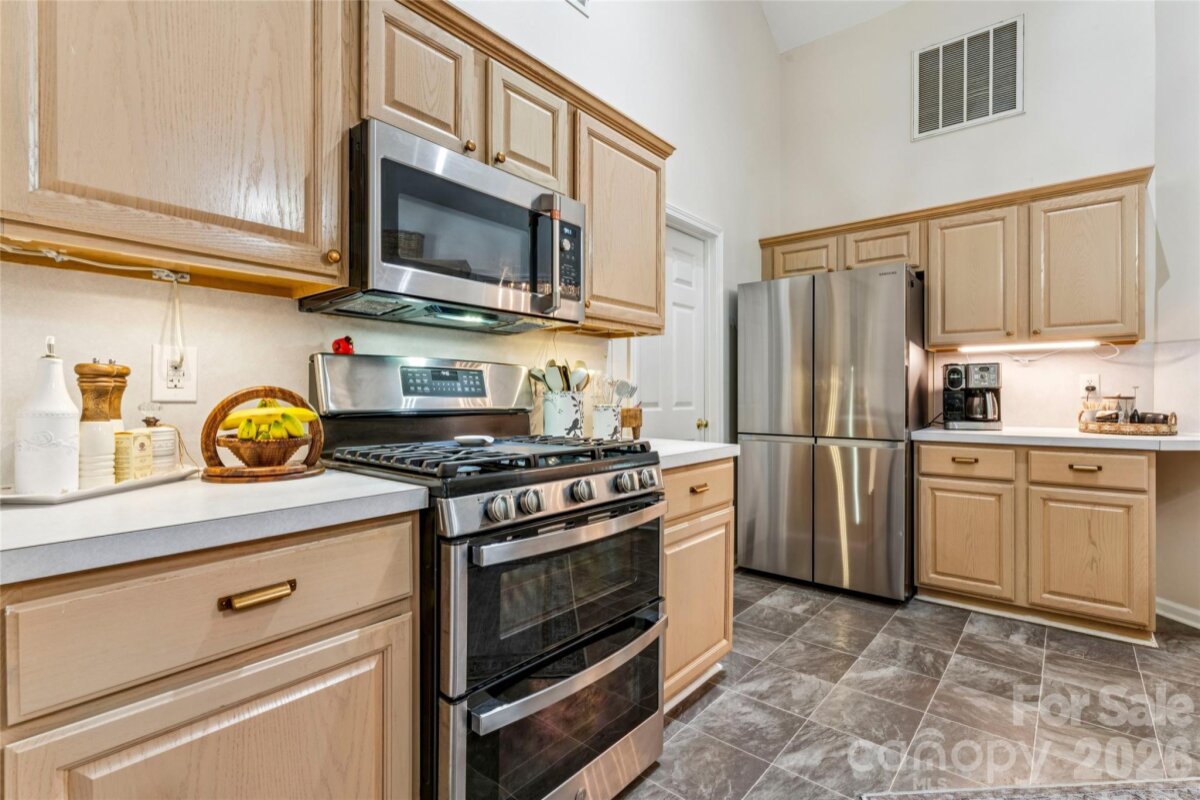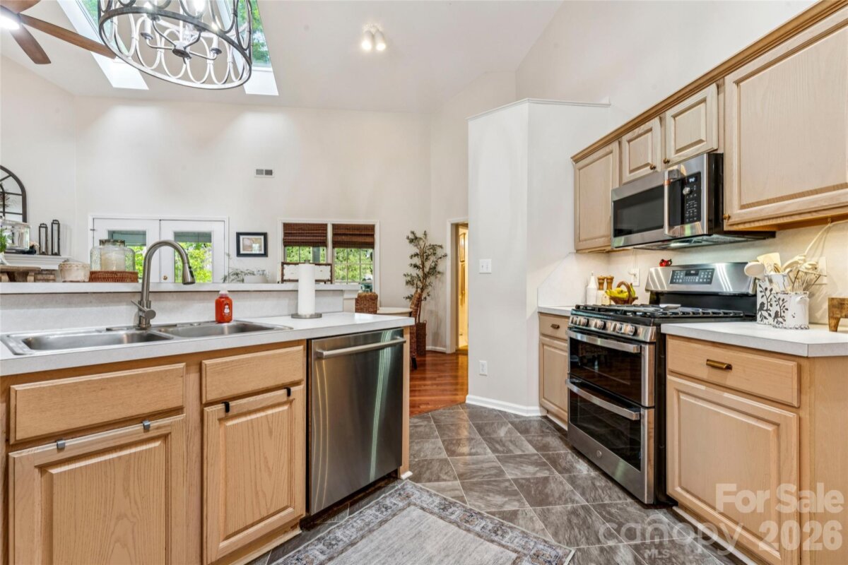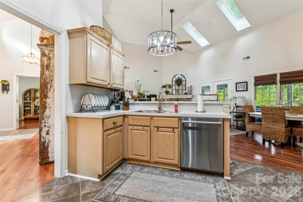 Beautifully updated home in the highly desirable Franklin Grove community! Tucked away on a private cul de sac with a wooded backyard and peaceful pond views. Enjoy relaxing on the screened in porch or the new outdoor sitting area, perfect for quiet mornings or evenings. Property sits on over 1/2 acre! This charming ranch home features beautiful wood floors and the convenience of one level living. Vaulted ceilings and skylights bring in abundant natural light, highlighting the open and functional layout. The kitchen with gas range flows seamlessly into a breakfast bar and dining area, creating an inviting space for everyday living and entertaining. The home offers 3 bedrooms plus a dedicated office. Family room with beautiful gas fireplace. Extensive recent upgrades provide both style and peace of mind, including all new stainless steel appliances in 2024, and a new furnace, AC unit, and tankless water heater in 2025. Additional improvements include a newly fenced backyard, concrete steps leading to the pond, a new garage door, LeafGuard gutter system, removal of popcorn ceilings, and fresh interior paint throughout. Enjoy direct access to Bellingham Park via a charming community footbridge, featuring tennis courts, baseball and softball fields, an exercise circuit, playgrounds, and scenic walking trails. This move in ready home offers the perfect blend of modern updates, natural beauty, and an unbeatable location.
