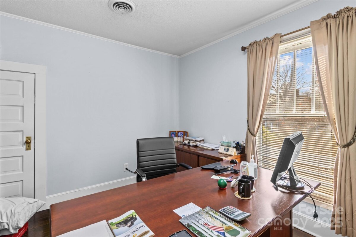 Located just minutes from I-77 and I-40, this prime spot is within walking distance to downtown Statesville, pickleball courts, shopping, restaurants, businesses, and more. The property offers about 3,000 heated sq ft plus roughly 500 sq ft of finished but unheated space, making it incredibly versatile for retail, office, personal residence, or other uses. Inside, you’ll find 3-5 spacious offices or if used for residential purposes, 3 bedrooms, two kitchens, and 1.5 baths on the main level, along with 4 bedrooms/offices and a half bath upstairs. The main office area is leased year-to-year, with tenants open to staying or moving when the lease ends on March 31, 2026. A separate apartment/Airbnb adds strong income potential in this high-demand area, with its own alarm code and heat/air system, separate from the office space. HVAC systems and roof are approximately 2 years old. Parking is plentiful with spaces in the back and paved spots out front. Some exterior TLC is needed, and the price reflects that. This property would make a great residential home, with income potential from the attached apartment! Currently used as a business and Zoned 0-1.