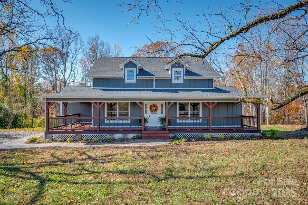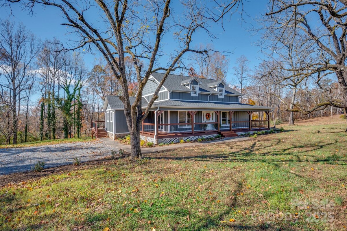 Welcome to this beautifully updated and totally remodeled (just like brand new) modern farmhouse tucked along the quiet countryside of Rutherfordton. From the moment you arrive, you’ll be captivated by the charm of the covered wraparound porch, the rich cedar-tone finishes, and the crisp contrast of dark board-and-batten siding with bright white trim. Step inside to discover a bright, open floor plan featuring gleaming hardwood floors, fresh neutral paint, and custom updates throughout. The kitchen is a showstopper with white shaker cabinets, granite countertops, stainless steel appliances, and an island perfect for meal prep or gathering with friends and family. A convenient butler’s counter along the side hallway provides additional storage and serving space. Both bathrooms are elegantly remodeled with modern fixtures, tile flooring, and granite vanities—the primary bath offering a spacious double-sink layout. Full unfinished basement with single garage allows for many options. Relax outdoors on your expansive, freshly stained wraparound deck and porch—complete with a gorgeous tongue-and-groove wood ceiling that glows in natural light. The setting provides plenty of space for rocking chairs, entertaining, or simply enjoying the peace of the surrounding nature. Nestled on a large 2.7 acre lot with mature walnut trees, this property offers privacy and a serene country feel, yet it’s conveniently close to downtown Rutherfordton, Lake Lure, and local shops and schools.