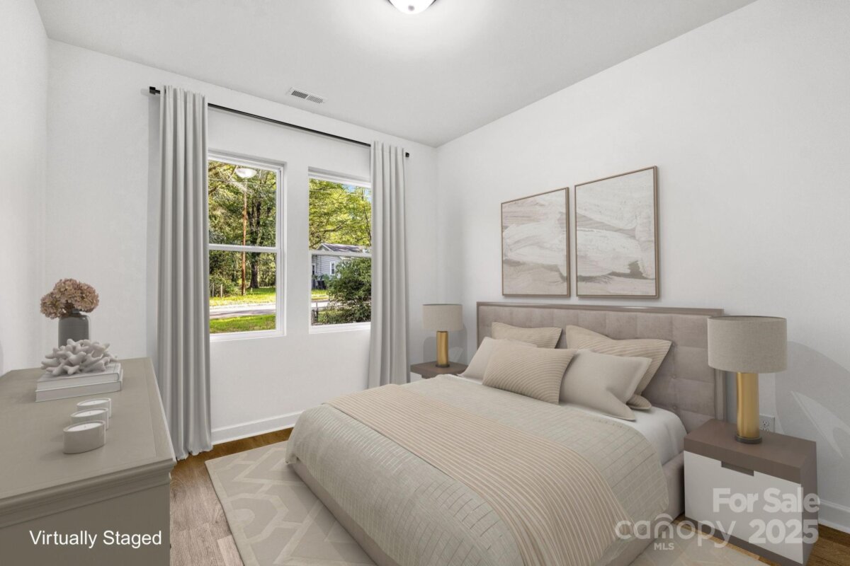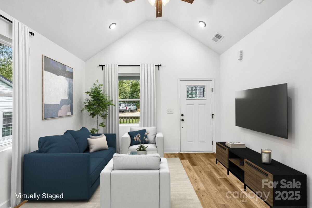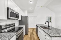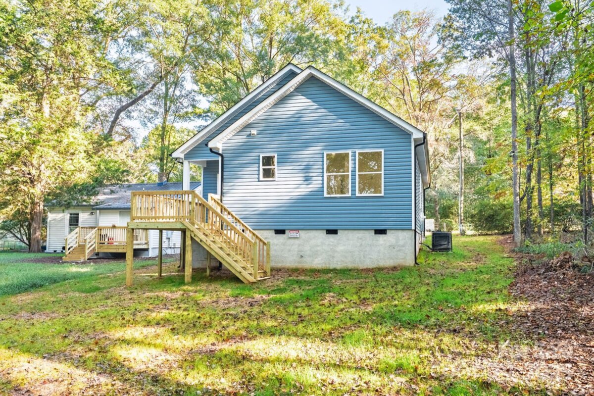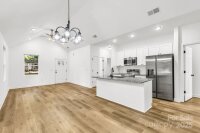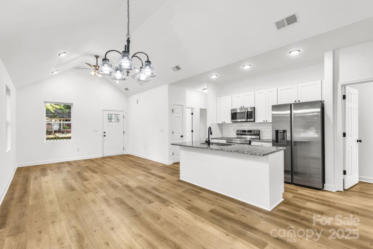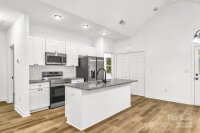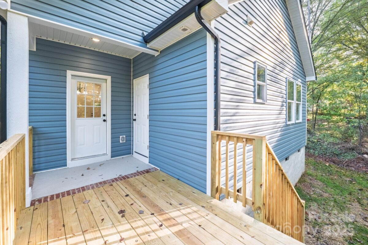 Adorable new construction ranch on a large 1/4 acre cleared lot with large deck plus front porch and no HOA! Features an open flowing floorplan w/ tall cathedral ceilings, luxury vinyl plank flooring thruout & beautiful upgrades. You're greeted by a cute front porch welcoming you into the living rm w/ a neutral design palette that extends to the kitchen & dining area. The kitchen features a wonderful island w/ seating, stainless appliances that include range, microwave, dishwasher and fridge, granite counters, white soft close cabinets & separate pantry - an inviting space for entertaining yet functional for everyday living! The primary has 2 closets and private full bath with tile surround shower & granite counters. The secondary bedrooms are both ample in size and have nice closets & share the hall bath w/ beautiful tile shower & granite vanity. This large lot has a great backyard where you can host guests on the large deck. The home also offers a storage closet, all LVP floors thruout, no HOA and is connected to city water and city sewer. Only 2.5 miles to I-77, 5 miles to I-40, close to shopping, dining, parks & more! You may qualify for zero/low down payment assistance or special financing programs! Call preferred lender for details.