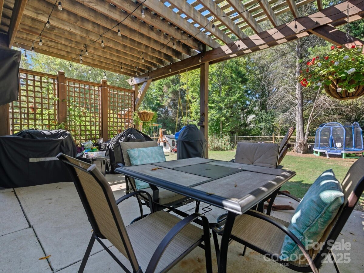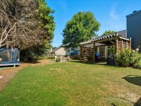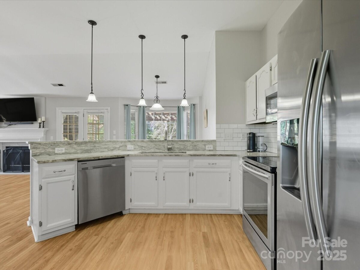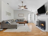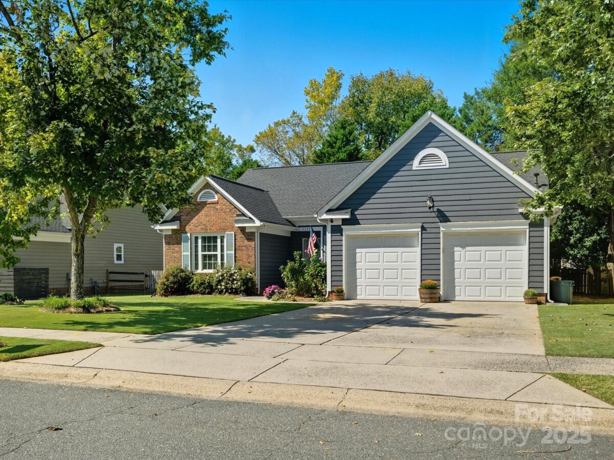 This fabulous ranch home in The Crossings is located on a quiet street and features a vaulted great room with a wood-burning fireplace that seamlessly flows into the kitchen, where you'll find granite countertops, stainless steel appliances, a convenient breakfast bar, a pantry, and plenty of cabinet space, complemented by a charming bay-window breakfast nook. The spacious primary suite is a true retreat, offering a bath with dual vanities, a garden tub, a separate shower, and a generous walk-in closet. The split floor plan provides added privacy, with two generously sized secondary bedrooms. Smooth ceilings and fans are installed throughout. Enjoy the beautiful outdoor space with a private, fenced yard, mature trees, patio arbor/pergola, and a paver firepit area. The community provides a pool, playground, walking trails, and is convenient to shopping, dining, entertainment, and schools.