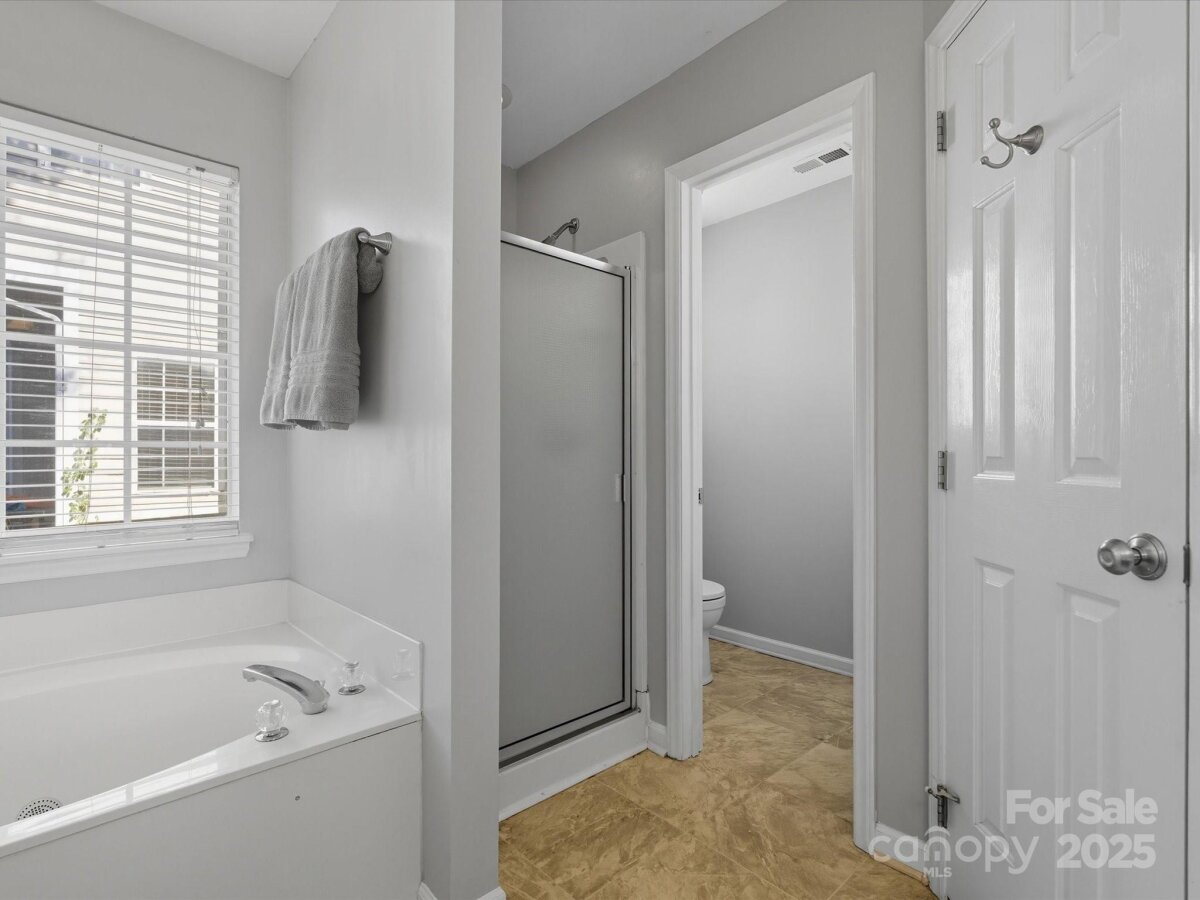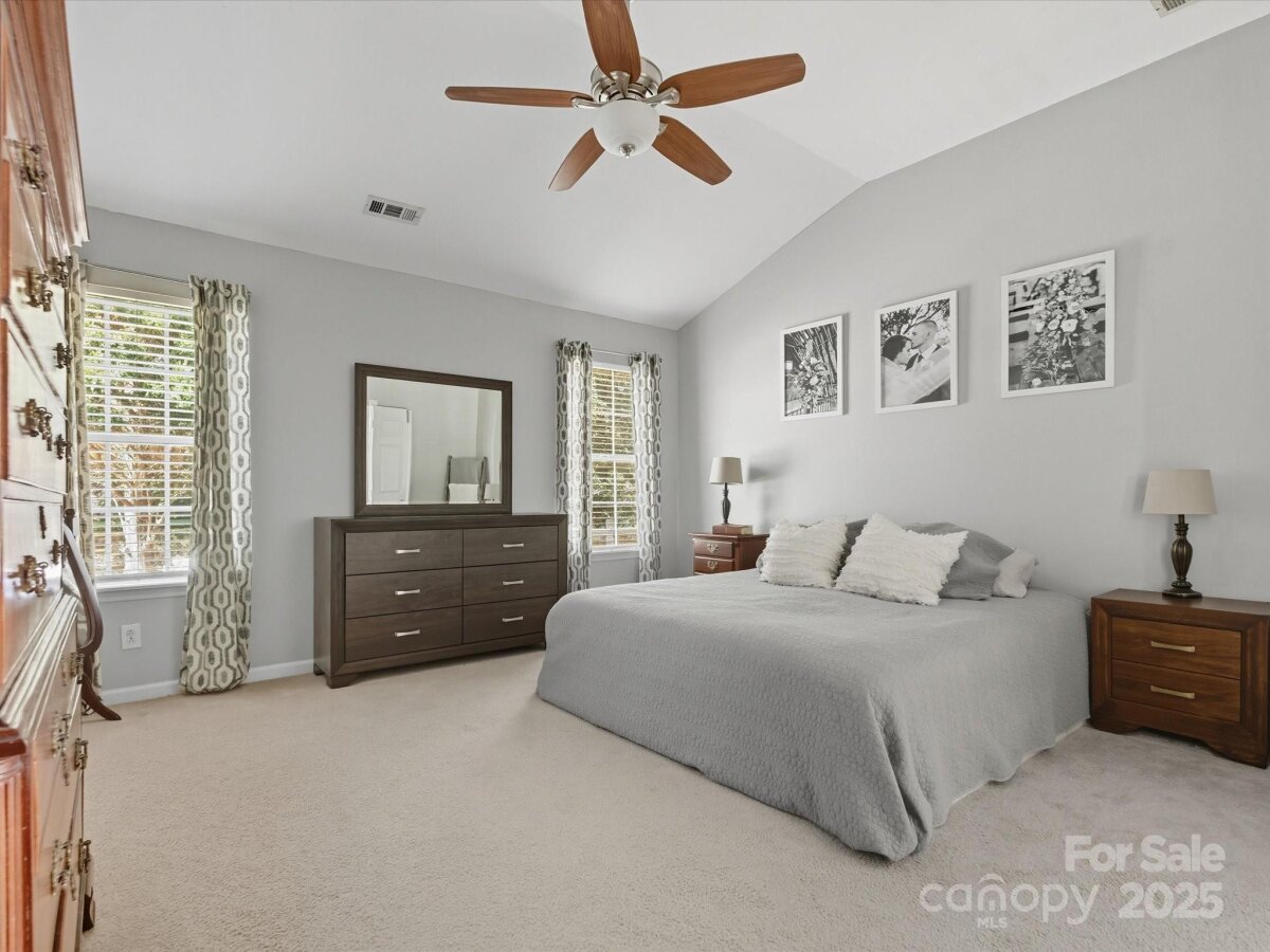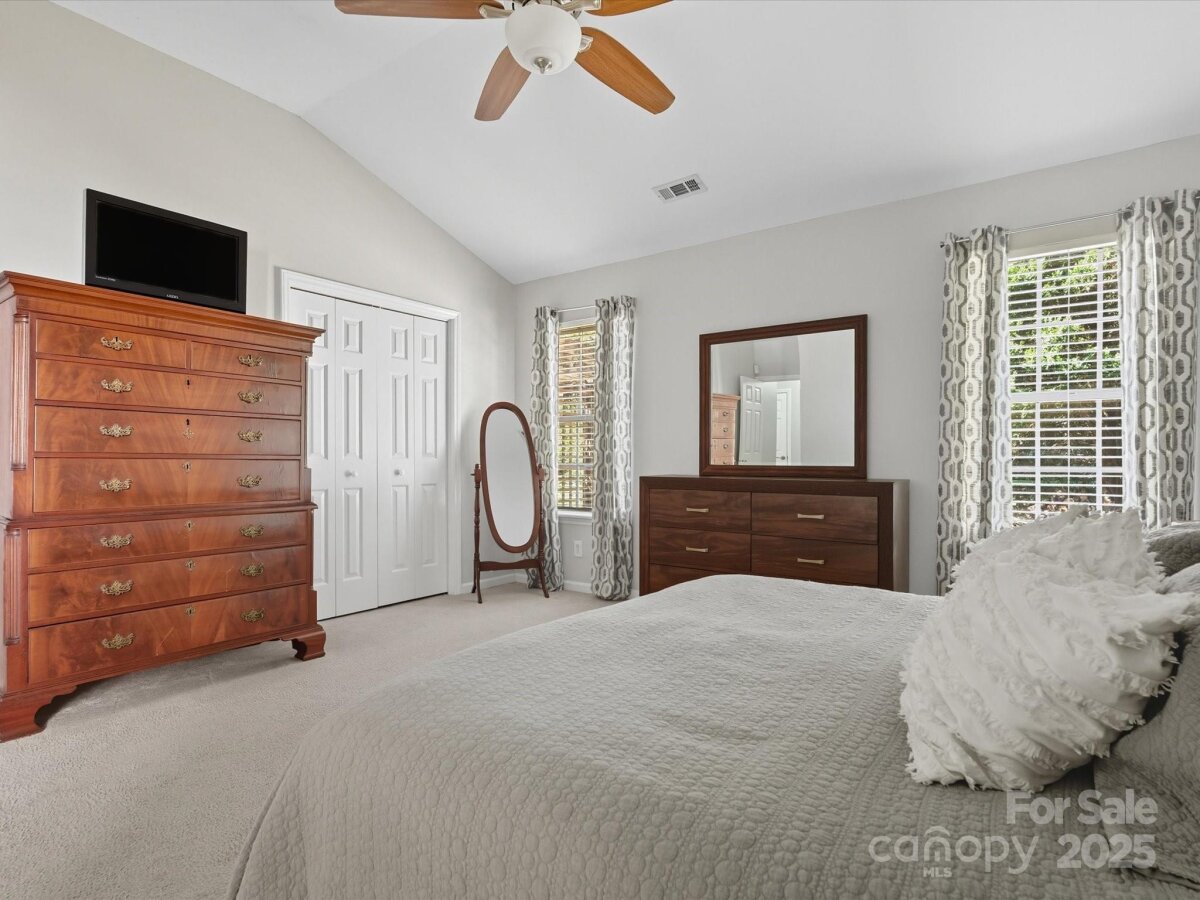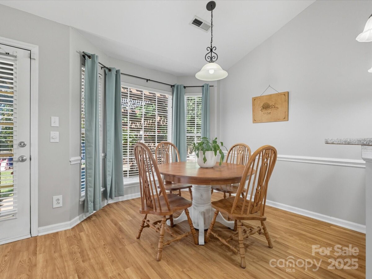 This fabulous ranch home in The Crossings is located on a quiet street and features a vaulted great room with a wood-burning fireplace that seamlessly flows into the kitchen, where you'll find granite countertops, stainless steel appliances, a convenient breakfast bar, a pantry, and plenty of cabinet space, complemented by a charming bay-window breakfast nook. The spacious primary suite is a true retreat, offering a bath with dual vanities, a garden tub, a separate shower, and a generous walk-in closet. The split floor plan provides added privacy, with two generously sized secondary bedrooms. Smooth ceilings and fans are installed throughout. Enjoy the beautiful outdoor space with a private, fenced yard, mature trees, patio arbor/pergola, and a paver firepit area. The community provides a pool, playground, walking trails, and is convenient to shopping, dining, entertainment, and schools.