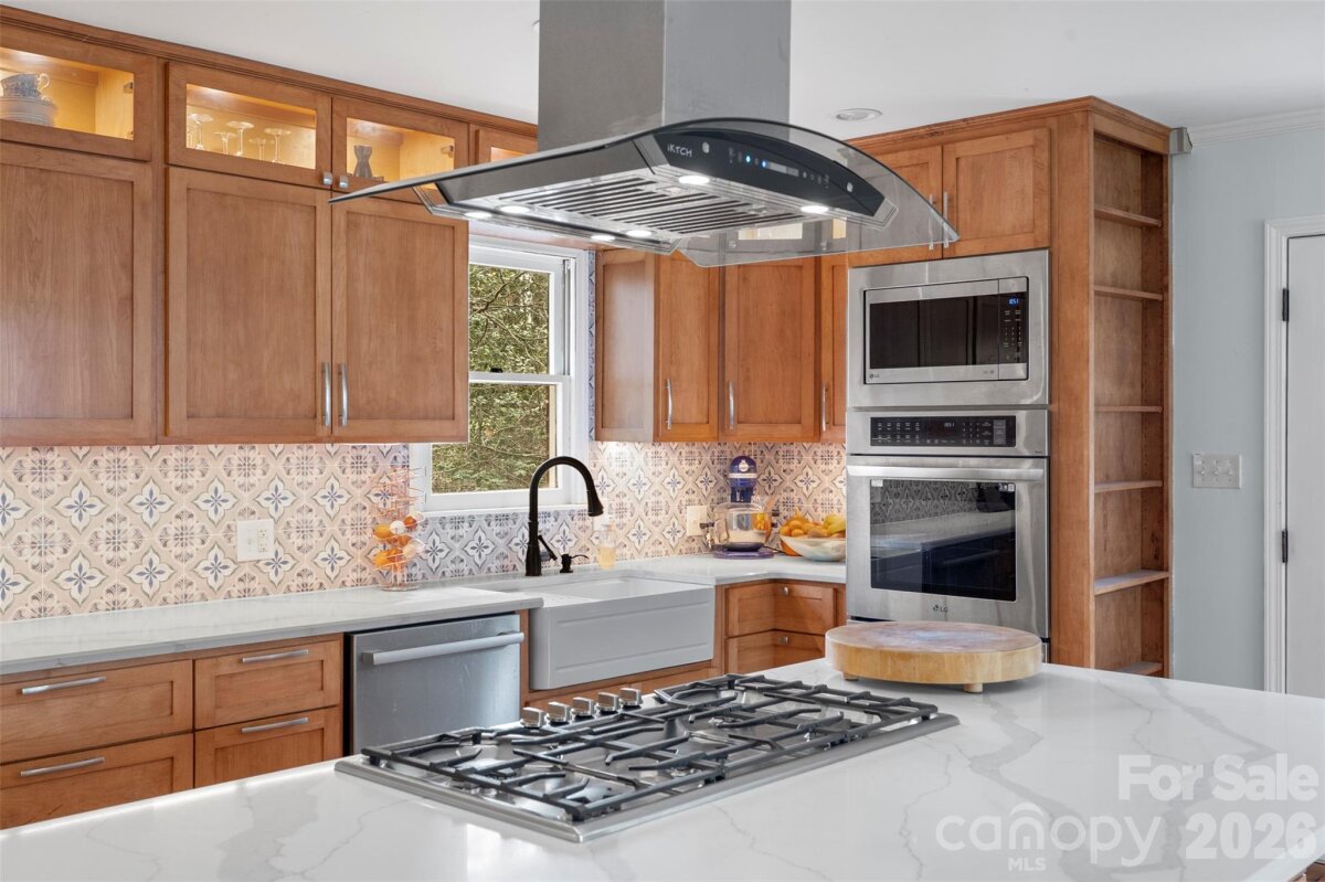 Tucked away on a quiet, cul de sac street, this beautifully updated 3 bedroom, 2 bath brick home offers privacy, flexibility, and no HOA restrictions—all on a level .66 acre, tree-lined corner lot. Step inside to an inviting open-concept living and family room, where bamboo flooring, recessed lighting, and a ceiling fan create a comfortable, easy-flow space that connects seamlessly to the heart of the home—the kitchen. Designed with both style and function in mind, the kitchen features quartz countertops, a breakfast bar with built-in cookbook storage (perfect for passing down family recipes), and eye-catching lighted display cabinetry with upper accent lighting. High-end appliances elevate the space, including an 800 Series Bosch dishwasher, Thermador gas cooktop with exterior-vented range hood, double ovens, and an upgraded microwave—ideal for everyday living or entertaining. This home offers 3 bedrooms and 2 baths, along with thoughtful updates that bring peace of mind, including a newer heat pump and updated ductwork. One of the standout features is the detached two-car garage (added in 2017) with roll-up doors, along with a side porch addition that creates a welcoming secondary entry into the home. Fruit trees on property that include 4 apple treees, plus plum and peach trees. There are two, one of each (a plum and a peach), and 4 blueberry bushes that produce. Enjoy the serenity of your private lot while still being conveniently located—just: 20 minutes to Lake Wylie, 20 minutes to Belmont's shopping and dining, 20 minutes to Steel Creek. Dept of DHEC was unable to locate any septic tank records for 1122 Pine Knot Ct. Their records did not go that far back.