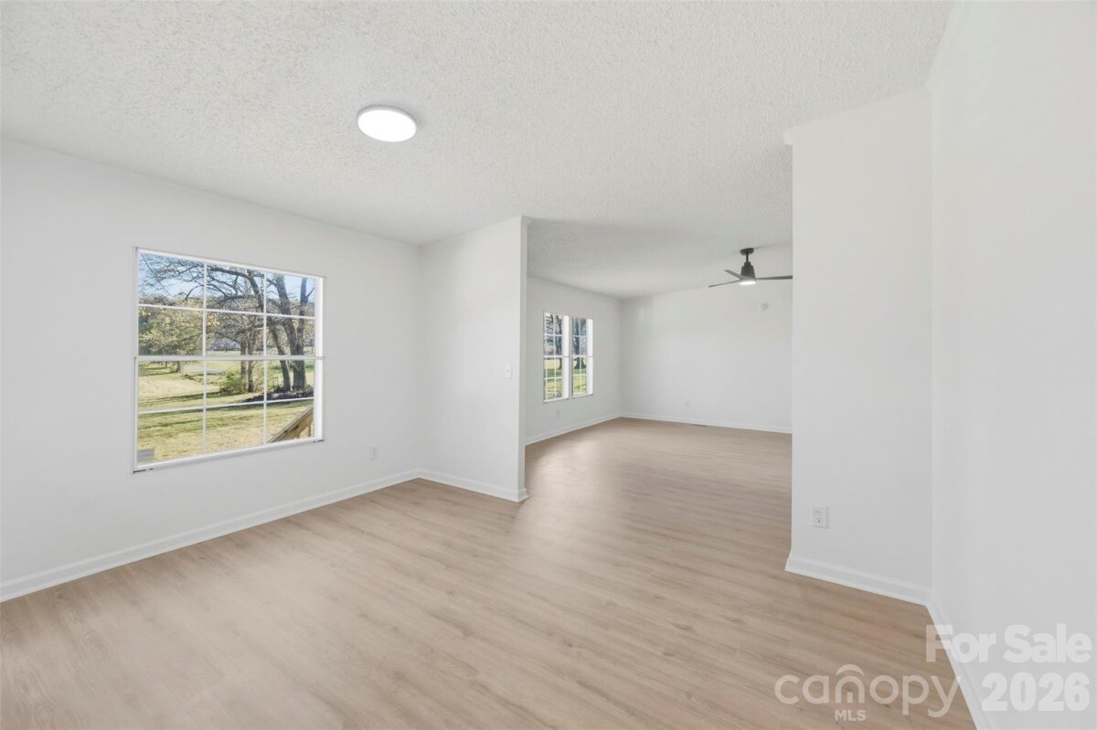 COUNTRY LIVING LIFESTYLE on 1.48 AC. Outstanding opportunity for this immaculate 3 BR, 2 BA, 1533 SQ ft with Neutral Paint, matching light fixtures, and LVP flooring throughout and porcelain tile in bathrooms. As you walk in to your Open Floor Plan Home your greeted with a spacious living room, dining area, family room with built in fireplace and shelving for great entertainment, Kitchen has white cabinets, SS appliances and granite, a laundry room, large master with sep shower/garden tub. Roof 2025, HVAC 2026. Enjoy the peaceful setting in your backyard equipped with a storage shed, outbuilding and storage shed You better grab this home today.
