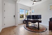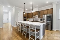 Welcome to this beautifully crafted brick home, ideally situated on a rare, oversized lot in sought-after Eden Hall—just minutes from Downtown Matthews. Designed for both everyday living and entertaining, the open floor plan features 10’ ceilings, abundant natural light, and hardwood floors throughout the main living areas. A flexible front room provides the perfect space for a home office, music room, play room, or sitting area. The gourmet kitchen is the centerpiece of the home, offering quartz countertops, stainless steel appliances, gas cooktop, glass-front cabinetry, and a large island that flows seamlessly into the dining area and great room. The great room with gas fireplace opens to a balcony that overlooks the backyard trees. The oversized main-level primary suite delivers convenience and comfort, featuring a spa-inspired bath with a large tiled walk-in shower, transom window, and dual vanities. Large walk-in closet has direct access to the laundry room, complete with folding station. Upstairs, a spacious loft creates an ideal secondary living area, complemented by a private guest suite with ensuite bath plus an additional bedroom with access to a full bath with tiled walk-in shower. A large walk-in attic provides excellent storage or future expansion potential. Enjoy outdoor living from the covered rear balcony overlooking a fenced yard and wooded backdrop—offering both privacy and usable space rarely found in the neighborhood. HOA-maintained lawn care, landscaping, and irrigation allow for low-maintenance living in a prime location close to shopping, dining, and community amenities. Don't miss this opportunity - schedule your showing Today!