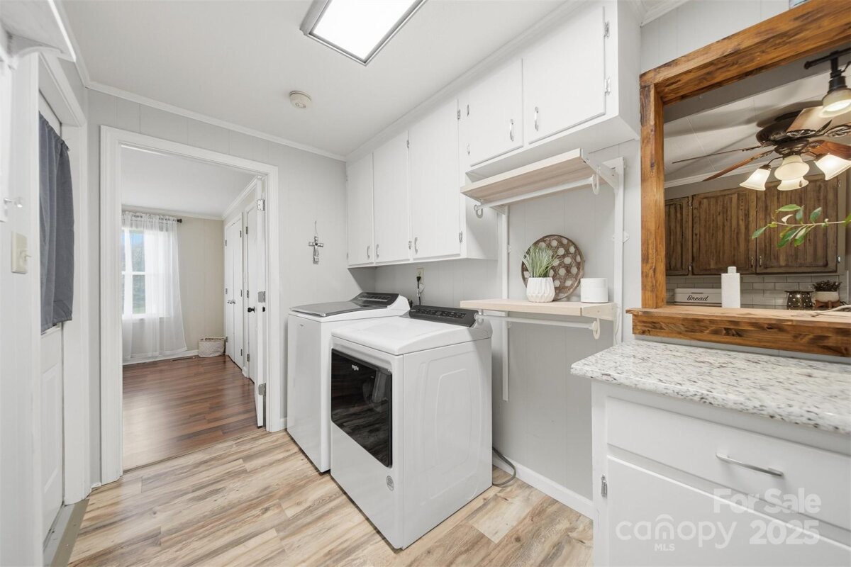 Mult offers received - seller will make a decision by Thursday Nov 13th....call an agent with questions! Welcome to this charming, updated farmhouse on just over 7 beautiful acres at 1127 Alspaugh Dam Road in Taylorsville! This one-level, 3-bedroom, 2-bath home offers the perfect blend of modern updates and country charm. Enjoy peaceful views from the covered front porch with a convenient parking pad for guests or use the second driveway leading to the side-load attached garage. Inside, you’ll find a bright, inviting layout with hardwood floors in the living room, a propane fireplace, and mostly updated windows (2021–2022). The kitchen and dining area feature LVP flooring, tile backsplash, and newer countertops (2018), with crown molding adding a touch of elegance. A spacious pass-through laundry area offers cabinets, a folding island, and opens to the updated covered side deck. The primary suite includes wall-to-wall closets, fresh paint, and a private bath with shower. Two additional bedrooms feature laminate flooring and crown molding, with easy access to the updated hall bath. Additional features include a walk-up attic for storage, under-stair storage, vinyl siding with stone accents, metal roof, and a new heat pump and ductwork (installed spring 2024). Enjoy open fields, serene views, and the peaceful feel of country living — all within easy reach of town conveniences. Don’t miss this move-in ready farmhouse with acreage and timeless appeal!