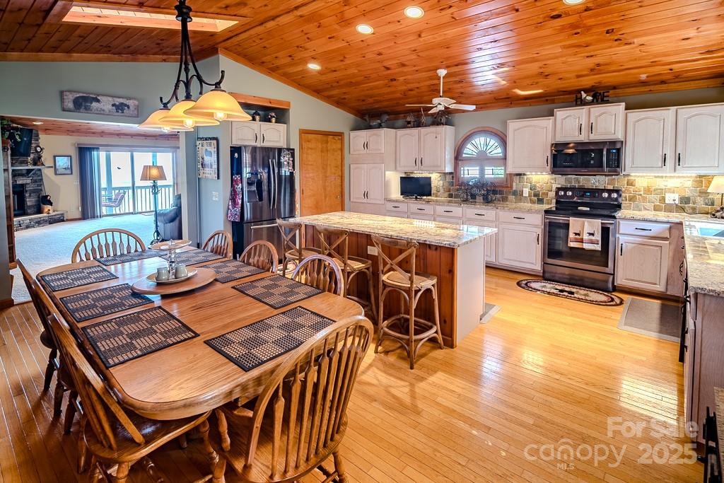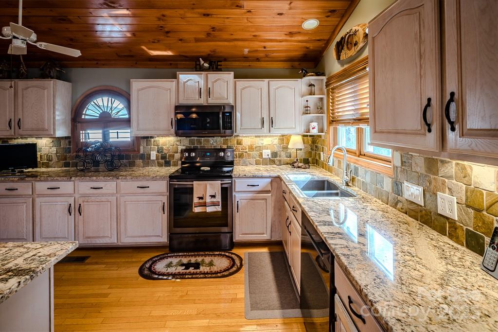 This home checks all the boxes! And with a substantial price improvement! Located in the sought-after North Pinnacle area, this spacious mountain retreat features 4 bedrooms and 3.5 bathrooms, along with sweeping LONG RANGE VIEWS and a thoughtfully designed layout. Highlights include an extensive great room, a well-appointed kitchen, a road-to-road lot, an oversized garage, covered and open decks, tongue-and-groove ceilings, and even an elevator. On the main level, you’ll find a bright, open great room with t-n-g ceilings, a half bath, and a generously sized kitchen featuring ample cabinetry, skylights, and expansive counter space. The primary suite on this level boasts stunning views and full bath. Downstairs offers three additional bedrooms, two full baths, a laundry room with a utility sink, den area, and direct access to the spacious garage—complete with an extra refrigerator and freezer. Ideally located just minutes from the Ski Resort, Beech Mountain Club campuses, and downtown Beech Mountain, this property also includes an extra lot at 107 Raven Road. Whether you’re seeking a mountain getaway or an investment property, this furnished home is move-in ready. A current Beech Mountain Club membership provides access to exceptional amenities, including an 18-hole golf course, tennis courts, numerous pickleball courts, a 24-hour fitness center, day camps, an outdoor pool, and a slopeside clubhouse.