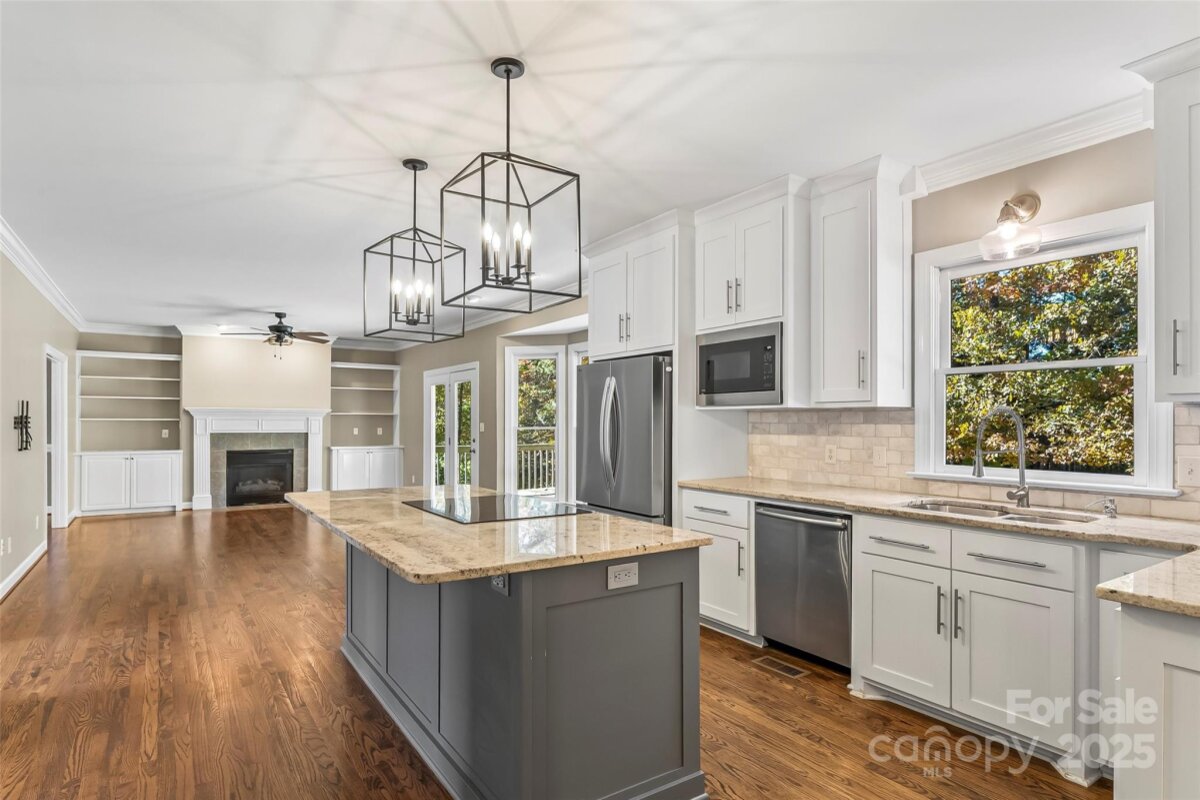 Picture-Perfect Living in The Woodwinds! Tucked away on a peaceful cul-de-sac, this beautifully updated home offers the perfect balance of privacy, style, and comfort. The main level features elegant formal dining and living rooms, a cozy family room, a gourmet kitchen, a convenient half bath, laundry area, and access to a spacious oversized deck—ideal for entertaining or relaxing outdoors. The kitchen impresses with custom cabinetry, granite countertops, and stainless steel appliances, while modern paint tones and updated wood flooring create a fresh, cohesive feel throughout. Upstairs, a central landing opens to four generous bedrooms, including a stunning primary suite with a jetted tub, dual vanities, a walk-in shower, and custom closet shelving. Each additional bedroom offers abundant natural light and plenty of storage space. Enjoy outdoor living at its finest on the expansive back deck—perfect for gatherings or quiet evenings at home. Recent updates include a new roof (2021), electrical panel (2023), new refrigerator and garage door motor (2025). This home truly has it all—modern updates, spacious living, and an unbeatable location. Don’t miss your chance to make this move-in ready home in The Woodwinds yours!