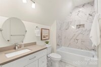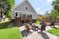 This stunning 5-bedroom, 4.5-bath home is sure to impress with soaring vaulted ceilings and a bright, open-concept layout with enough space to suit your family's needs. The spacious main level is filled with natural light and highlighted by a modern white kitchen with a huge island, soft-close cabinets, high-end WiFi appliances, and stylish champagne gold accents. A versatile floor plan offers a primary suite on either the main or upper level, plus laundry rooms on both floors. Three bedrooms feature their own bathrooms, while two share a Jack-and-Jill layout, giving everyone their own space. The upstairs landing/loft area includes a built-in nook, perfect for reading, lounging or learning from home. Enjoy hardwood floors throughout, upgraded tile, and a living room pre-wired for sound. Outside, spend family time or host friends on the backyard deck or around the paver patio with a brick fireplace. Whether you’re sipping coffee on the rocking chair porch or unwinding by the indoor fireplace, this home is designed for comfort and connection. No HOA.
