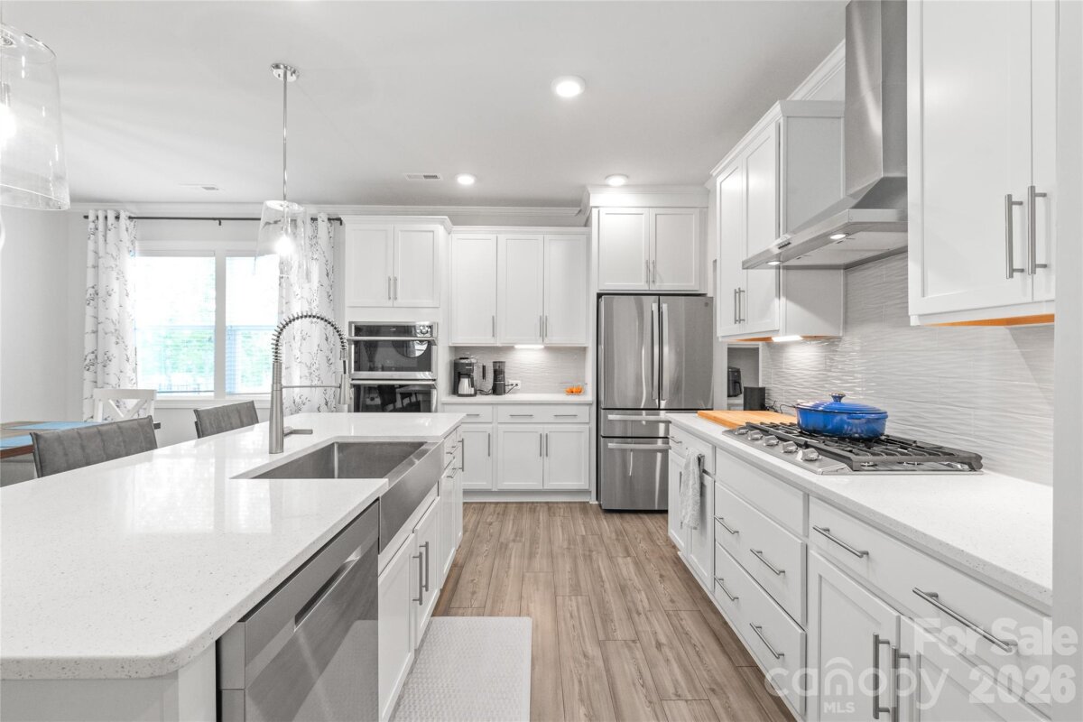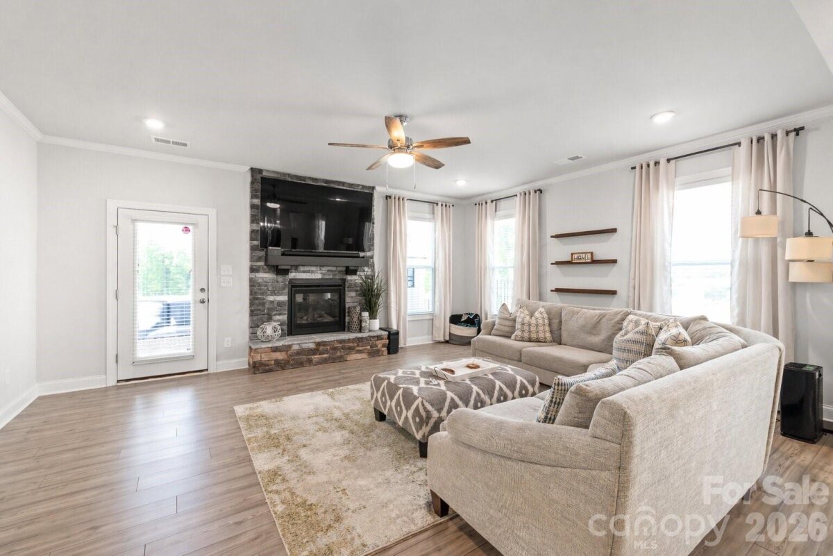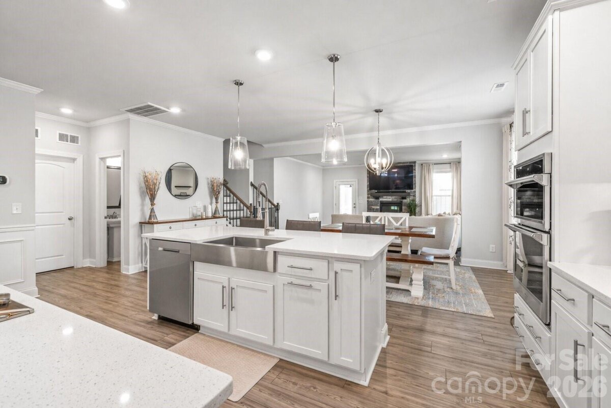 Location, location, location. Welcome to one of the best deals in the area, ideally located in Union County just minutes from Mint Hill, Interstate 485, shopping, dining, and Olde Sycamore Golf Club. Enjoy low Union County taxes while living just steps from the Mecklenburg County line. Situated on a stunning half-acre lot, this nearly new home offers incredible curb appeal, luxurious finishes, thoughtful design, and upgrades throughout. The seamless floorplan is perfect for entertaining and everyday living. A formal dining room with wainscoting connects to the kitchen through a butler’s pantry and walk-in pantry. The gourmet kitchen features quartz countertops, a gas cooktop, stainless steel appliances, custom backsplash, soft-close cabinetry, and an oversized island with bar seating. The spacious living room is anchored by a stone gas fireplace. The main-level primary suite offers tray ceilings, a walk-in closet, dual vanities, separate shower, and a garden tub. Upstairs, a large loft provides endless flexibility, and the massive secondary bedrooms offer room for everyone. Enjoy the screened porch, extended patio, and fenced backyard overlooking the woodline, with additional property extending beyond the fence line for even more possibilities.