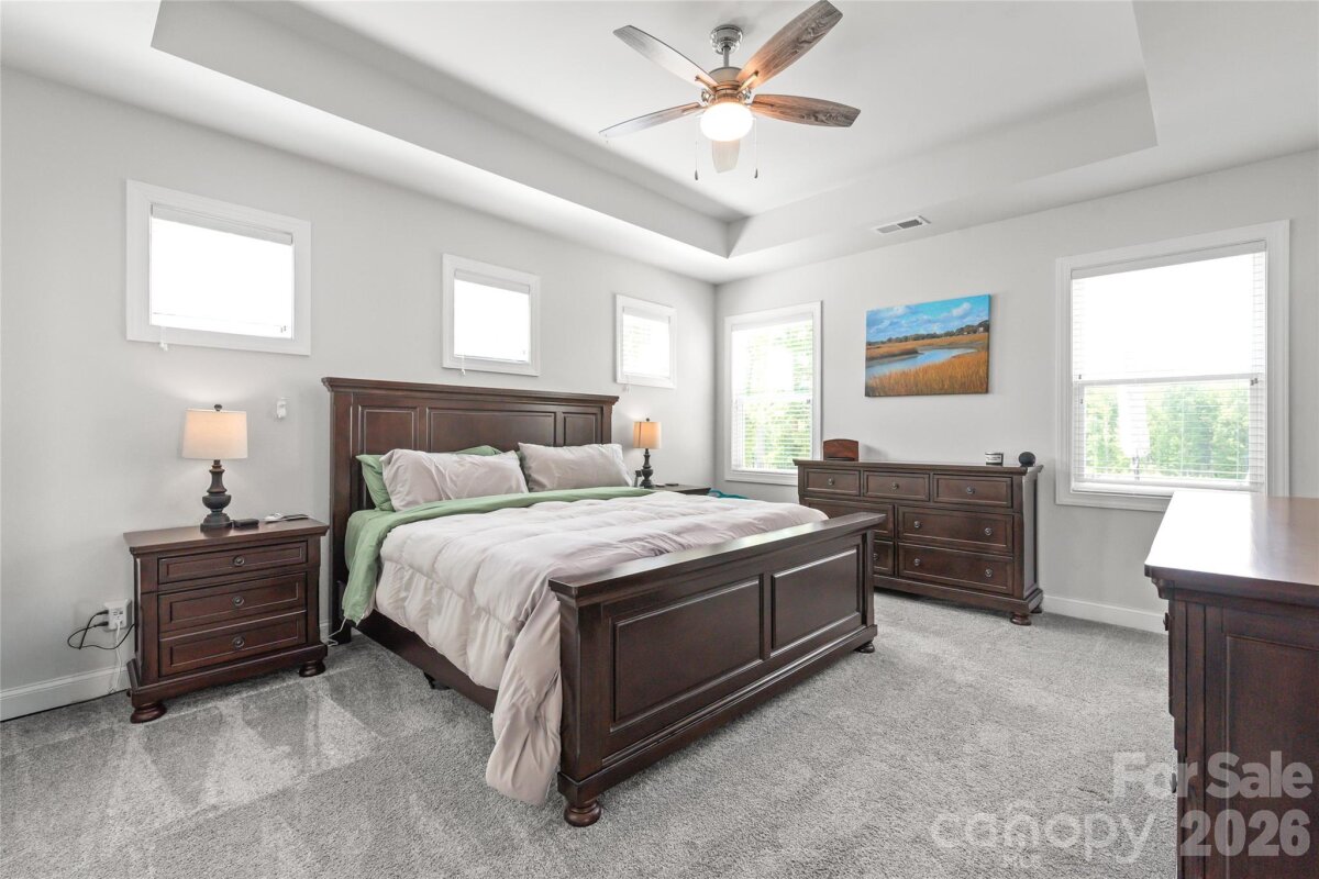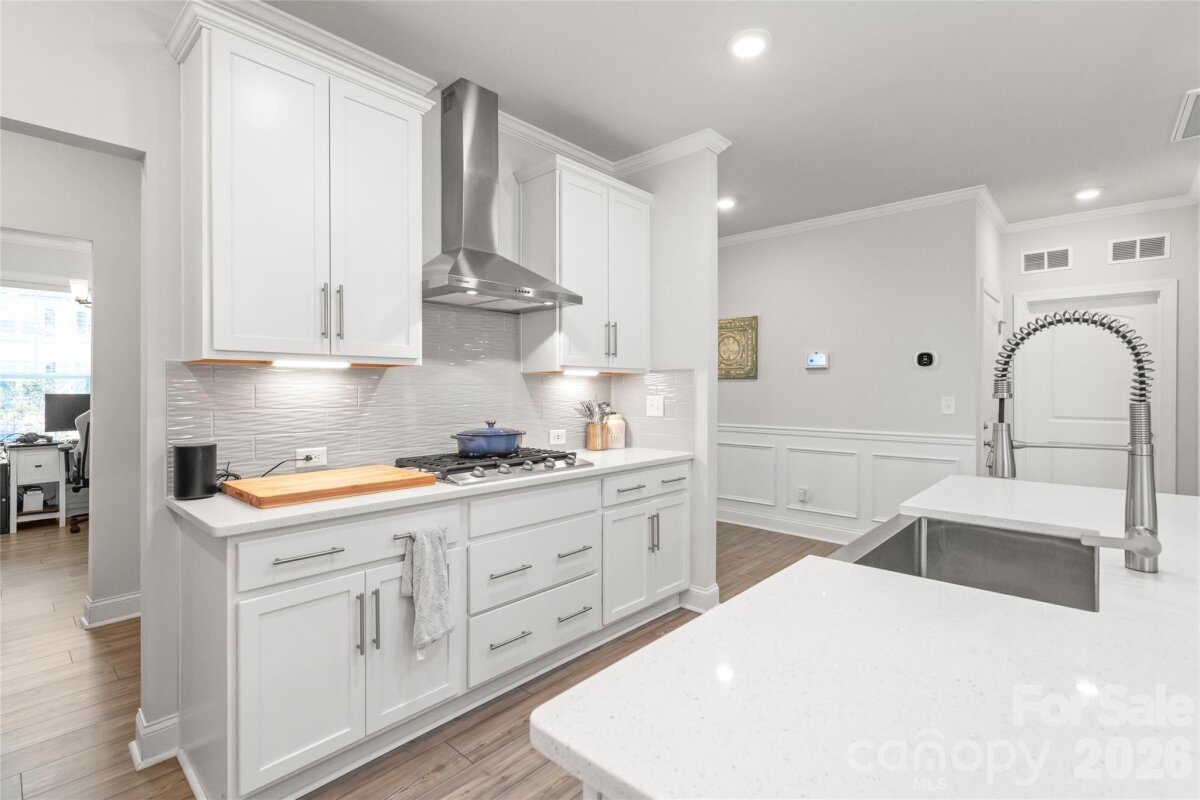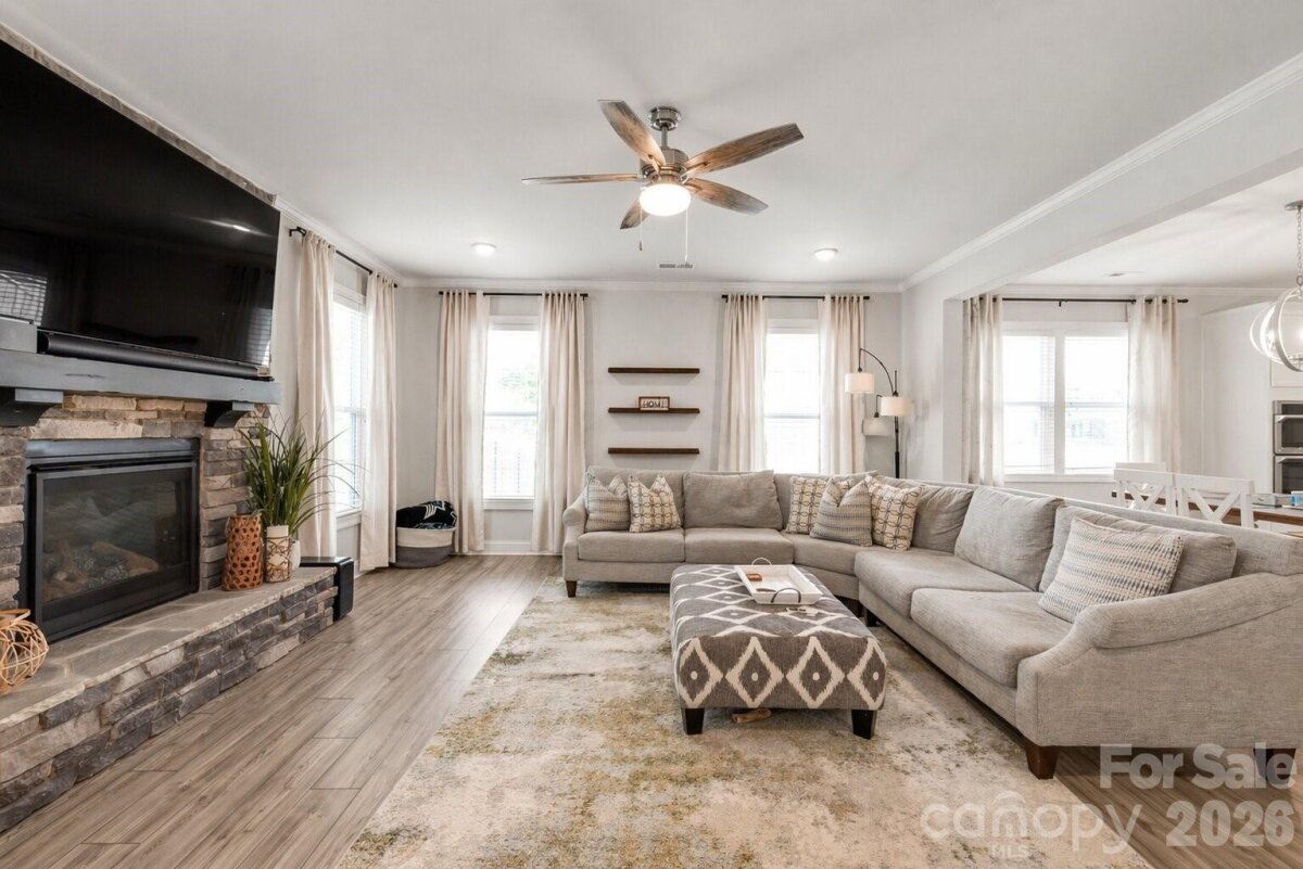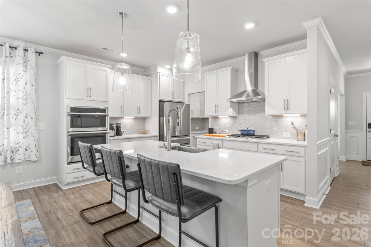 Location, location, location. Welcome to one of the best deals in the area, ideally located in Union County just minutes from Mint Hill, Interstate 485, shopping, dining, and Olde Sycamore Golf Club. Enjoy low Union County taxes while living just steps from the Mecklenburg County line. Situated on a stunning half-acre lot, this nearly new home offers incredible curb appeal, luxurious finishes, thoughtful design, and upgrades throughout. The seamless floorplan is perfect for entertaining and everyday living. A formal dining room with wainscoting connects to the kitchen through a butler’s pantry and walk-in pantry. The gourmet kitchen features quartz countertops, a gas cooktop, stainless steel appliances, custom backsplash, soft-close cabinetry, and an oversized island with bar seating. The spacious living room is anchored by a stone gas fireplace. The main-level primary suite offers tray ceilings, a walk-in closet, dual vanities, separate shower, and a garden tub. Upstairs, a large loft provides endless flexibility, and the massive secondary bedrooms offer room for everyone. Enjoy the screened porch, extended patio, and fenced backyard overlooking the woodline, with additional property extending beyond the fence line for even more possibilities.