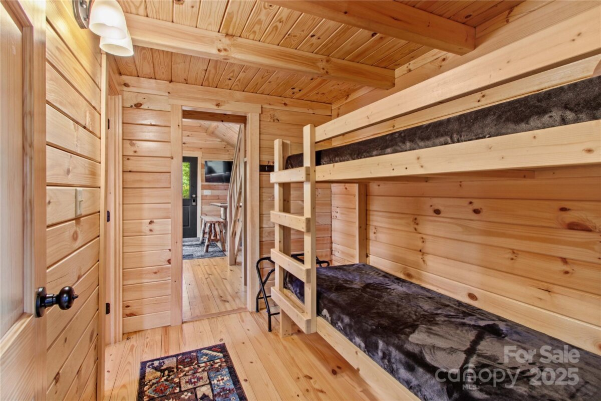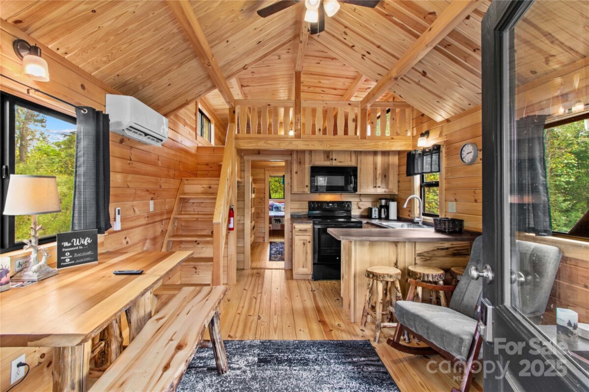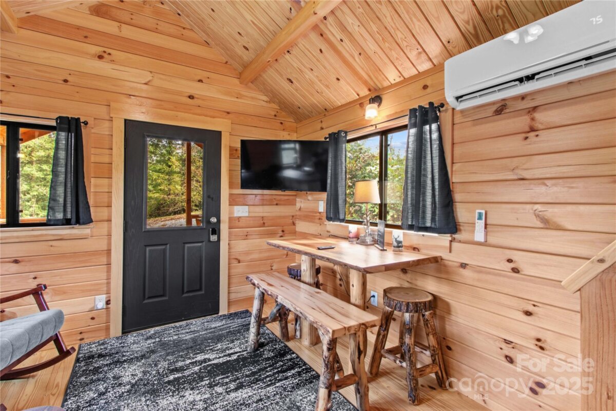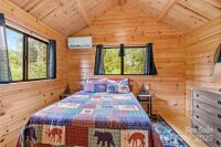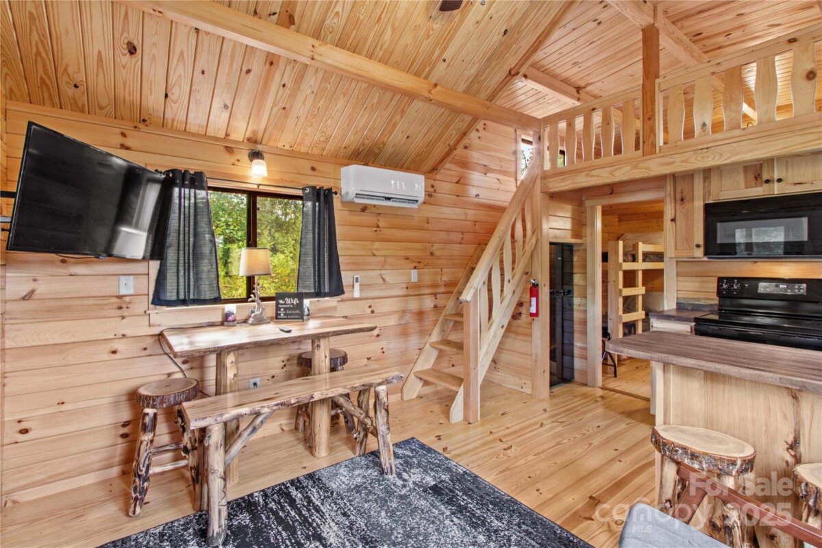 This cozy log cabin is nestled on over a one acre private lot and is perfect for weekend getaways! It is currently used as an AirBnb and is normally rented out 3 to 4 months of the year, making this a great investment property. Home is being sold fully furnished with furniture and decor. Kitchen is complete with matching appliances and a breakfast bar. You will love the covered front porch with mountain views that is perfect for enjoying relaxing evenings. Private location that is also convenient to Stone Mountain State Park, wineries, golf courses, and I-77.