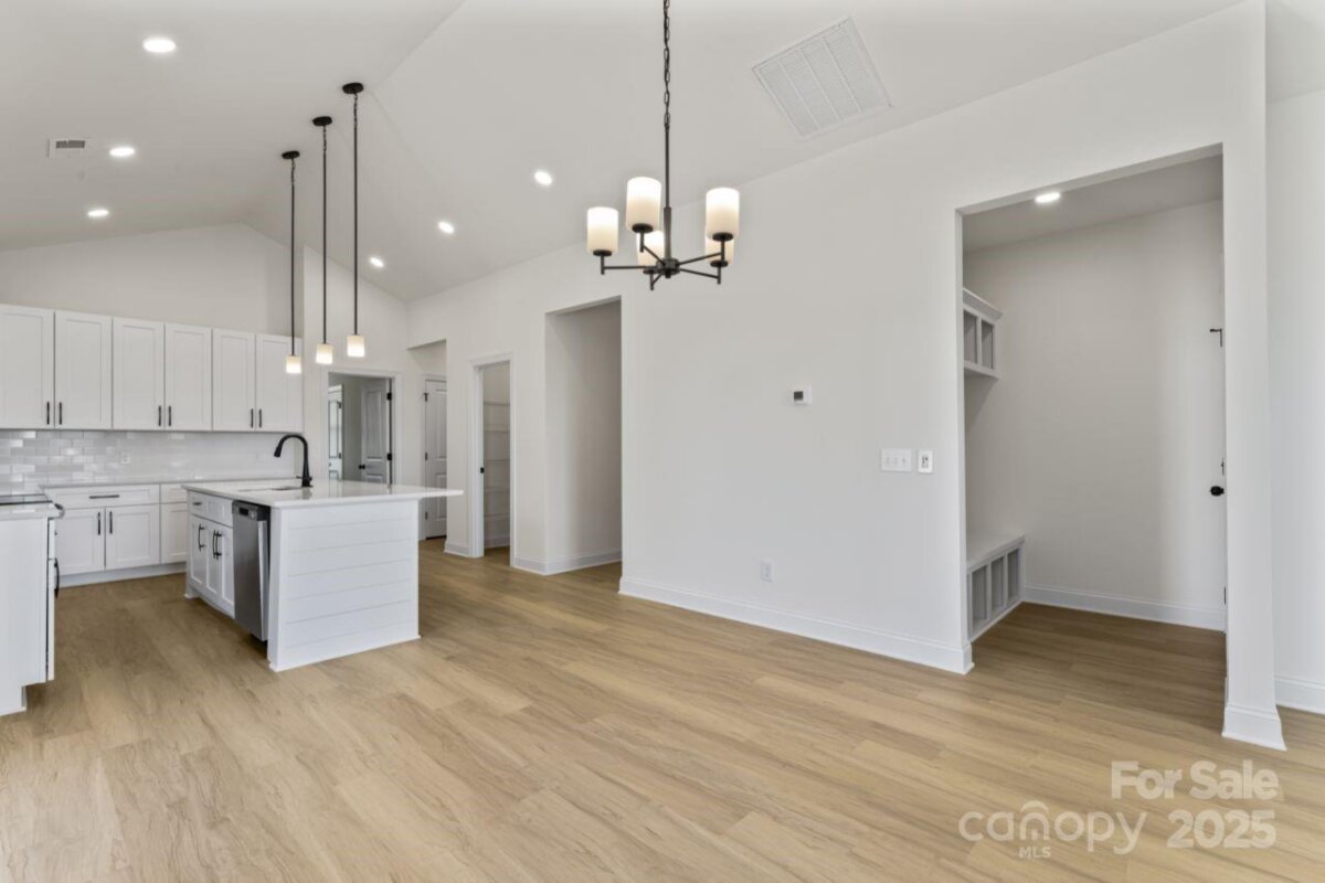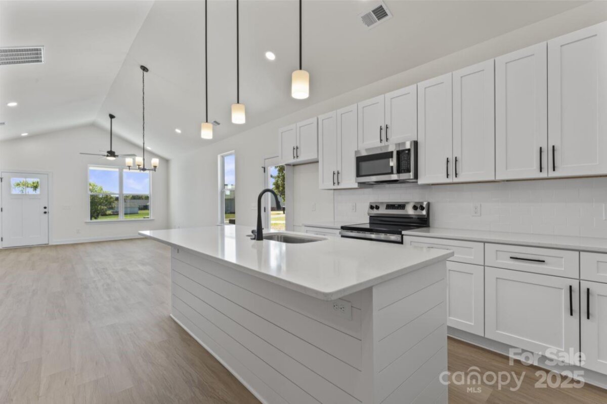 MAJOR price improvement by motivated seller on this gorgeous new construction ranch in a wonderful West Iredell location. NO HOA and COUNTY TAXES ONLY !! Step inside and be welcomed by soaring ceilings in the living areas, luxurious vinyl plank and artistic black fixtures and accents throughout. The open floorplan is highlighted by the kitchen with its shaker style cabinets, quartz countertops, stainless steel appliances and bartop kitchen island with designer shiplap. Experience the ease of single level living that includes a convenient drop zone with built in cubbies. The primary bedroom suite is an oasis for relaxation - allow the worries of the day to wash away in the upgraded primary shower with floor to ceiling tile and a transom window to let in abundant natural light. All of this on a cul-de-sac half acre lot with a generous backyard located in the peaceful Celtic Ridge neighborhood and only 5 mins to I-40, grocery stores, restaurants and much more. Book your showing today before this one is gone !!