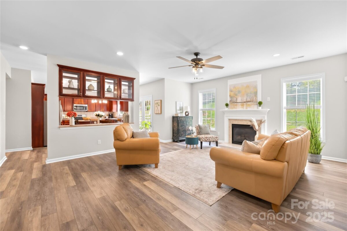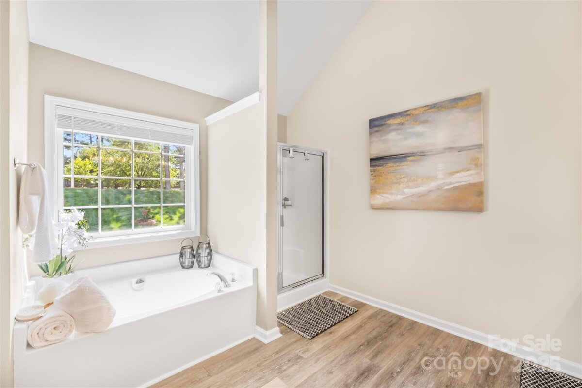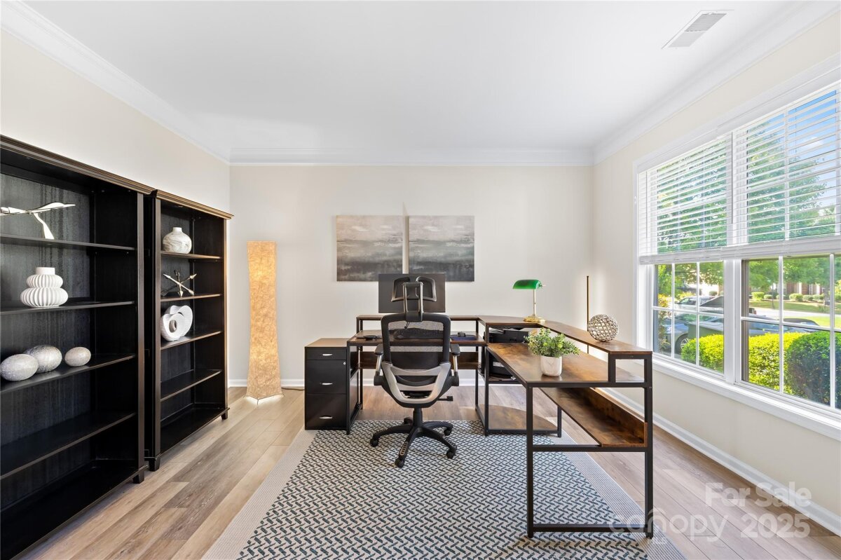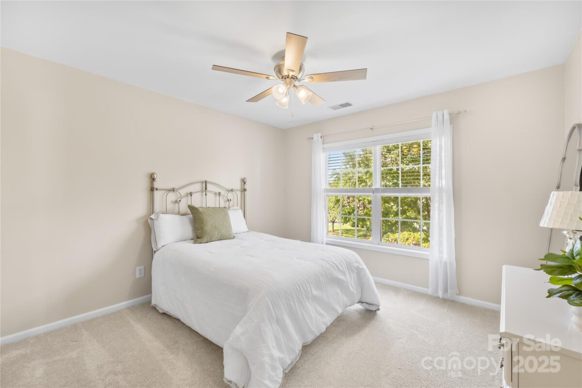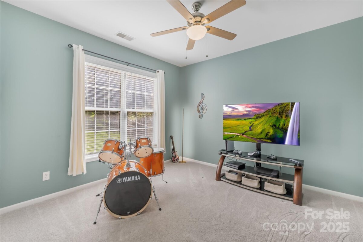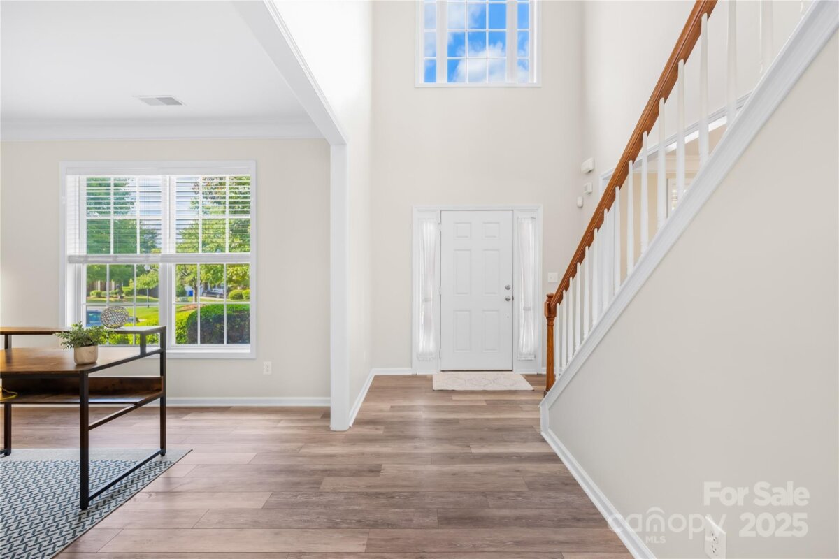 Located in the highly coveted Morrison Plantation, this stunning 5-bedroom, 2.5-bath home offers over 3,400 sq. ft. of stylish, move-in-ready living space. Step into the dramatic two-story foyer and experience the seamless flow of the open-concept design, enhanced by soaring 9-foot ceilings that create a bright, airy feel throughout the main level. The main level features gorgeous updated flooring, a formal dining room, a private office, and a guest bedroom—perfect for visitors or a second office space. The large kitchen shines with an island, abundant counter space, and ample storage with additional cabinets. Upstairs, discover four generously sized bedrooms and a flexible media room ideal for a home theater, playroom, or 6th bedroom. The luxurious primary suite is an oversized retreat with a soaking tub, a walk-in shower, and a spacious walk-in closet. The exterior showcases durable James Hardie® fiber cement siding paired with classic brick, all framed by mature trees and beautifully maintained landscaping. Step outside to your private backyard oasis, perfect for entertaining, relaxing, or playing. Enjoy weekend barbecues on the patio, set up a firepit for cozy evenings, or create your dream garden—this outdoor space is ready for it all. Recent upgrades include entire home updated flooring, a brand-new main-level HVAC, EV charger in the garage, modern light fixtures, and fresh interior paint—making this home completely turn-key. Outside your door, enjoy Morrison Plantation’s unmatched lifestyle with a pool, clubhouse, tennis and pickleball courts, and a full calendar of community events. All this is just minutes from shopping, dining, Lake Norman, and award-winning schools.